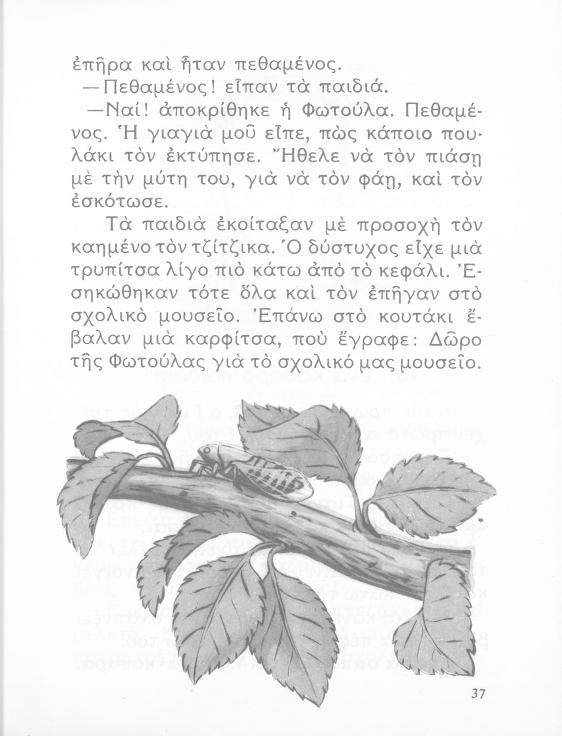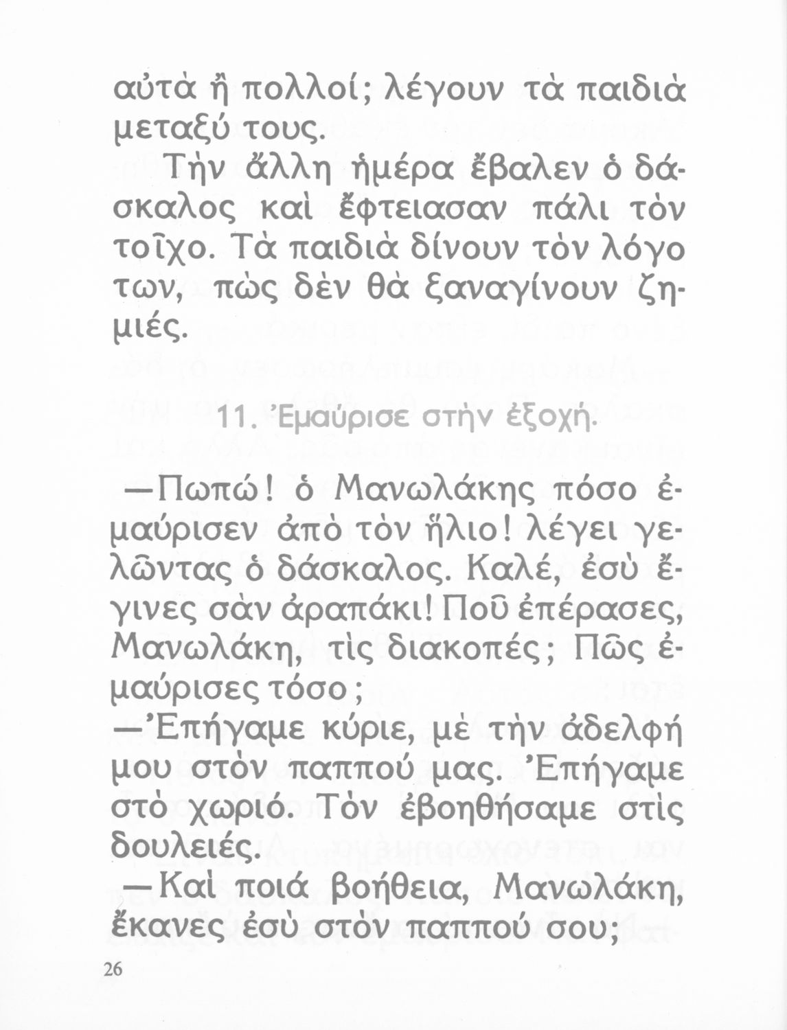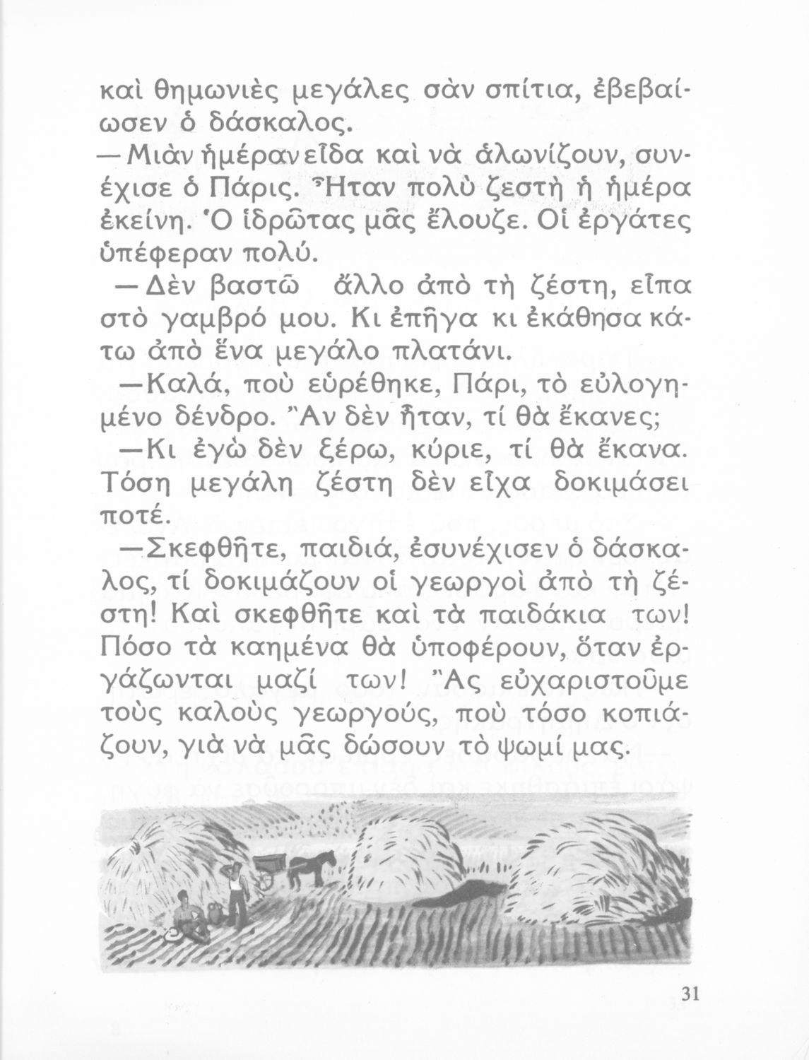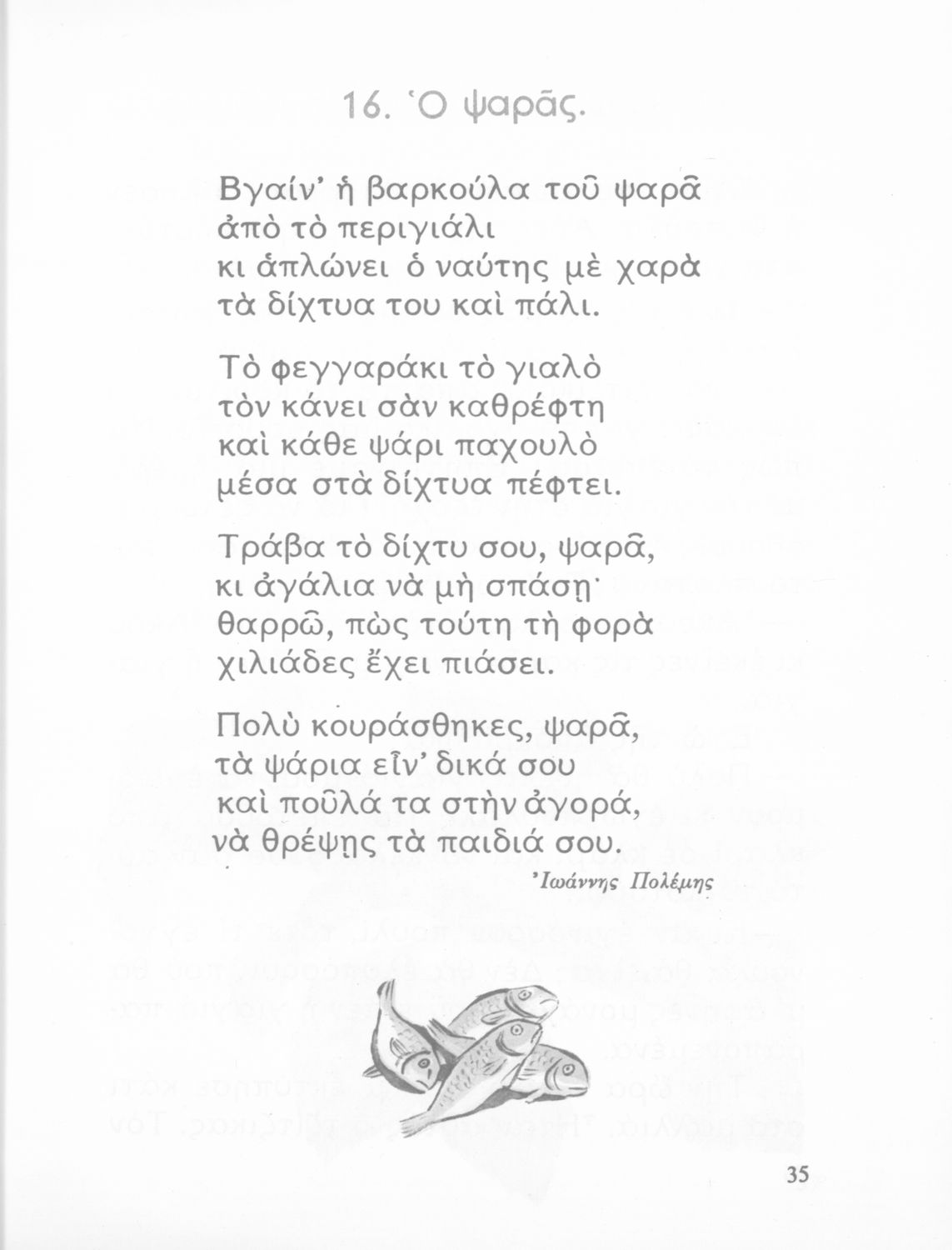 Αναγνωστικό Β' Δημοτικού που είναι χωρισμένο σύμφωνα με τις εποχές του χρόνου και περιλαμβάνει κείμενα ηθοποιητικού περιεχομένου εμπνευσμένα από τη θρησκευτική, εθνική, κοινωνική και οικογενειακή ζωή. Φέρει το σύμβολο της δικτατορίας.