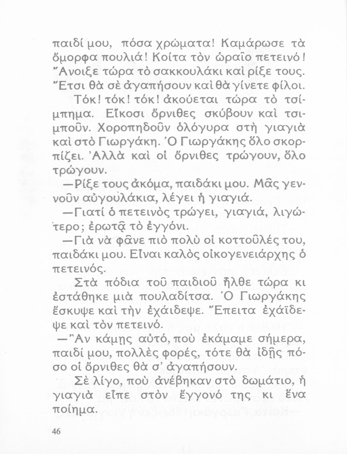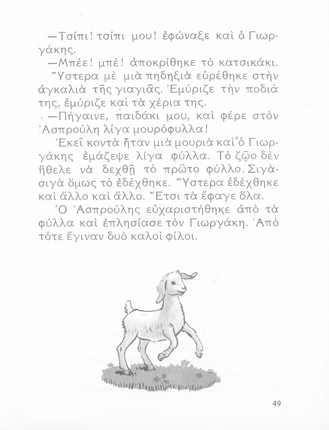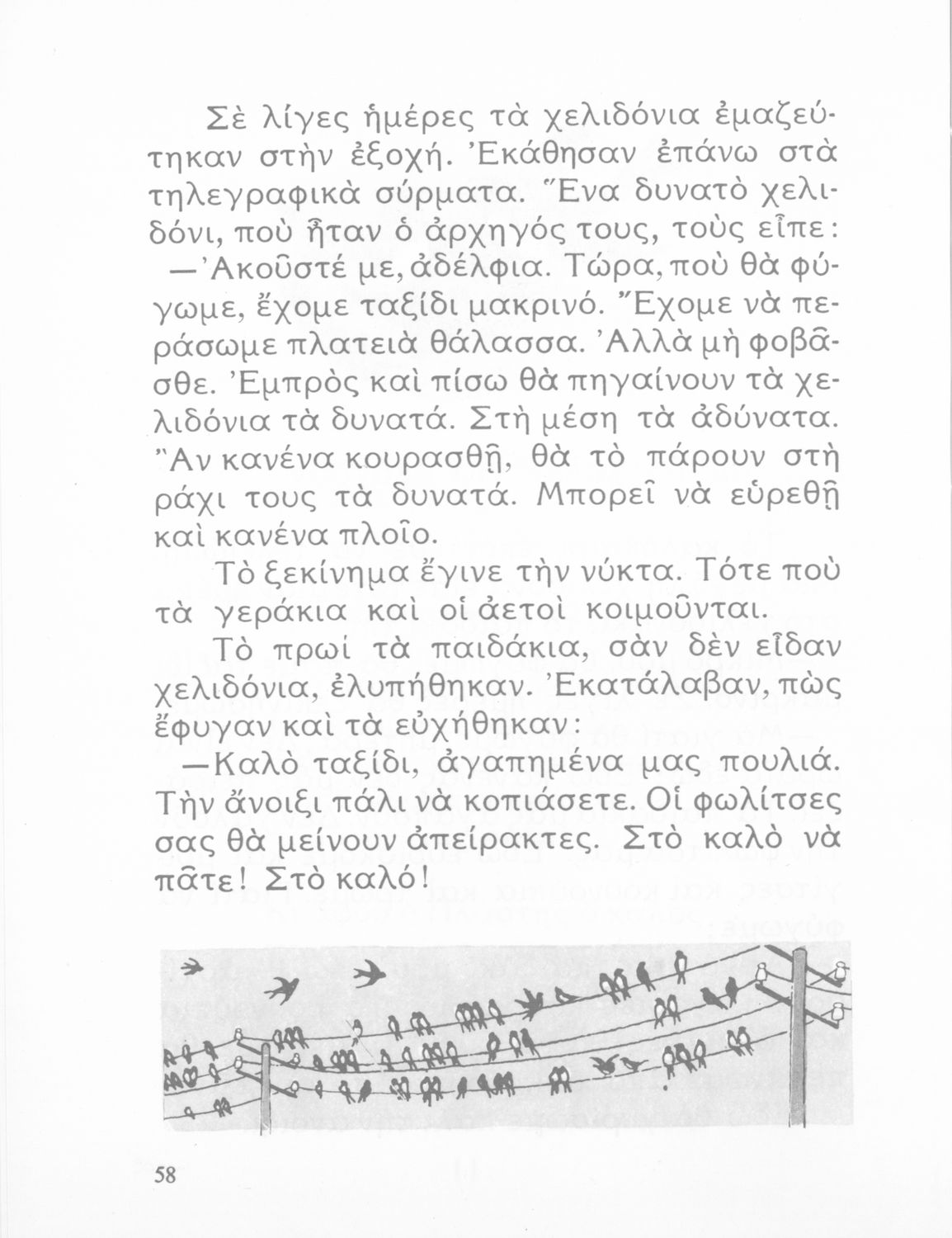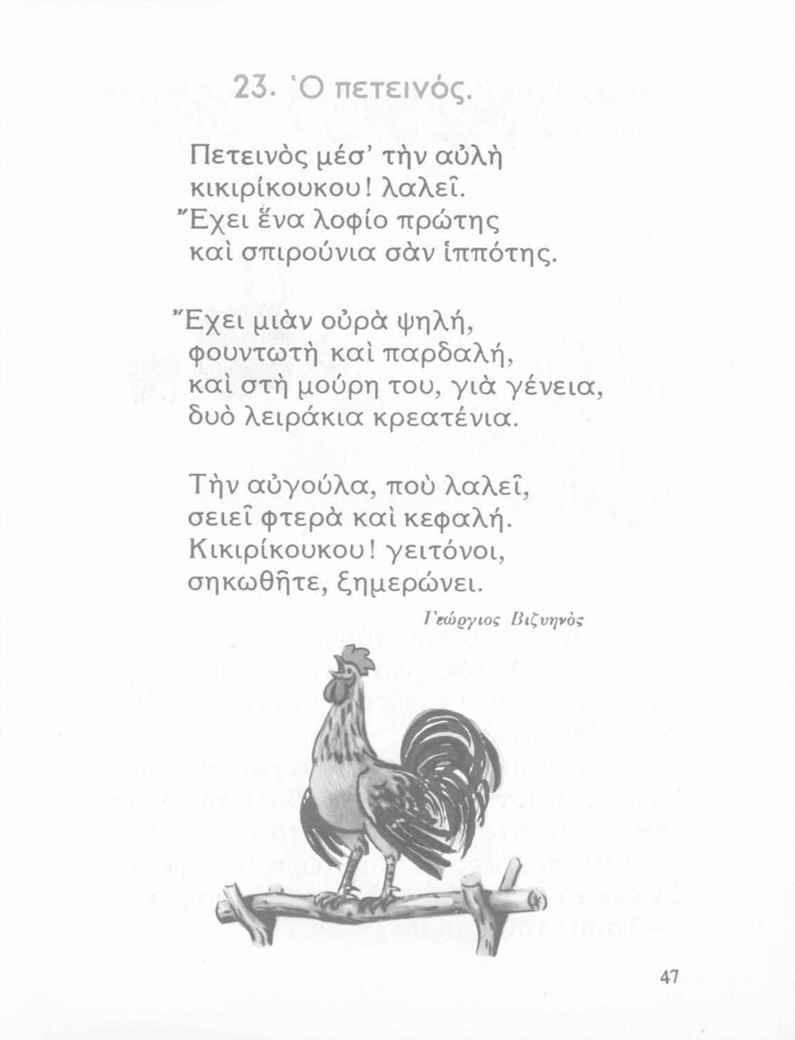 Αναγνωστικό Β' Δημοτικού που είναι χωρισμένο σύμφωνα με τις εποχές του χρόνου και περιλαμβάνει κείμενα ηθοποιητικού περιεχομένου εμπνευσμένα από τη θρησκευτική, εθνική, κοινωνική και οικογενειακή ζωή. Φέρει το σύμβολο της δικτατορίας.