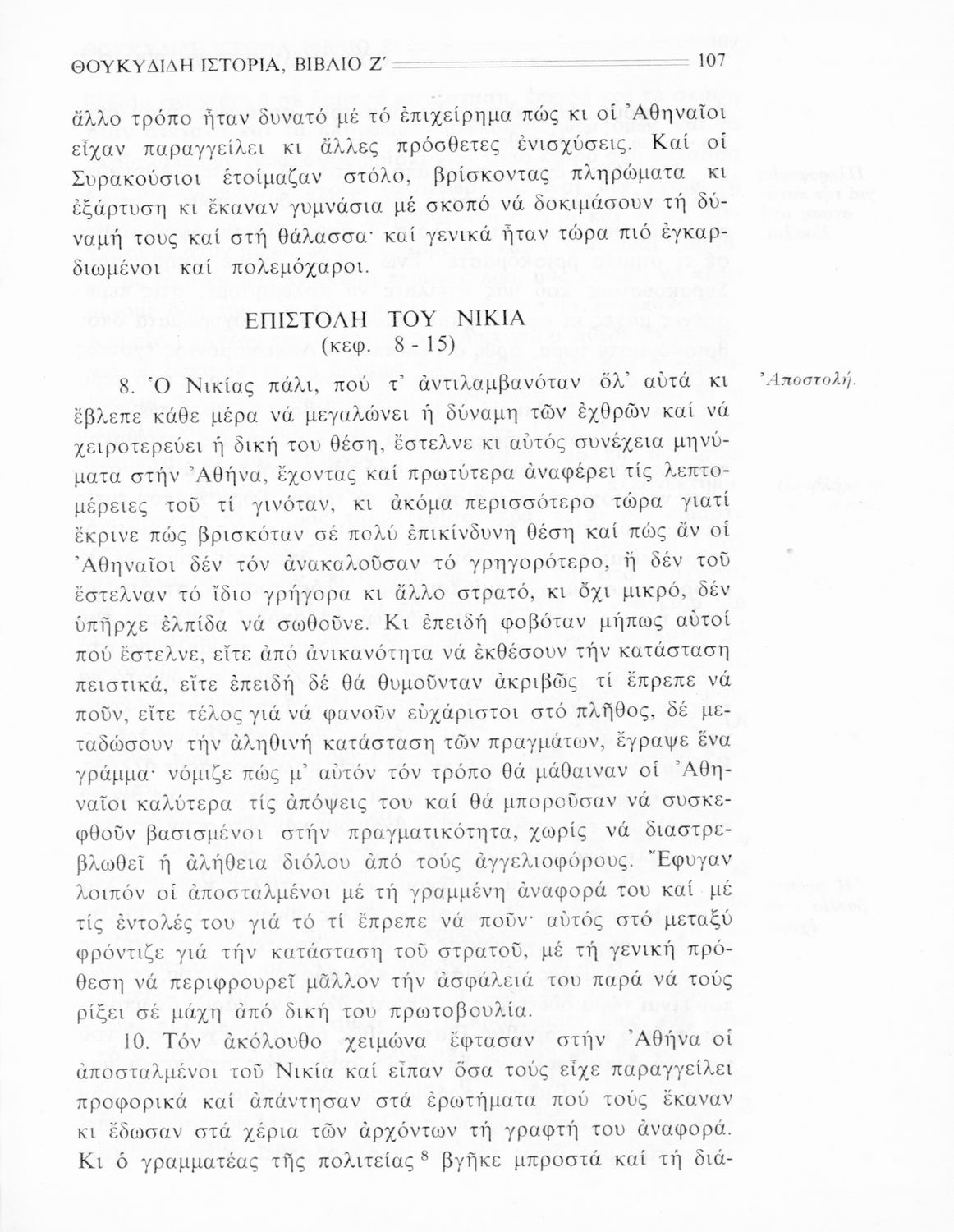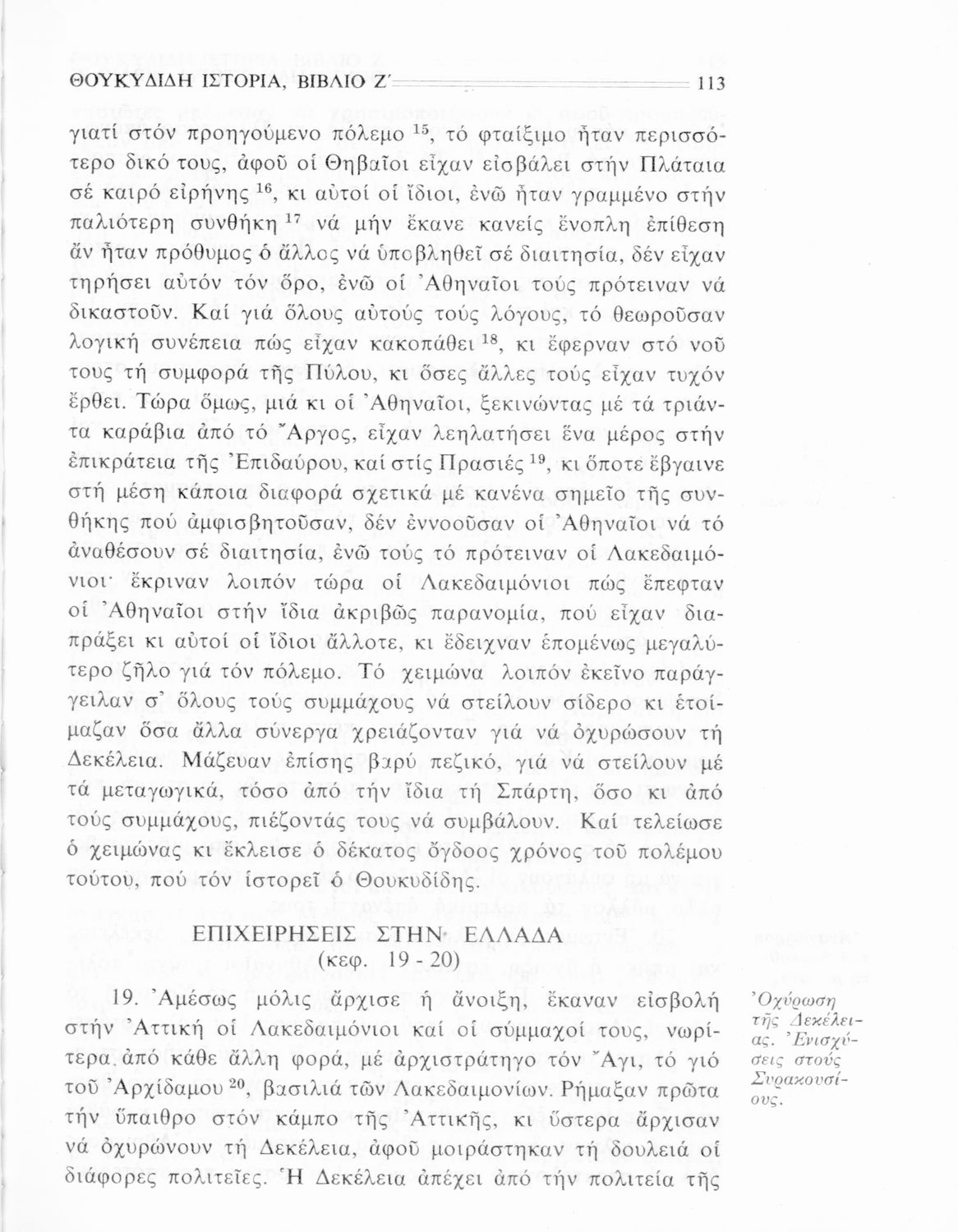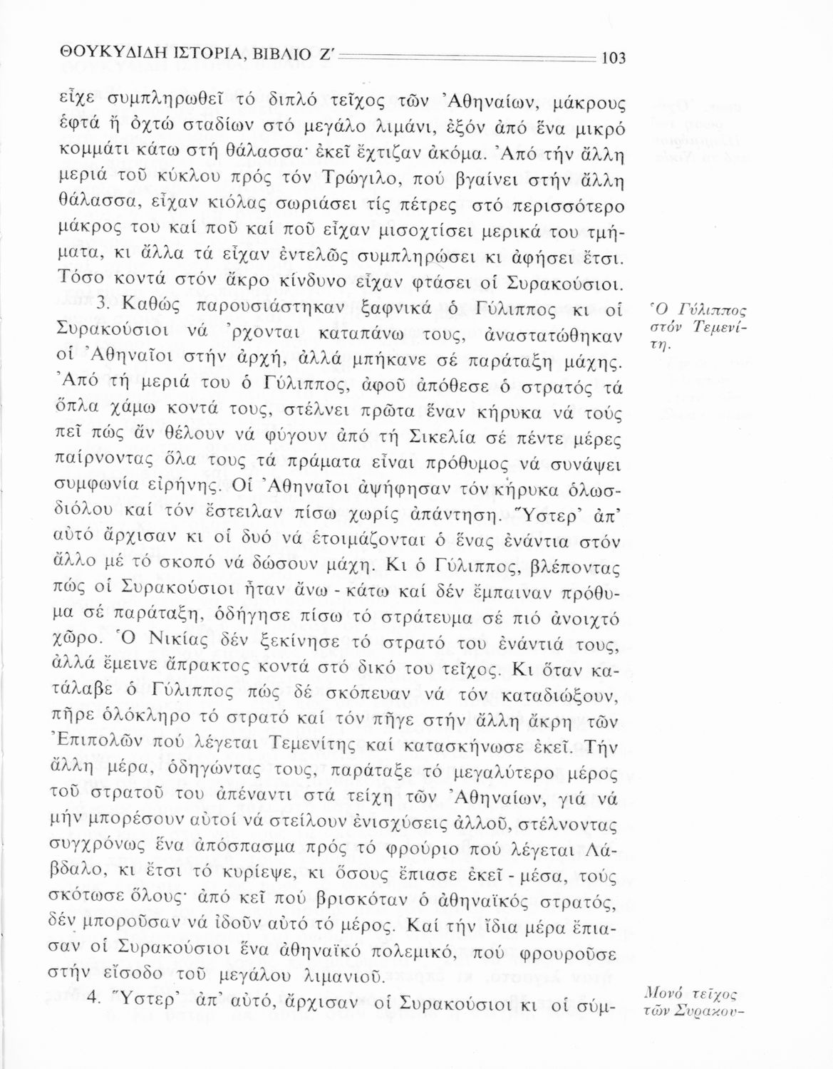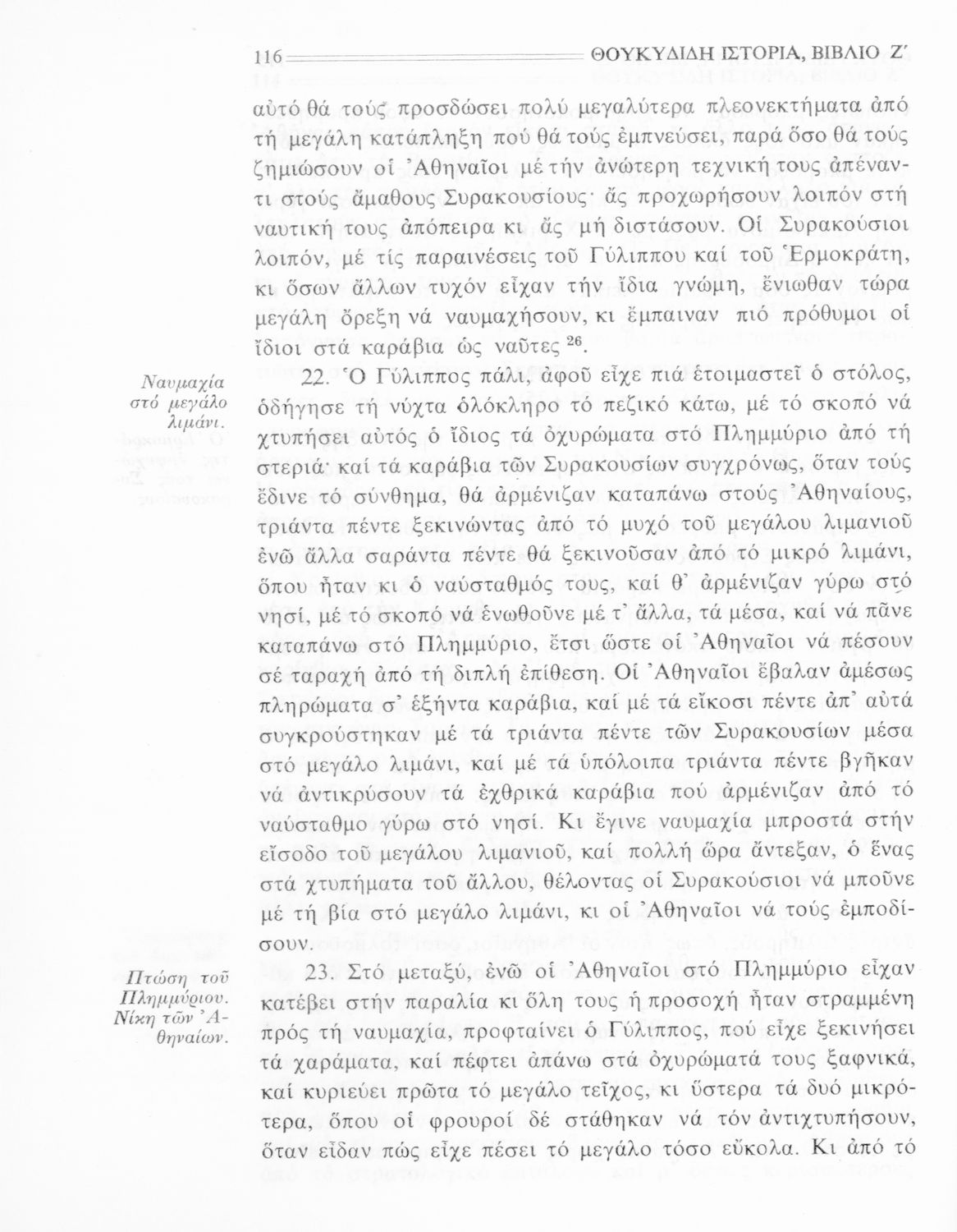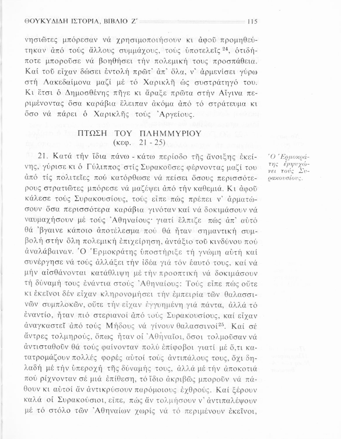 Σχολικό εγχειρίδιο Αρχαίων Ελληνικών Β΄ Γυμνασίου που περιλαμβάνει την μετάφραση των βιβλίων ΣΤ΄ και Ζ΄ της Ιστορίας του Θουκυδίδη, εισαγωγή στη ζωή και το έργο του, και ερμηνευτικά και πραγματολογικά σχόλια.
