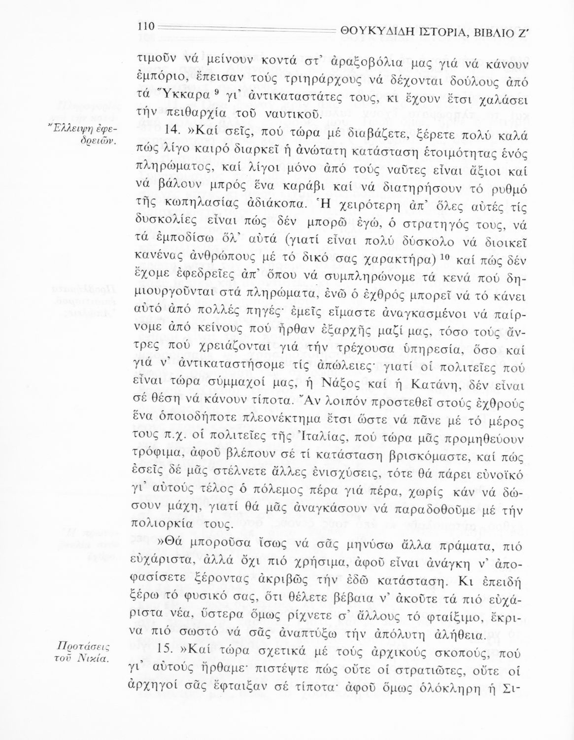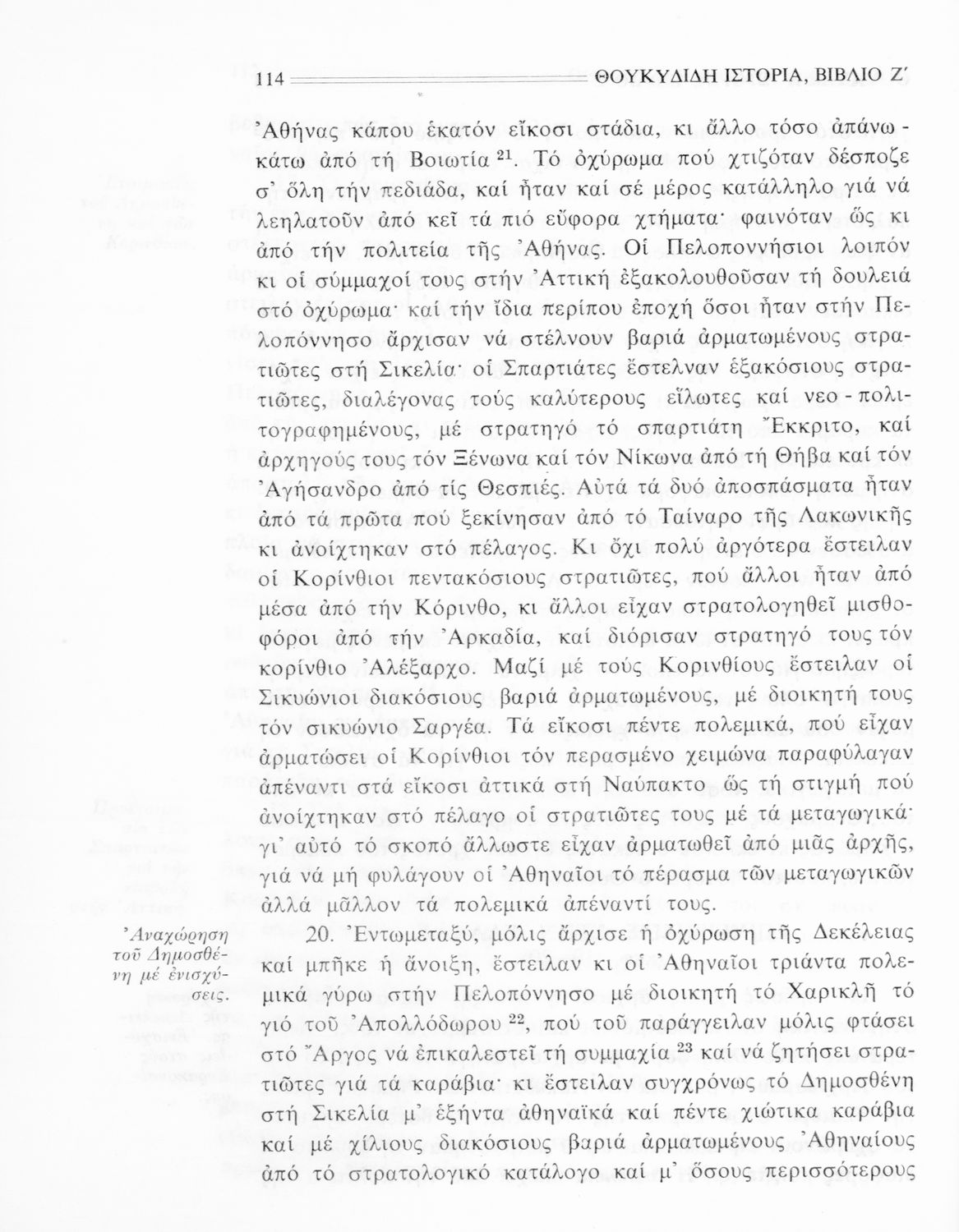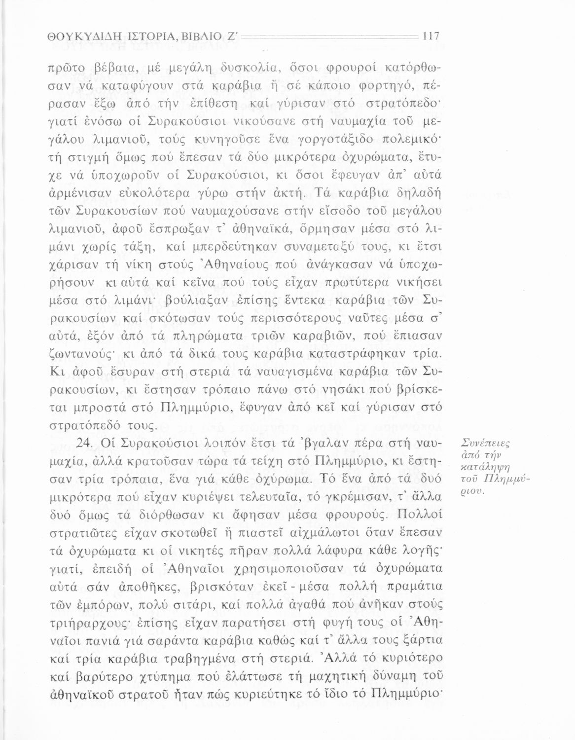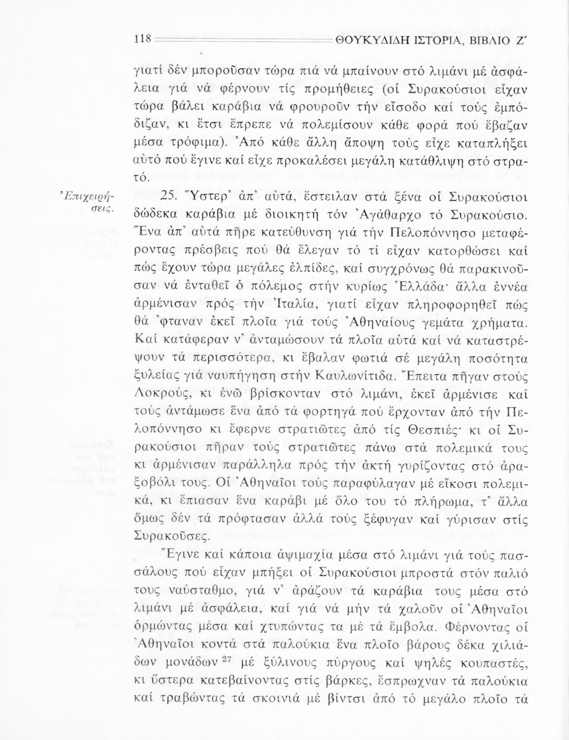 Σχολικό εγχειρίδιο Αρχαίων Ελληνικών Β΄ Γυμνασίου που περιλαμβάνει την μετάφραση των βιβλίων ΣΤ΄ και Ζ΄ της Ιστορίας του Θουκυδίδη, εισαγωγή στη ζωή και το έργο του, και ερμηνευτικά και πραγματολογικά σχόλια.