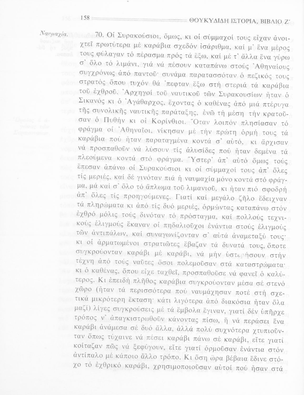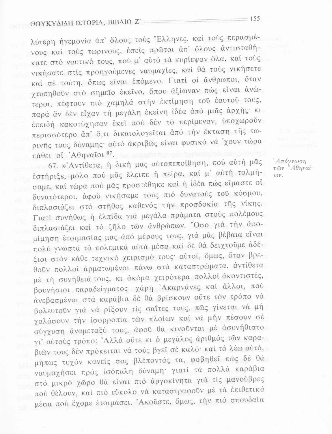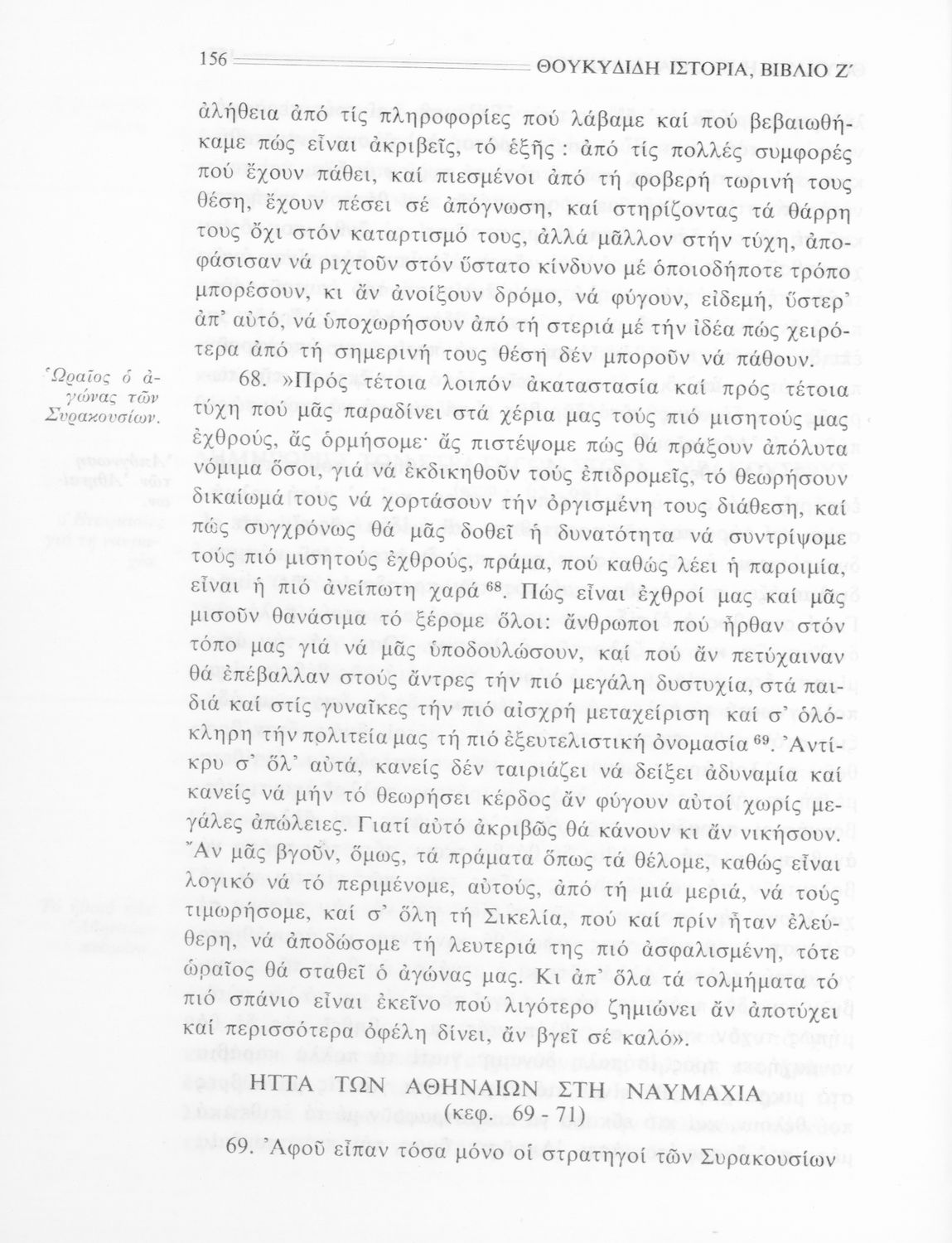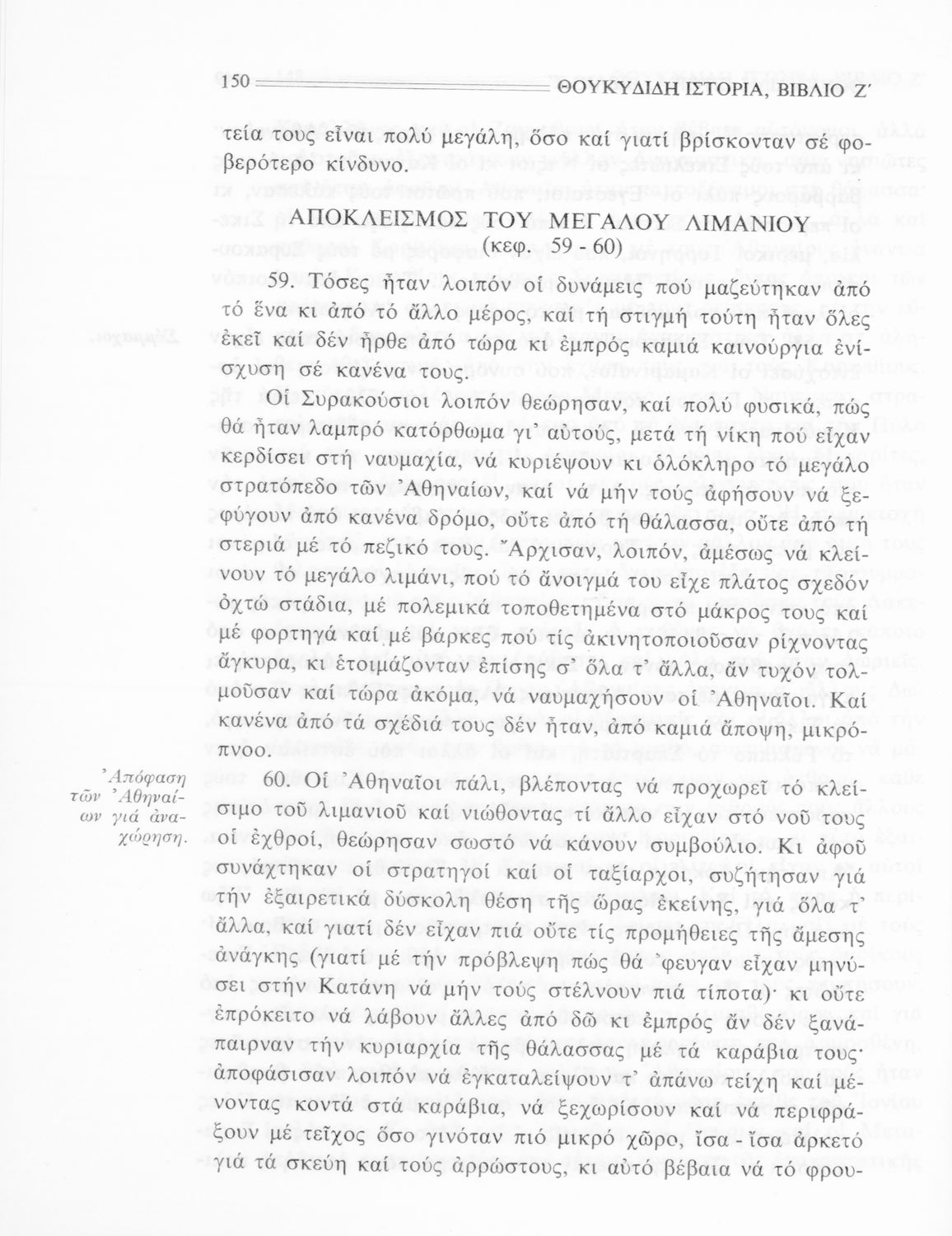 Σχολικό εγχειρίδιο Αρχαίων Ελληνικών Β΄ Γυμνασίου που περιλαμβάνει την μετάφραση των βιβλίων ΣΤ΄ και Ζ΄ της Ιστορίας του Θουκυδίδη, εισαγωγή στη ζωή και το έργο του, και ερμηνευτικά και πραγματολογικά σχόλια.