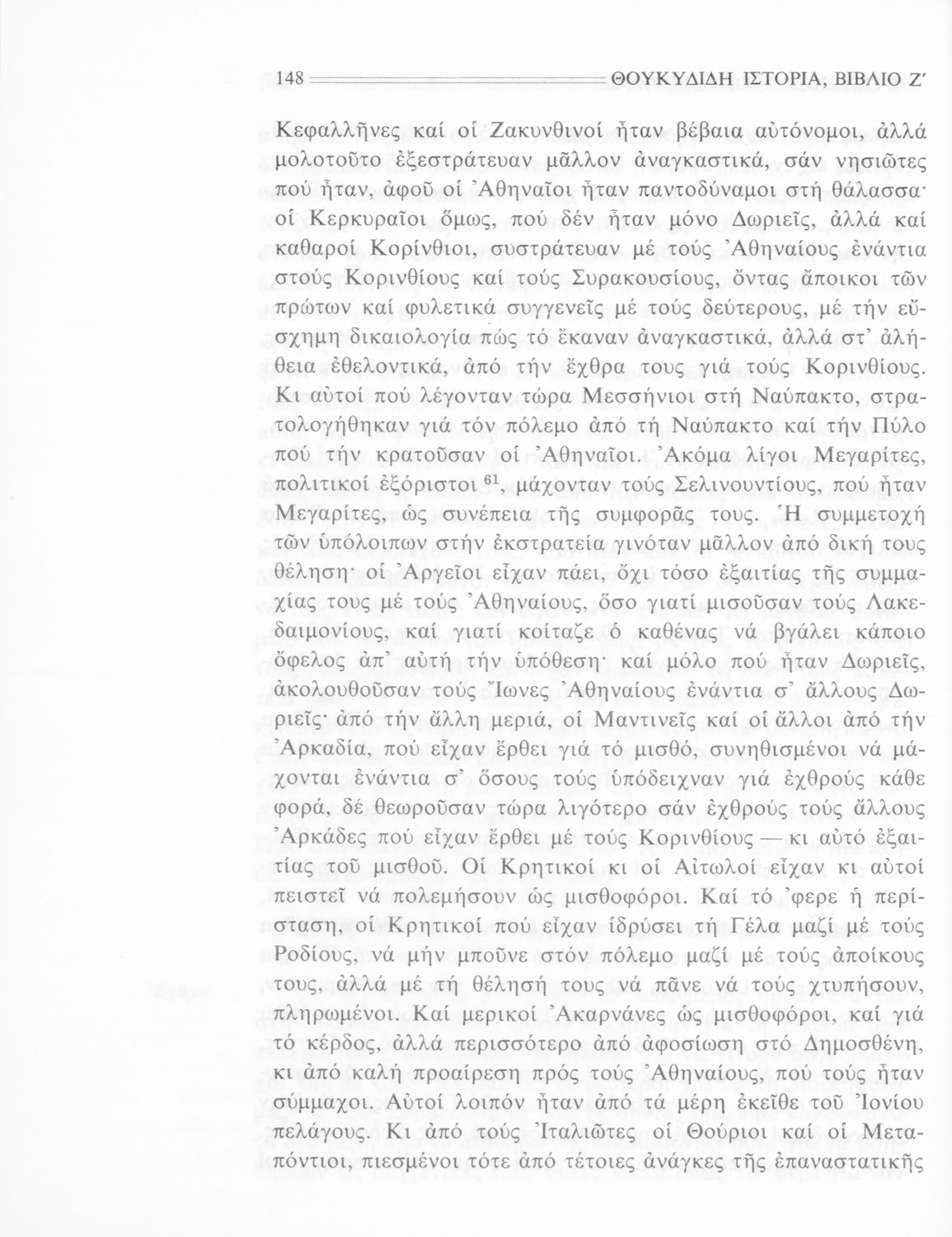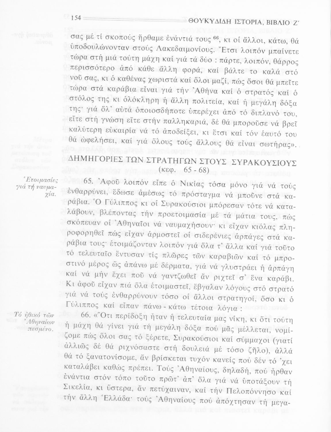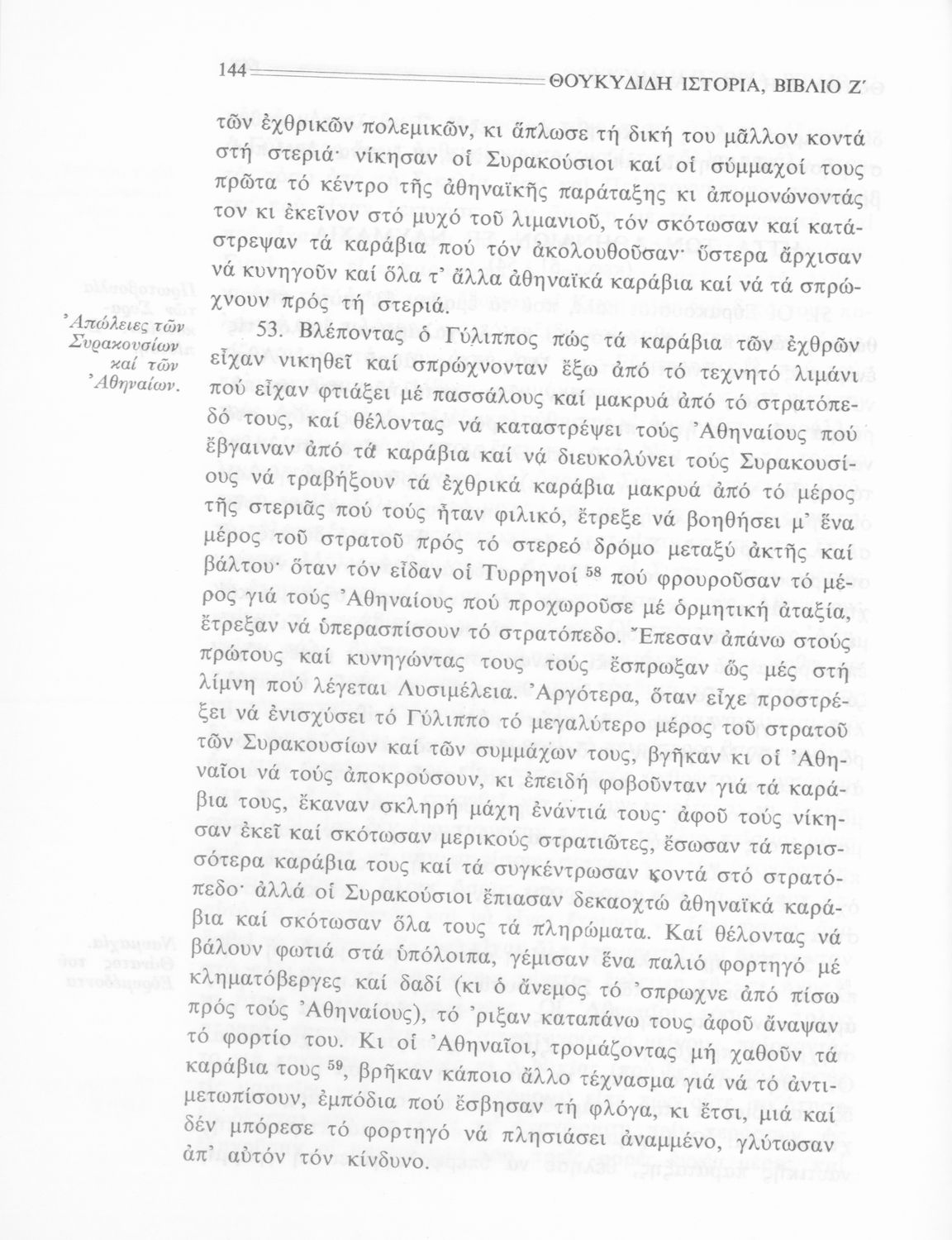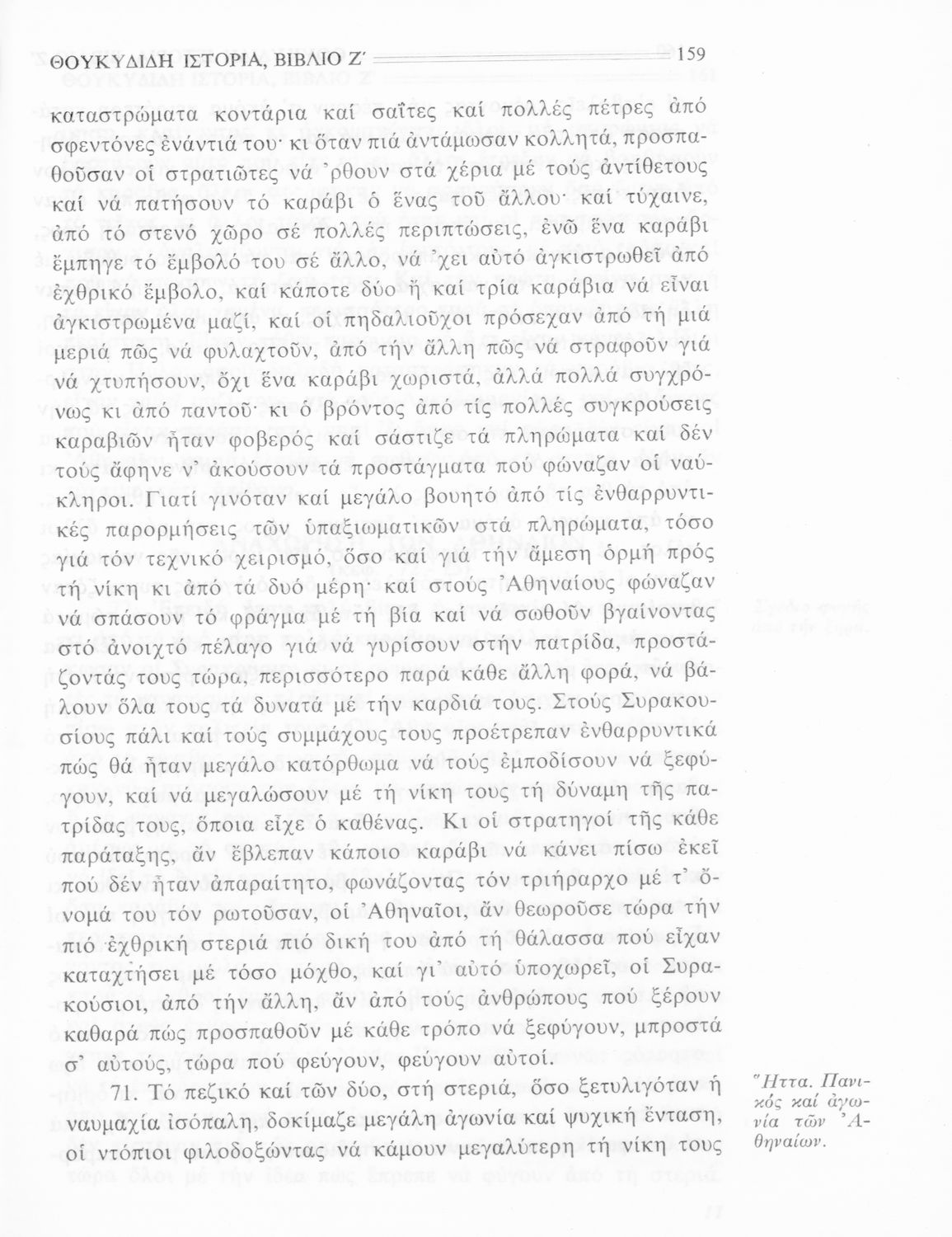 Σχολικό εγχειρίδιο Αρχαίων Ελληνικών Β΄ Γυμνασίου που περιλαμβάνει την μετάφραση των βιβλίων ΣΤ΄ και Ζ΄ της Ιστορίας του Θουκυδίδη, εισαγωγή στη ζωή και το έργο του, και ερμηνευτικά και πραγματολογικά σχόλια.
