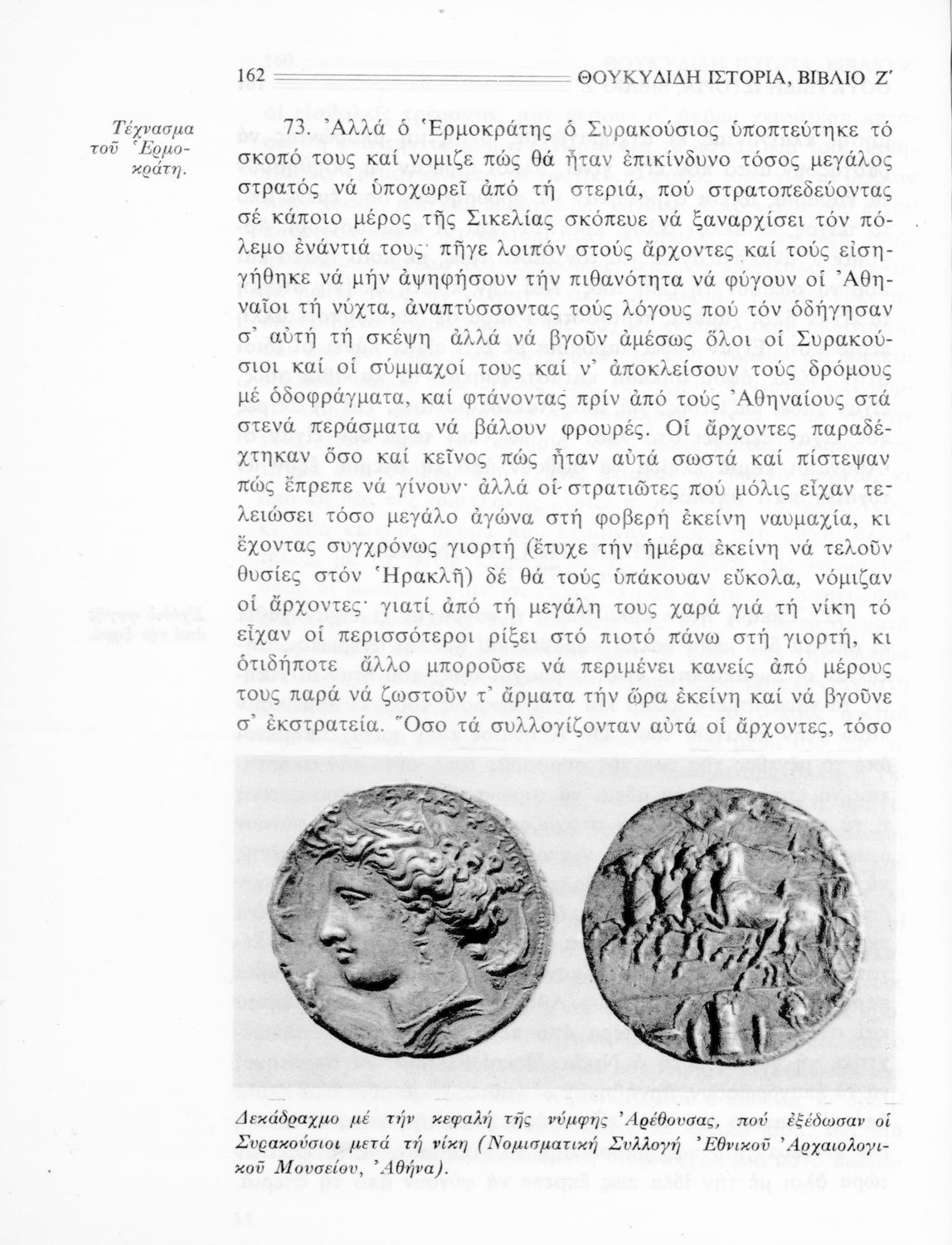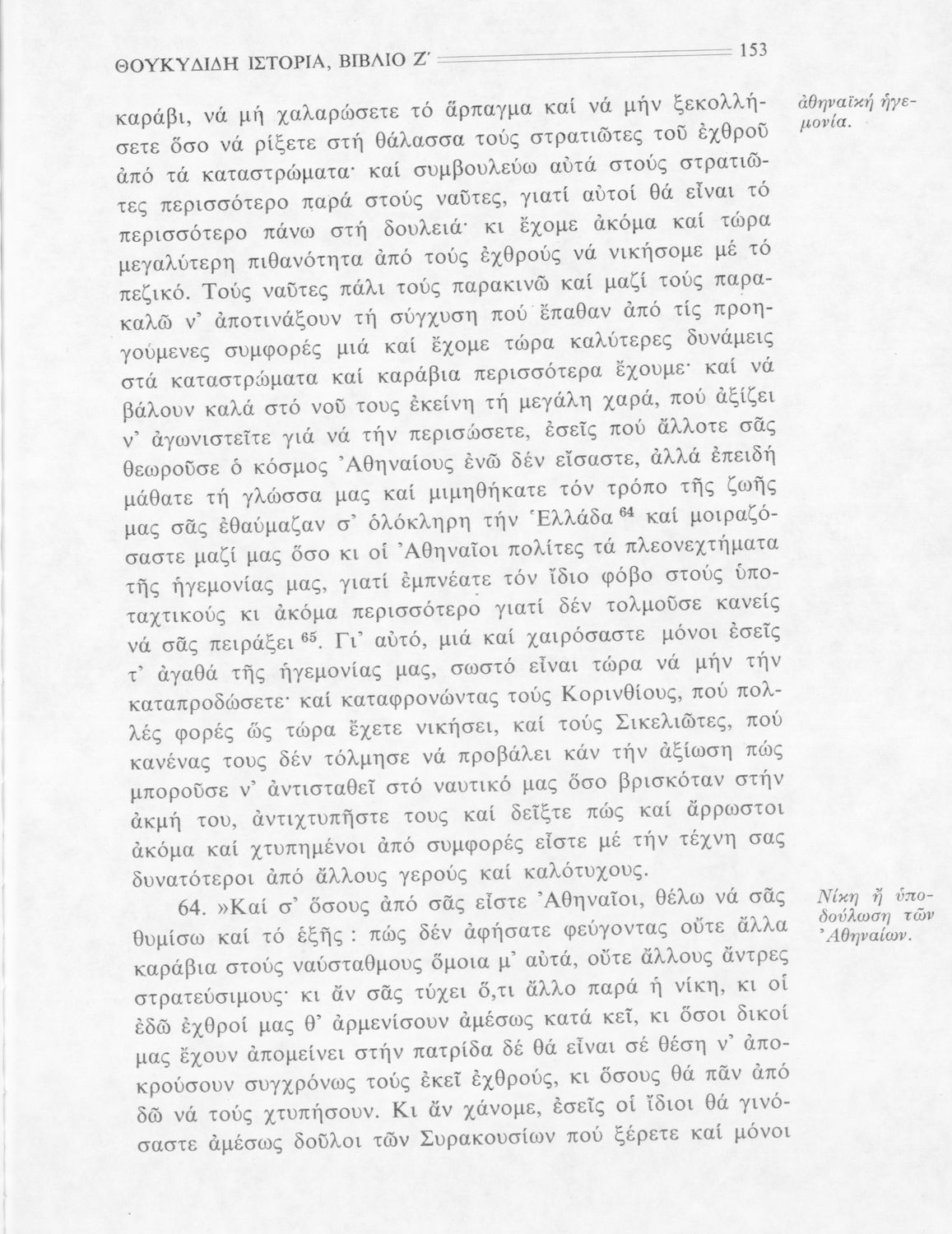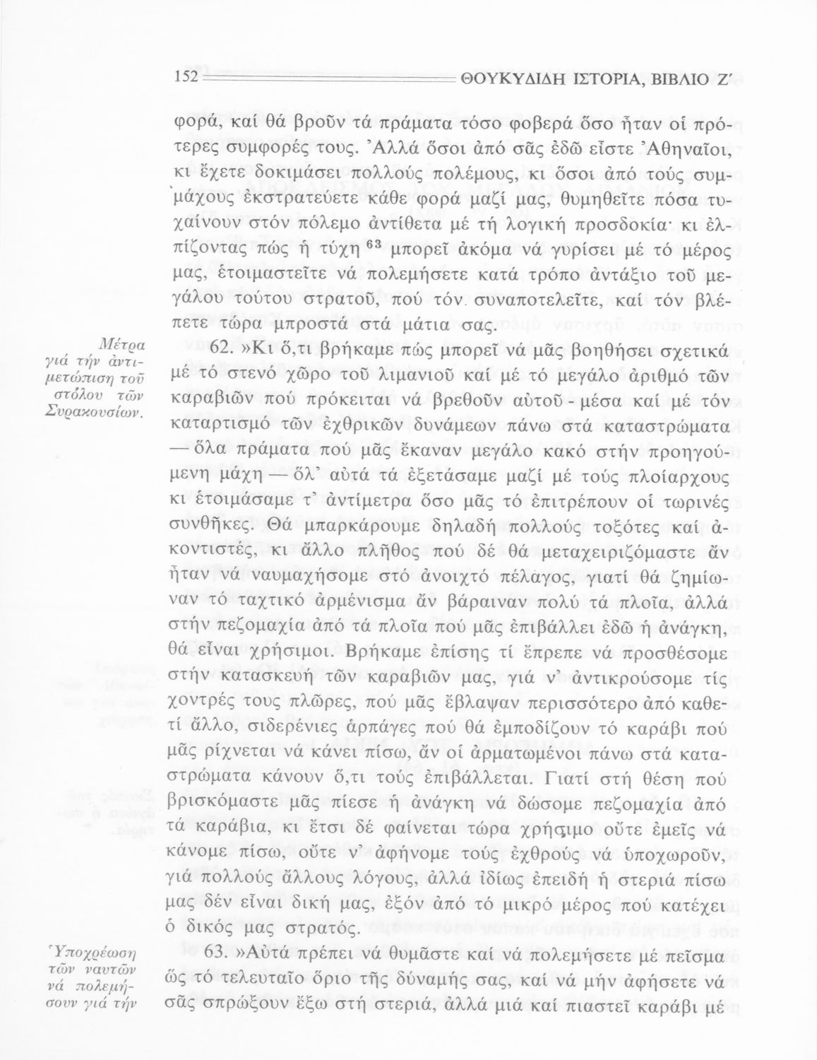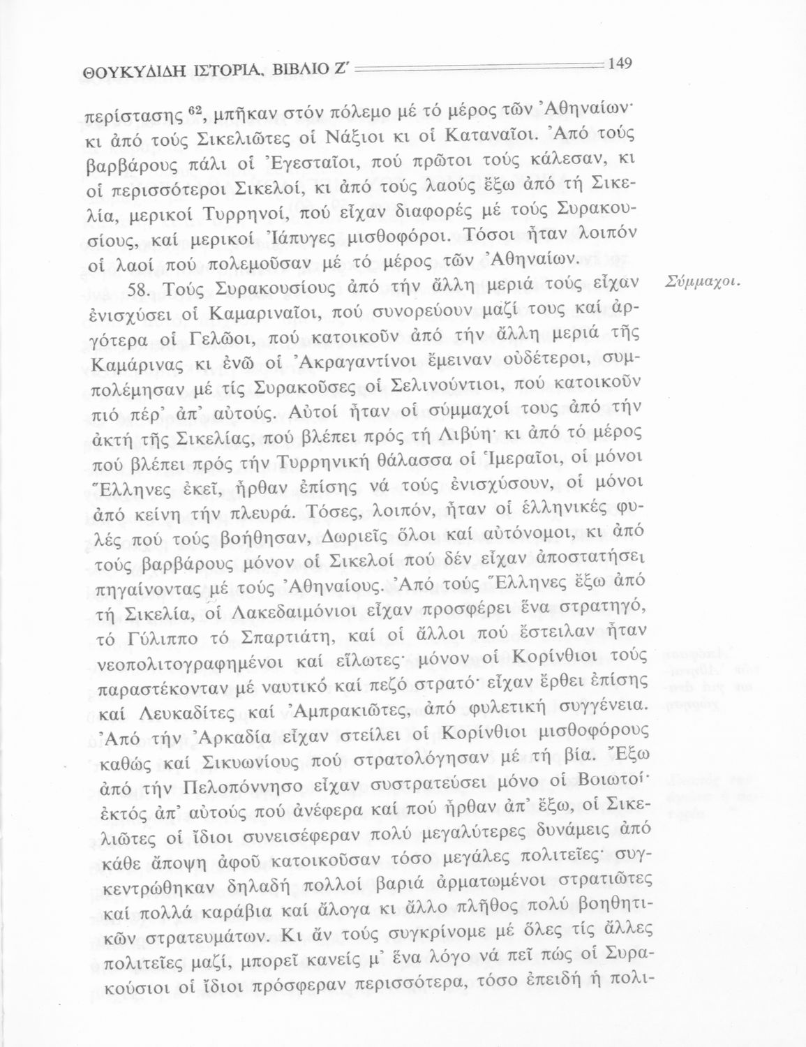 Σχολικό εγχειρίδιο Αρχαίων Ελληνικών Β΄ Γυμνασίου που περιλαμβάνει την μετάφραση των βιβλίων ΣΤ΄ και Ζ΄ της Ιστορίας του Θουκυδίδη, εισαγωγή στη ζωή και το έργο του, και ερμηνευτικά και πραγματολογικά σχόλια.