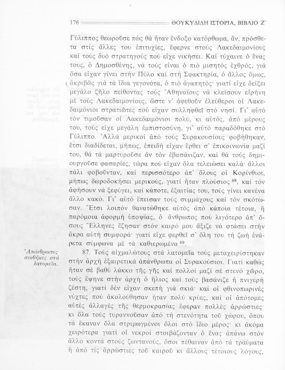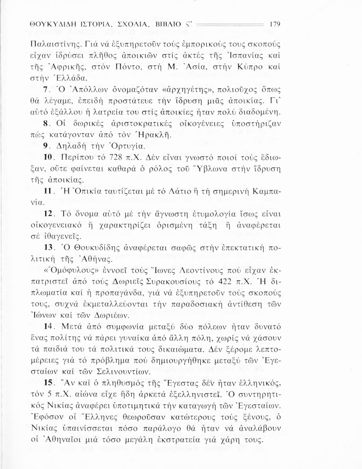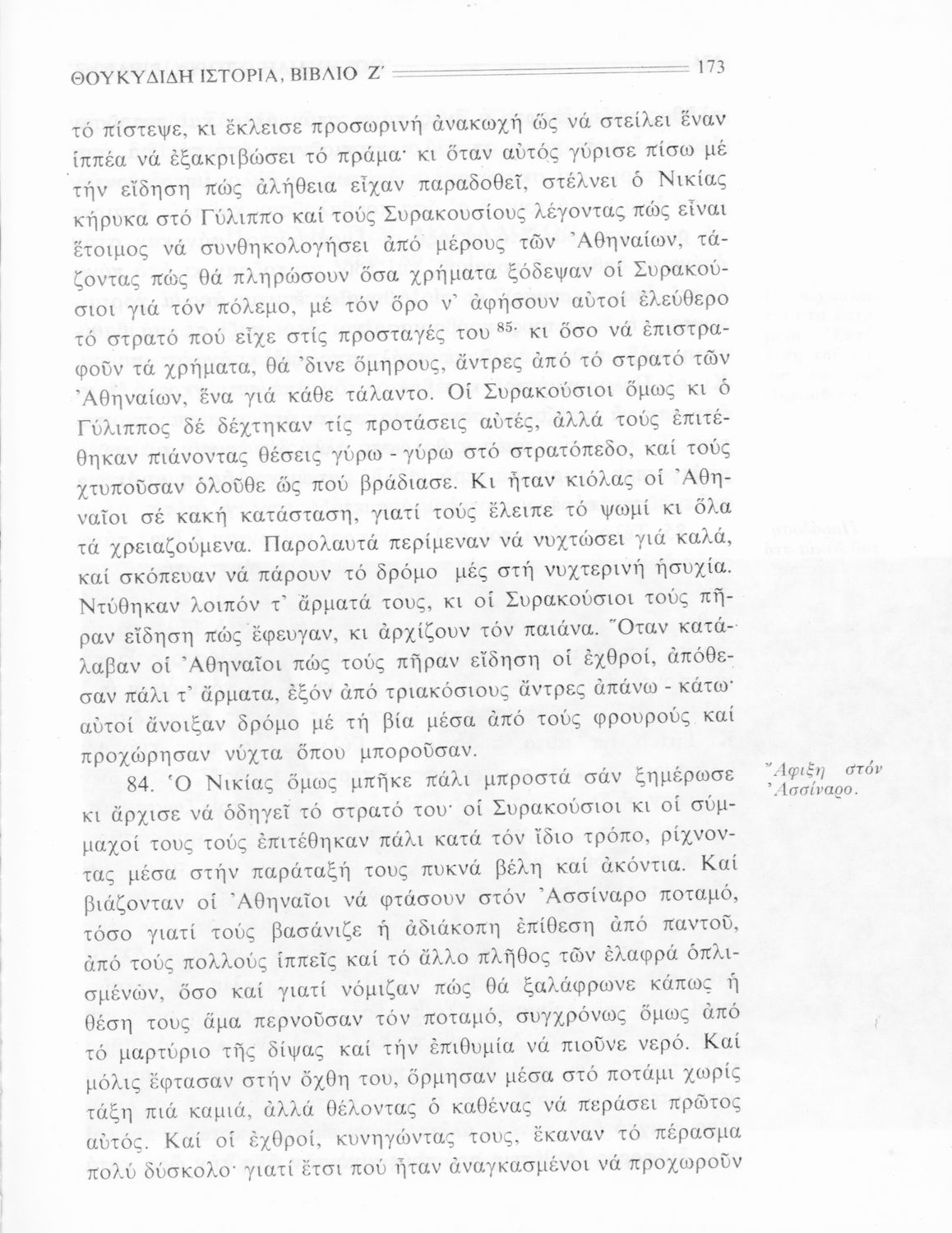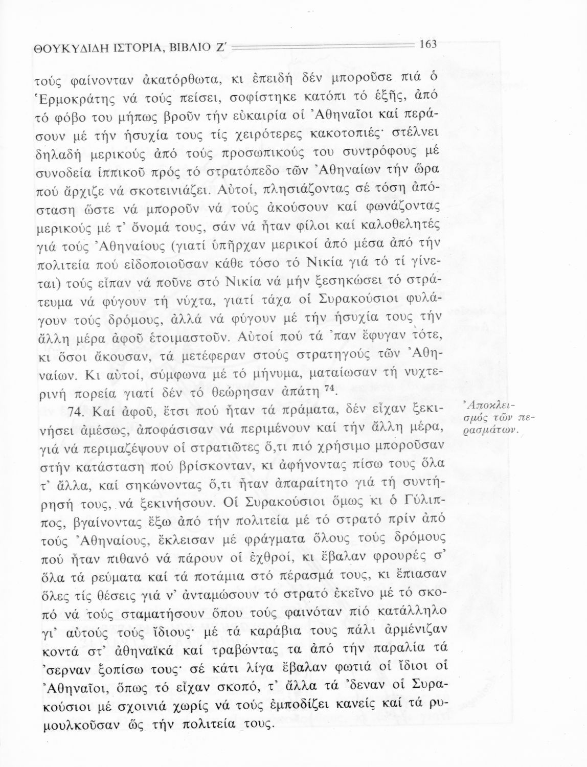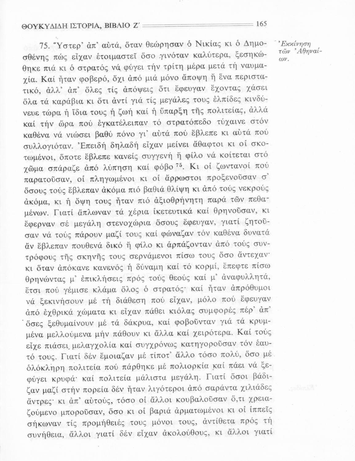 Σχολικό εγχειρίδιο Αρχαίων Ελληνικών Β΄ Γυμνασίου που περιλαμβάνει την μετάφραση των βιβλίων ΣΤ΄ και Ζ΄ της Ιστορίας του Θουκυδίδη, εισαγωγή στη ζωή και το έργο του, και ερμηνευτικά και πραγματολογικά σχόλια.