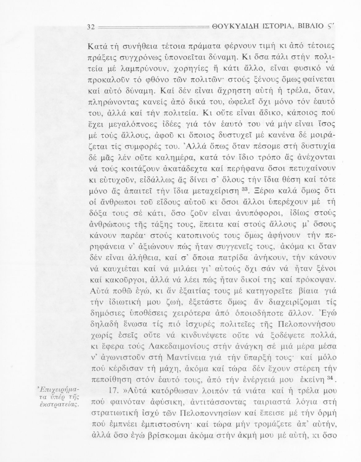 Σχολικό εγχειρίδιο Αρχαίων Ελληνικών Β΄ και Γ΄ Γυμνασίου που περιέχει αποσπάσματα από το έργο του Θουκυδίδη Ιστορία, και με ερμηνευτικές και πραγματολογικές παρατηρήσεις.
