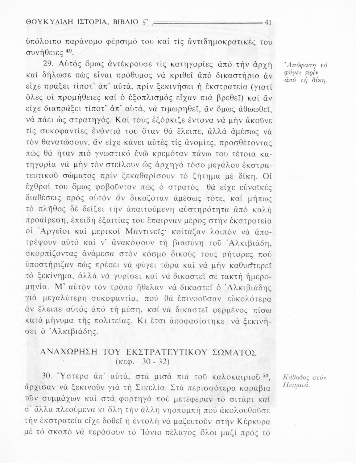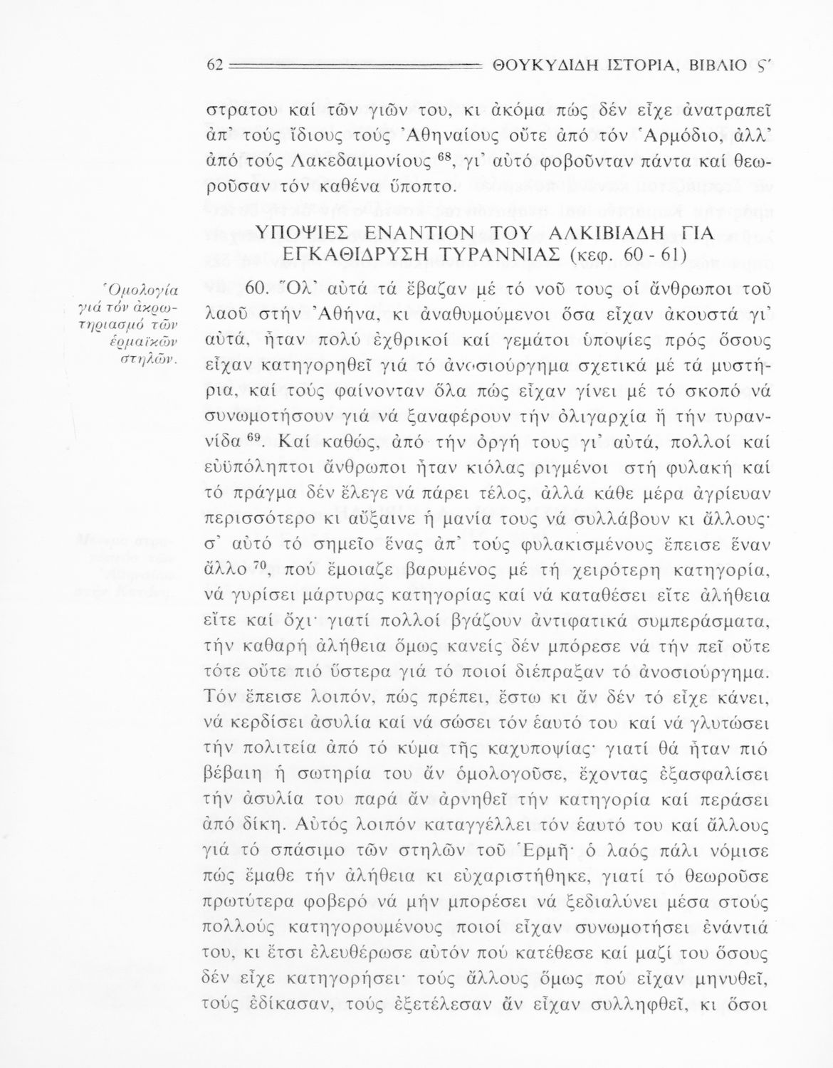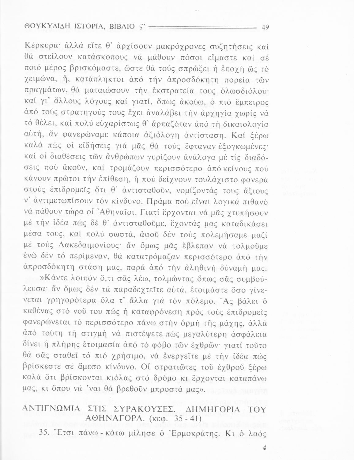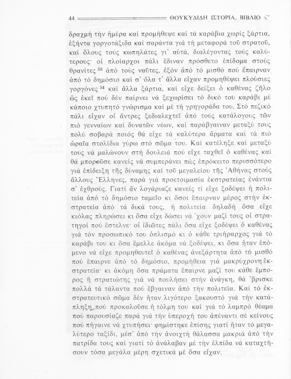 Σχολικό εγχειρίδιο Αρχαίων Ελληνικών Β΄ Γυμνασίου που περιλαμβάνει την μετάφραση των βιβλίων ΣΤ΄ και Ζ΄ της Ιστορίας του Θουκυδίδη, εισαγωγή στη ζωή και το έργο του, και ερμηνευτικά και πραγματολογικά σχόλια.