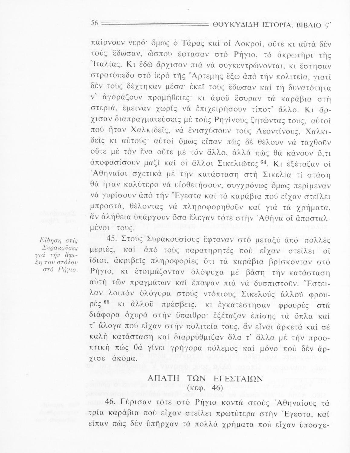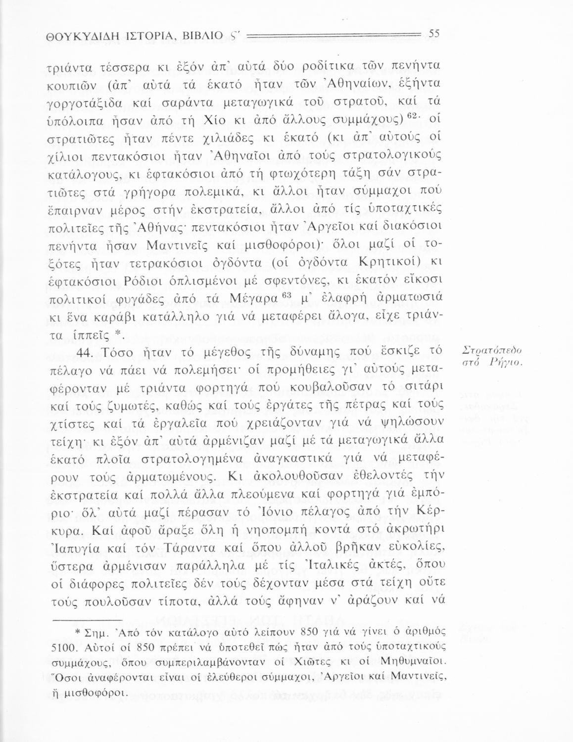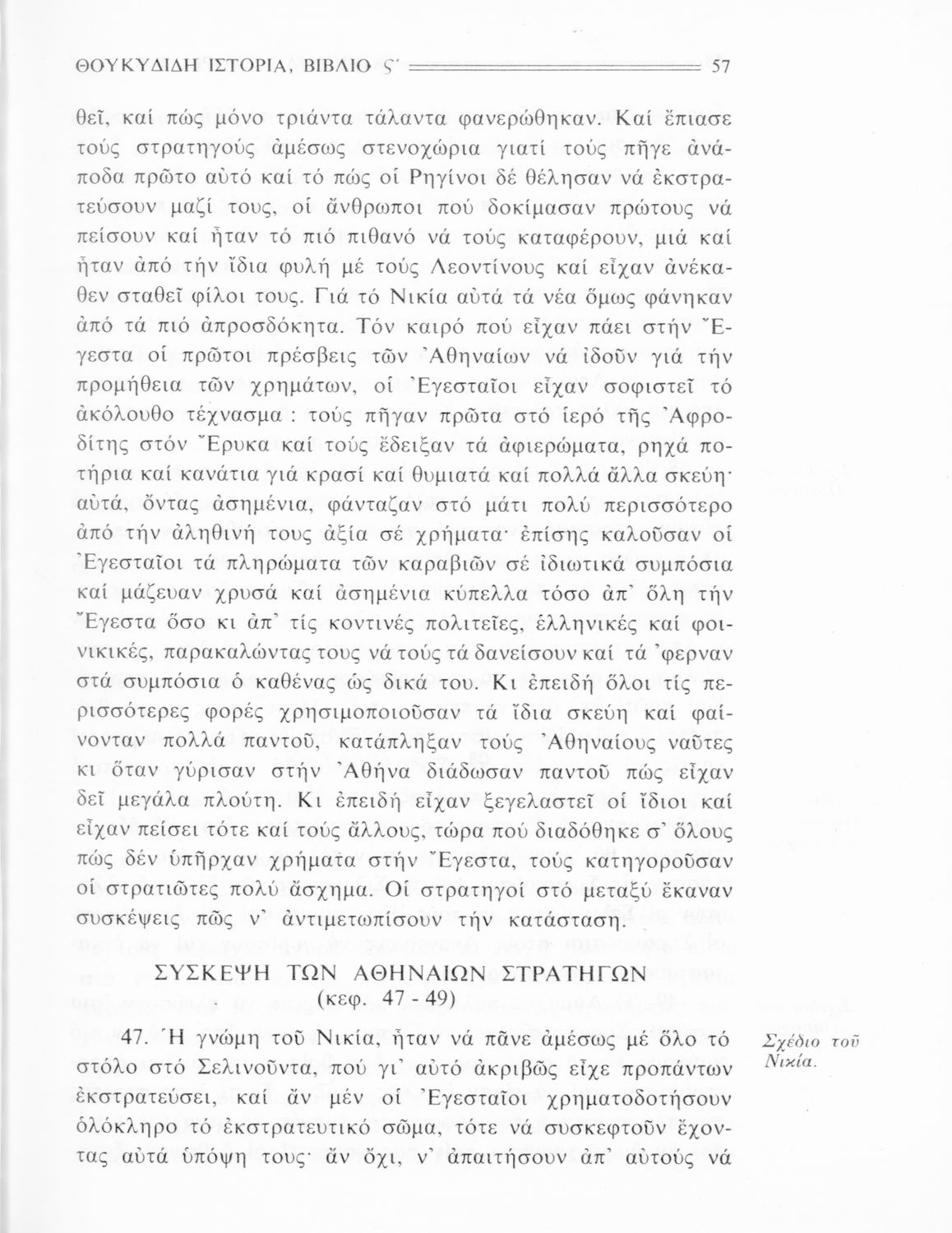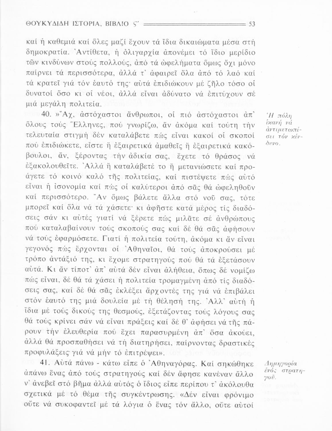 Σχολικό εγχειρίδιο Αρχαίων Ελληνικών Β΄ Γυμνασίου που περιλαμβάνει την μετάφραση των βιβλίων ΣΤ΄ και Ζ΄ της Ιστορίας του Θουκυδίδη, εισαγωγή στη ζωή και το έργο του, και ερμηνευτικά και πραγματολογικά σχόλια.
