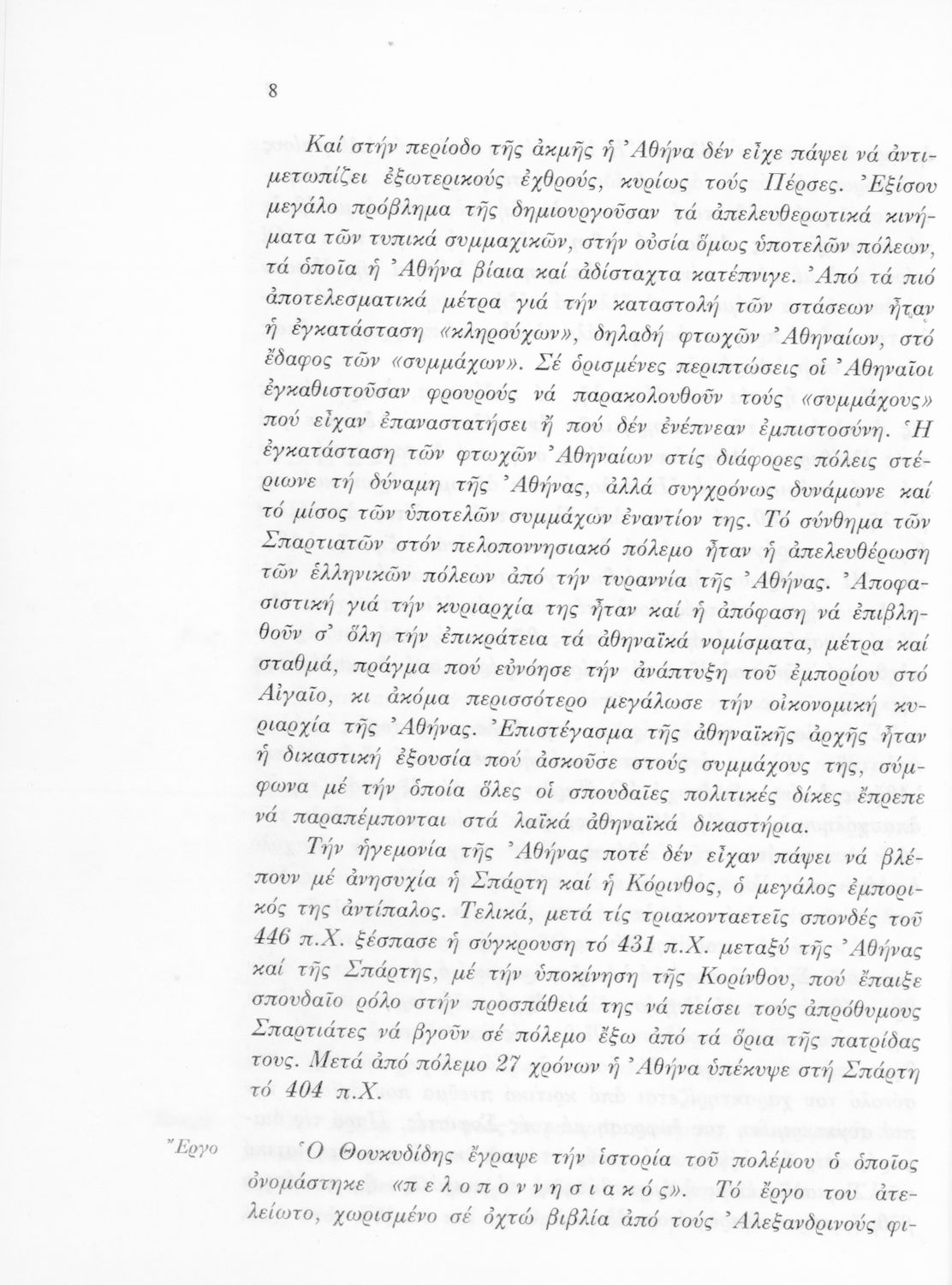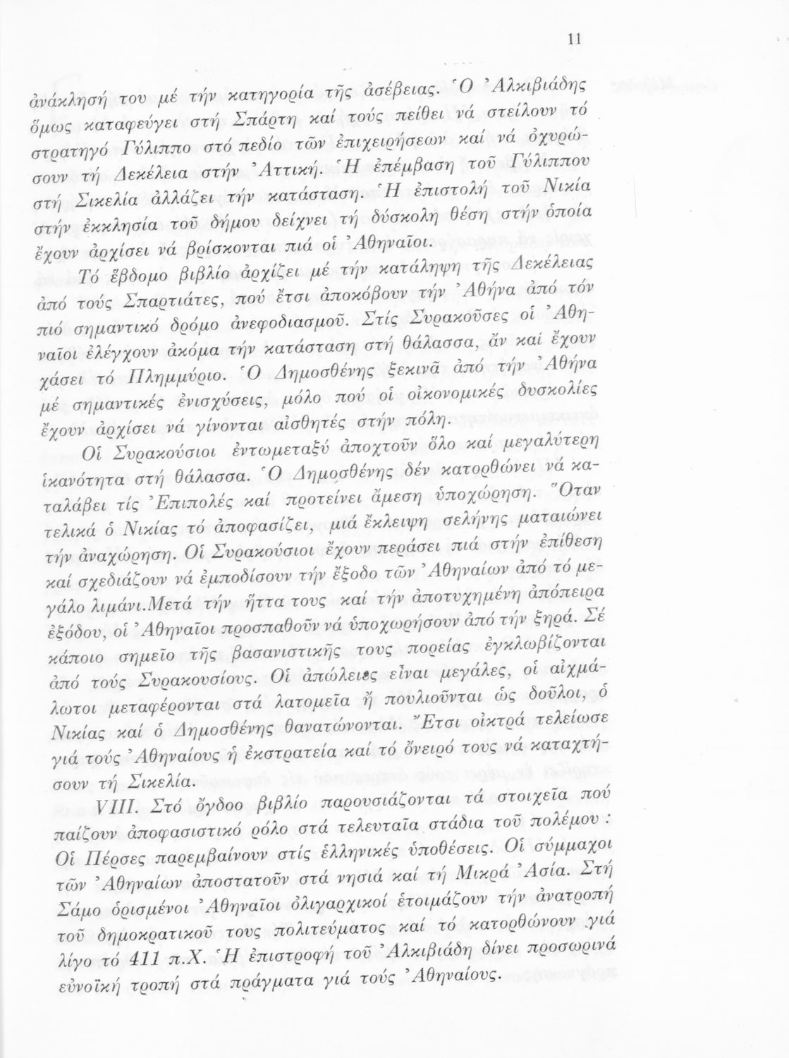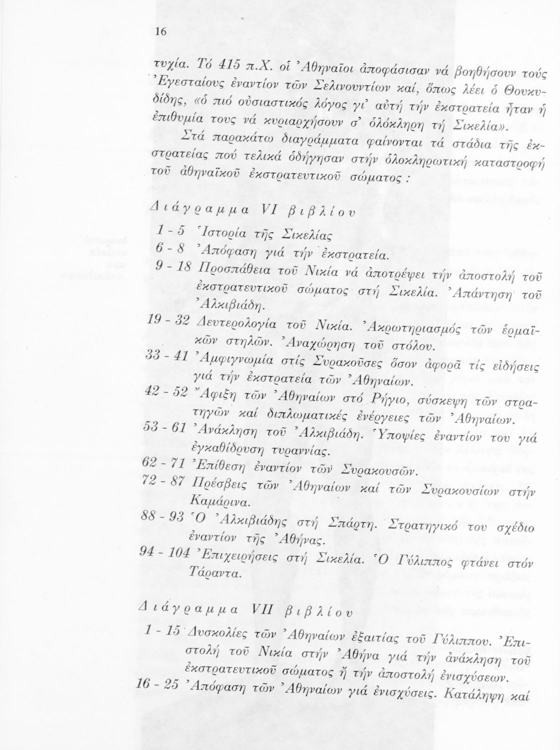Σχολικό εγχειρίδιο Αρχαίων Ελληνικών Β΄ Γυμνασίου που περιλαμβάνει την μετάφραση των βιβλίων ΣΤ΄ και Ζ΄ της Ιστορίας του Θουκυδίδη, εισαγωγή στη ζωή και το έργο του, και ερμηνευτικά και πραγματολογικά σχόλια.