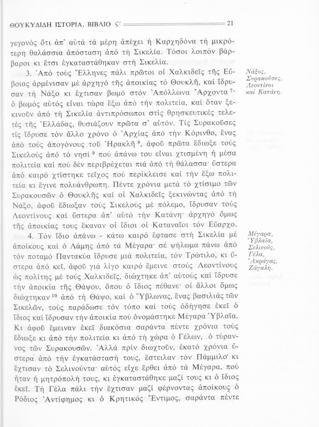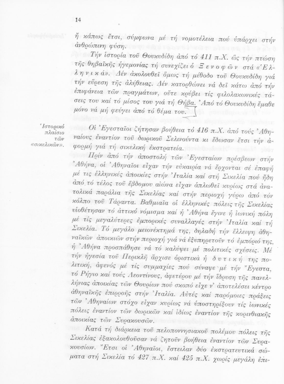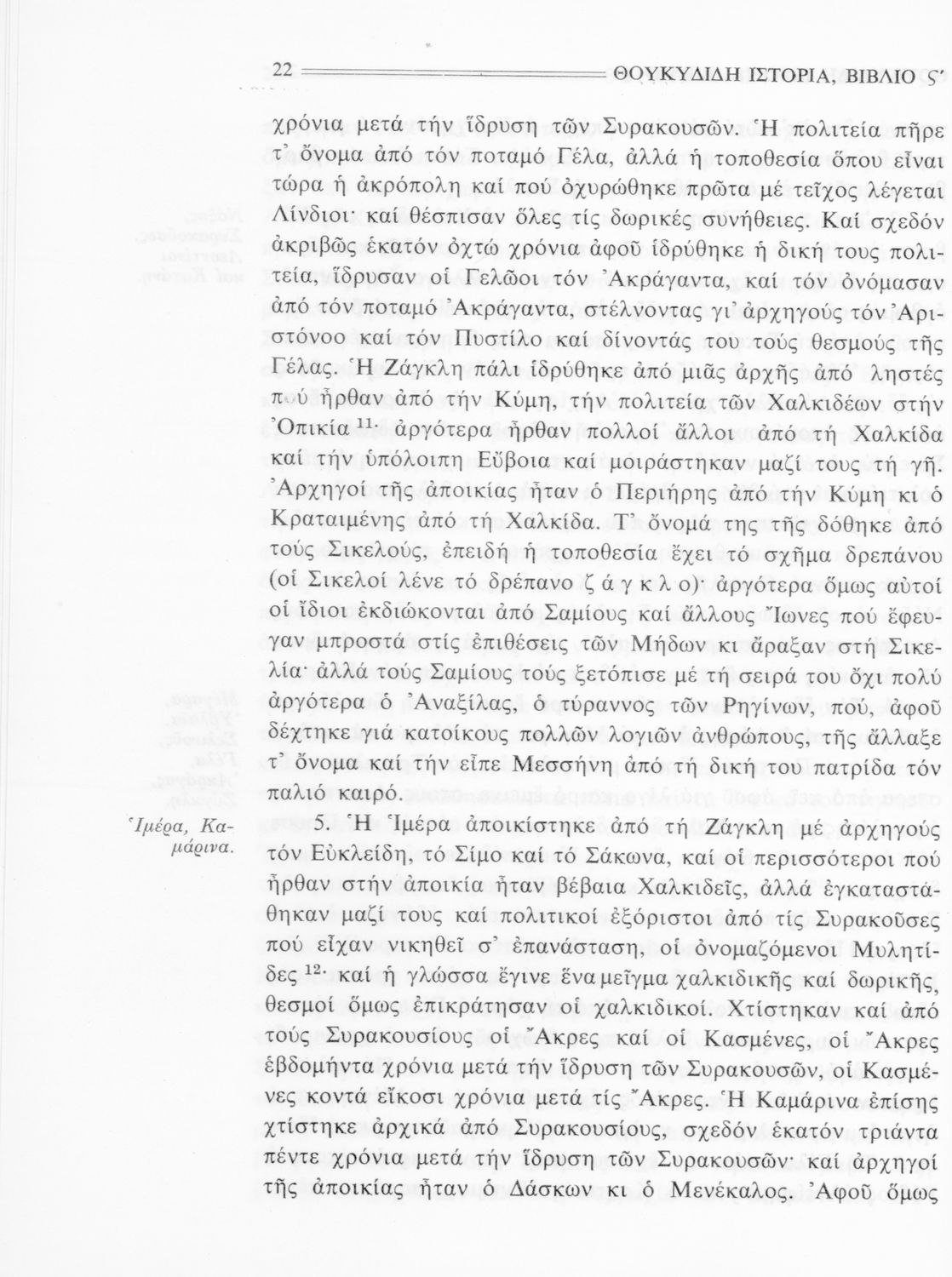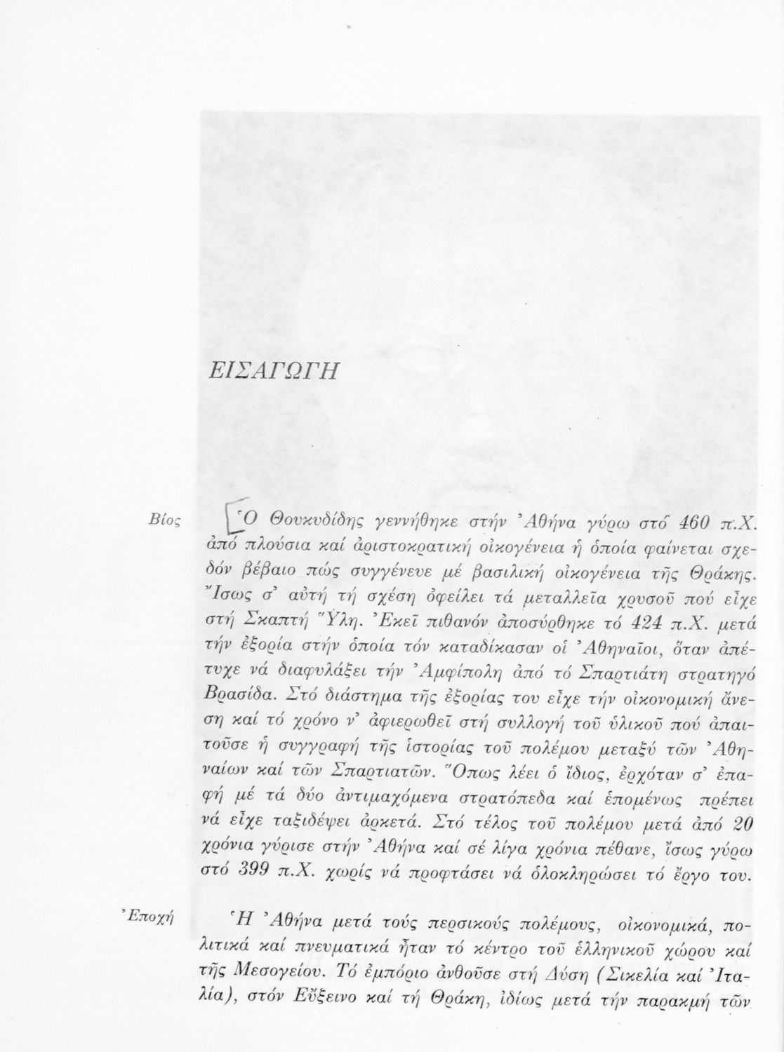 Σχολικό εγχειρίδιο Αρχαίων Ελληνικών Β΄ Γυμνασίου που περιλαμβάνει την μετάφραση των βιβλίων ΣΤ΄ και Ζ΄ της Ιστορίας του Θουκυδίδη, εισαγωγή στη ζωή και το έργο του, και ερμηνευτικά και πραγματολογικά σχόλια.