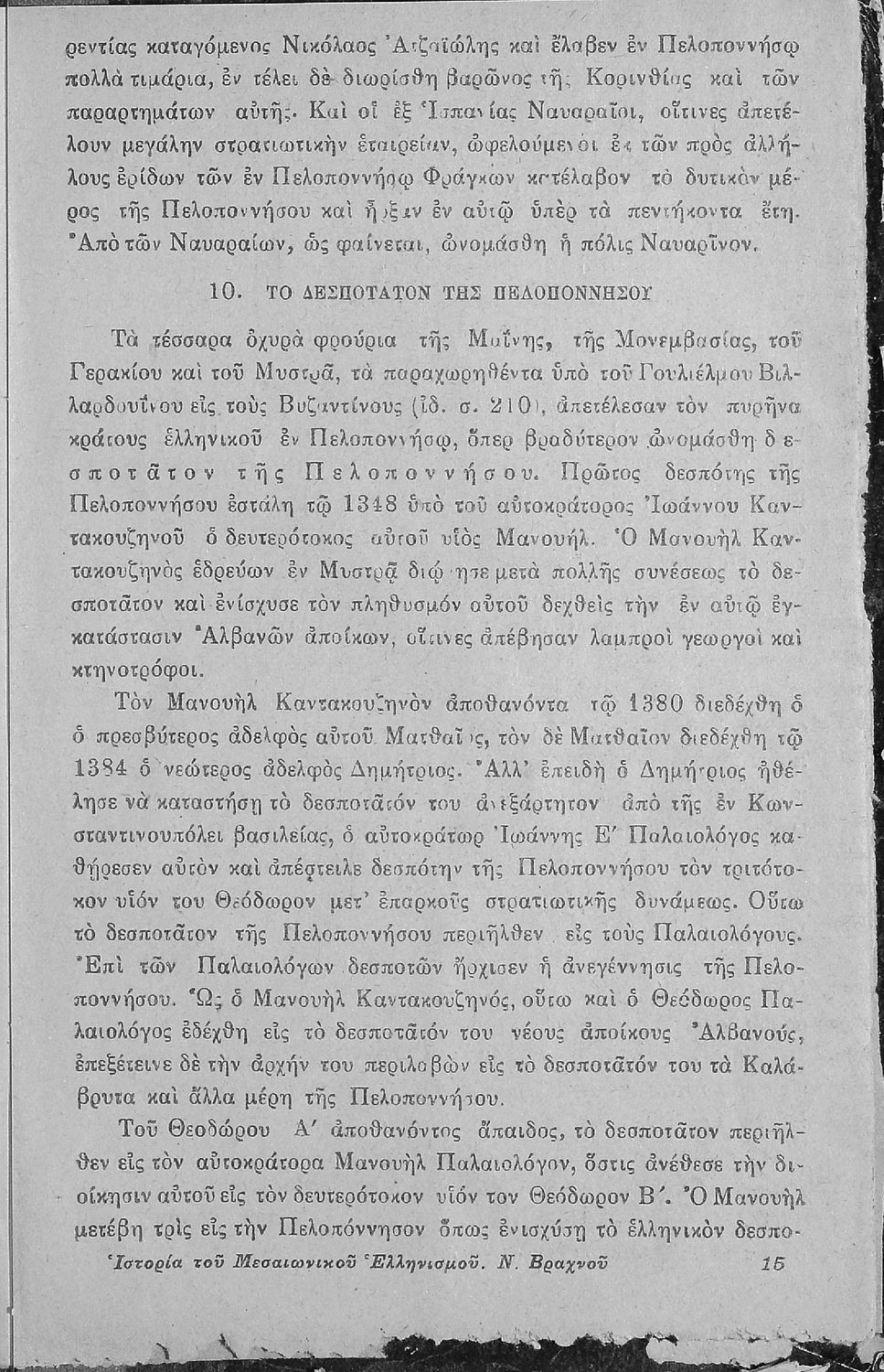 Ιστορία του Μεσαιωνικού Ελληνισμού : από του 395 μέχρι της αλώσεως της Κωνσταντινουπόλεως υπό των Οθωμανών μετά των σπουδαιοτέρων κεφαλαίων της όλης μεσαιωνικής ιστορίας δια την Γ΄ τάξιν των τετραταξίων Γυμνασίων και δια την αντίστοιχον τάξιν των λοιπών σχολείων της μέσης εκπαίδευσης