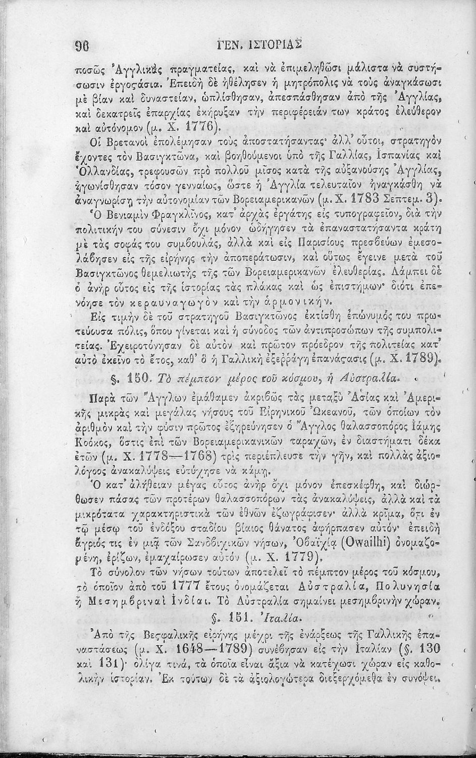 Σχολικό εγχειρίδιο για τις Τάξεις του Ελληνικού Σχολείου για το μάθημα της Ιστορίας. Περιλαμβάνει συνοπτικά την Ευρωπαϊκή και την Ελληνική ιστορία από τα αρχαία χρόνια μέχρι 1815 (Συνέδριο Βιέννης).