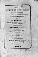 Σχολικό εγχειρίδιο Συντακτικού για τα Γυμνάσια και τα Ελληνικά σχολεία. Περιέχει την διδασκαλία του Συντακτικού των Νέων Ελληνικών. Έχει την έγκριση της Κυβερνήσεως. Ο συγγραφέας υπήρξε καθηγητής των Ελληνικών