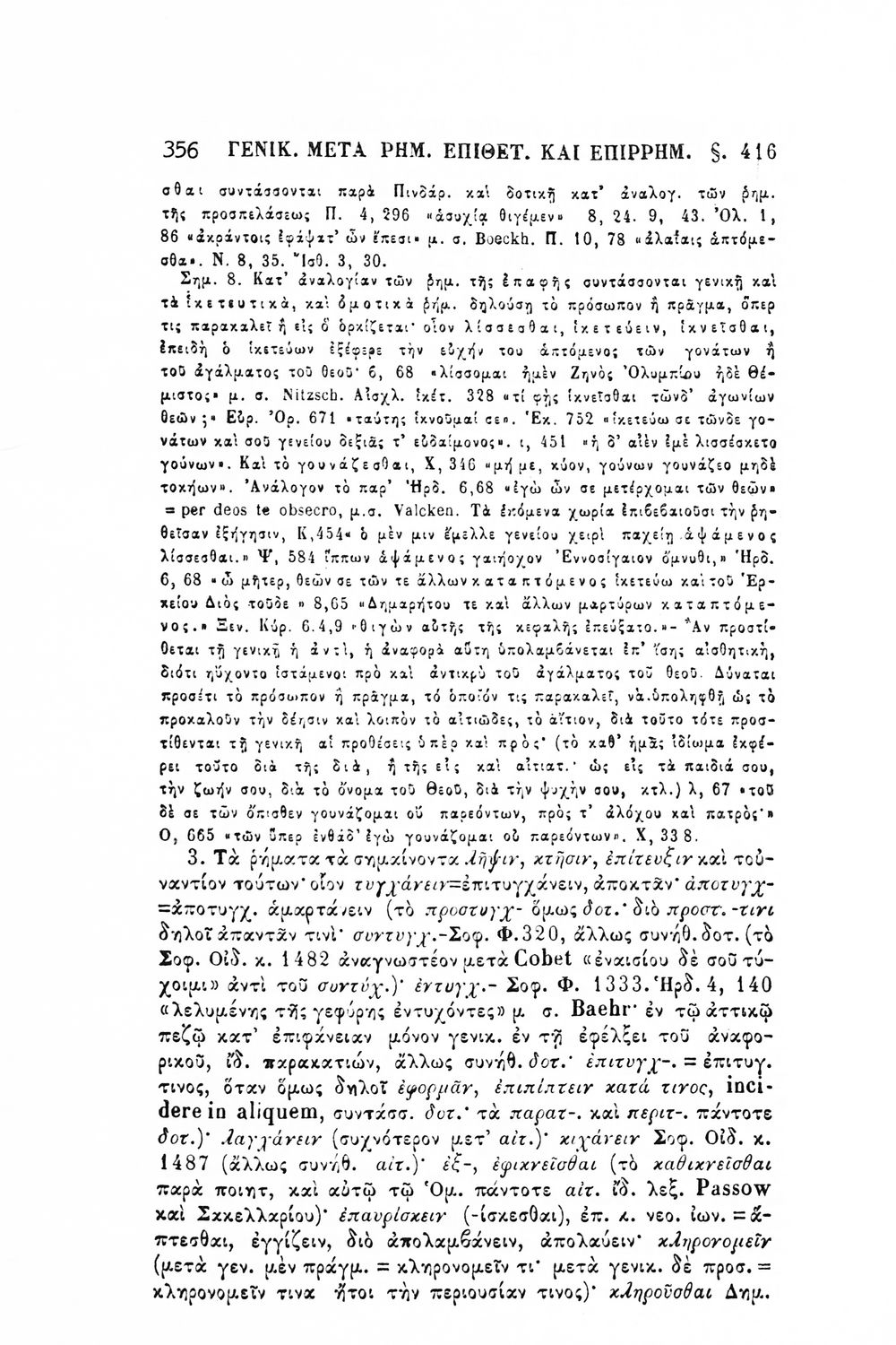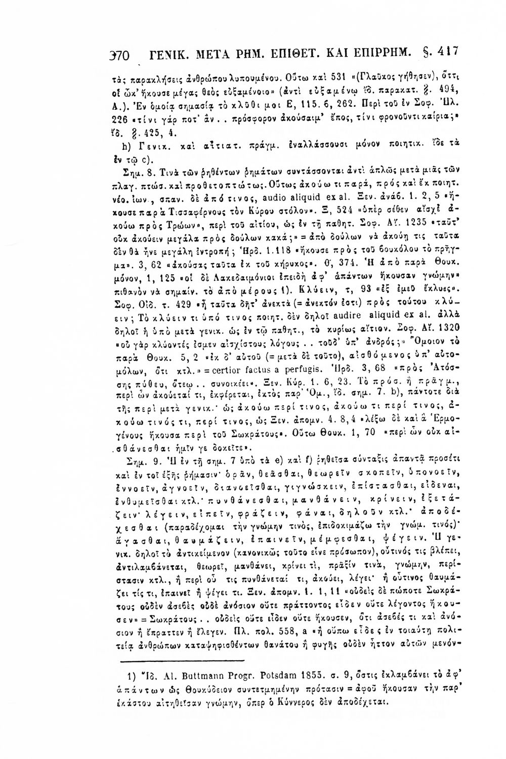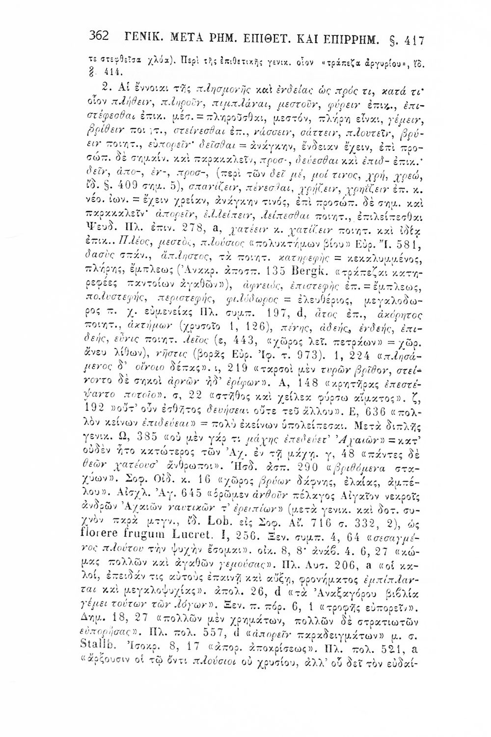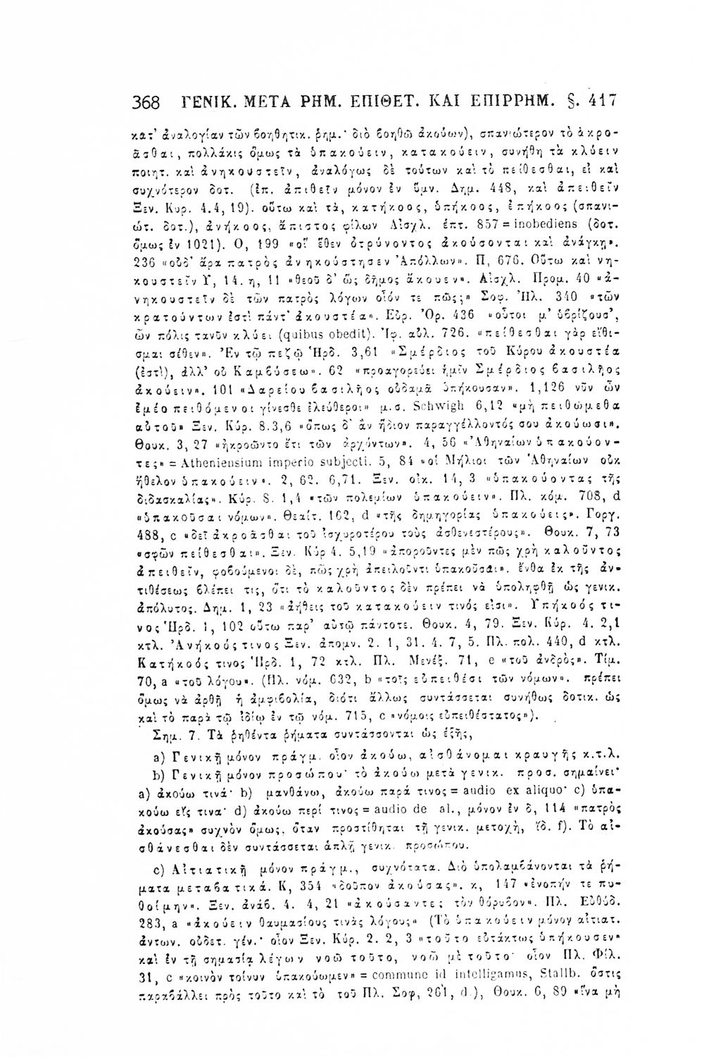 Κωδικός αναγνώρισης: 01-18255 Τίτλος: Μεγάλη Γραμματική της ελληνικής γλώσσης, Μέρος δεύτερον, Τμήμα πρώτον Συγγραφέας: Ραφαήλ Κύννερος (Raphael Kuhner), Ευστάθιος Σταθάκης (μετάφραση) Μέγεθος και υπόστρωμα: Άλλο, 23εκ., σκληρό εξώφυλλο, 692 σελίδες. |