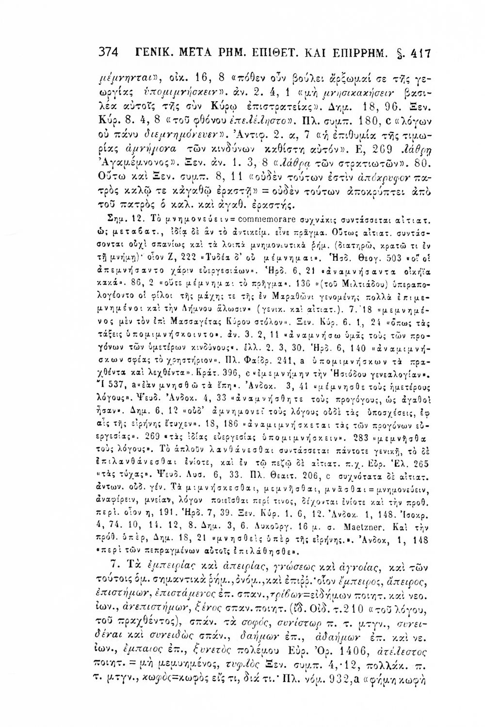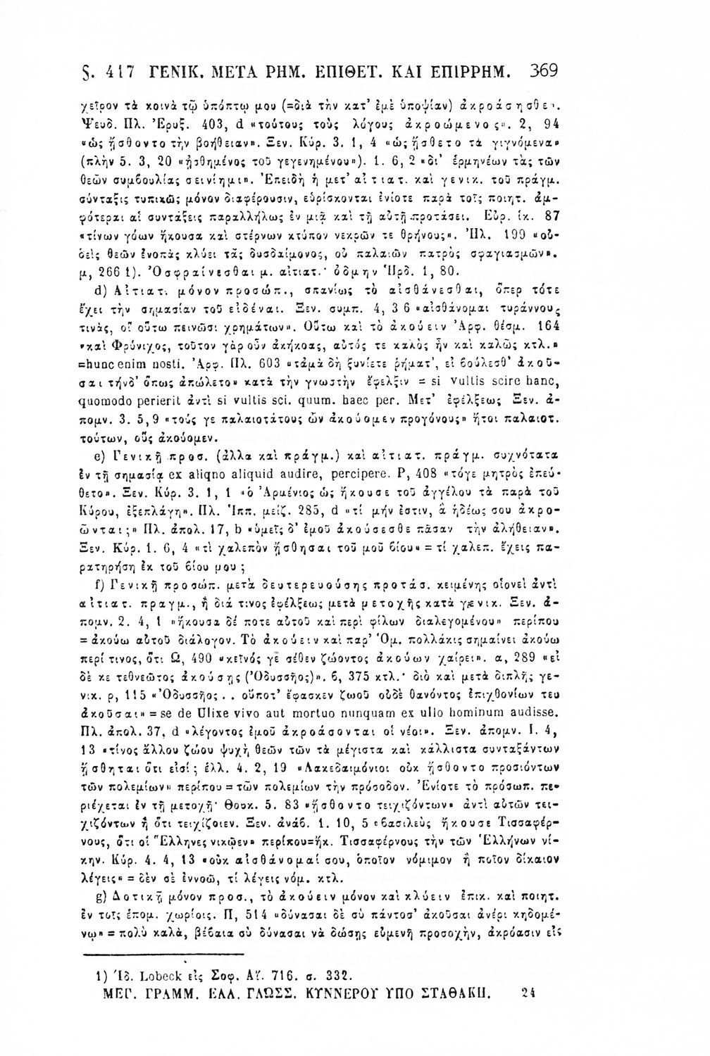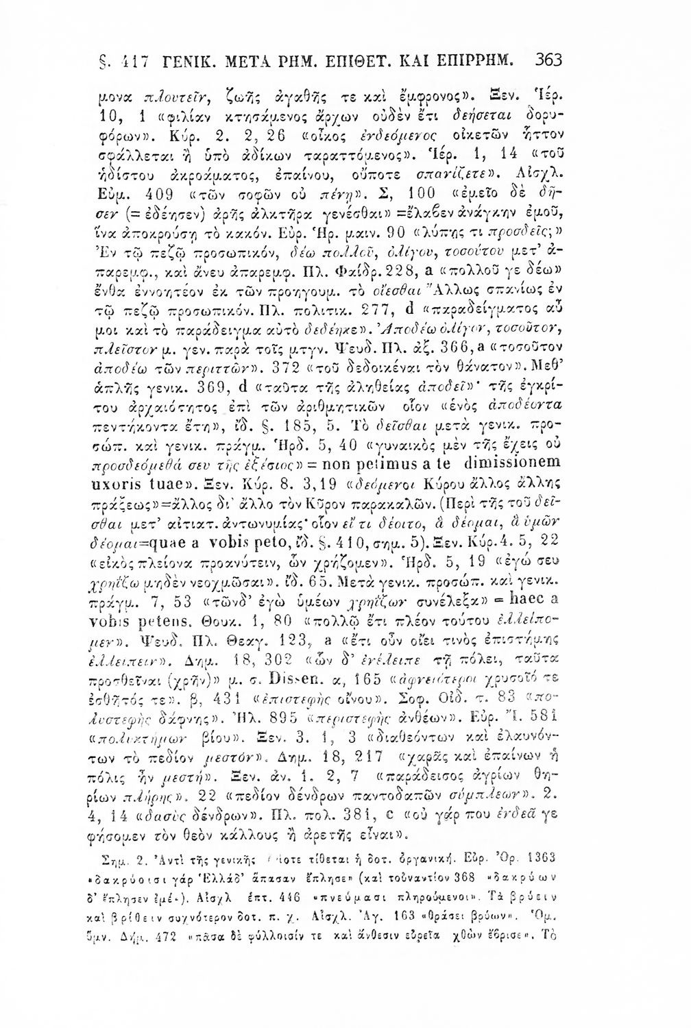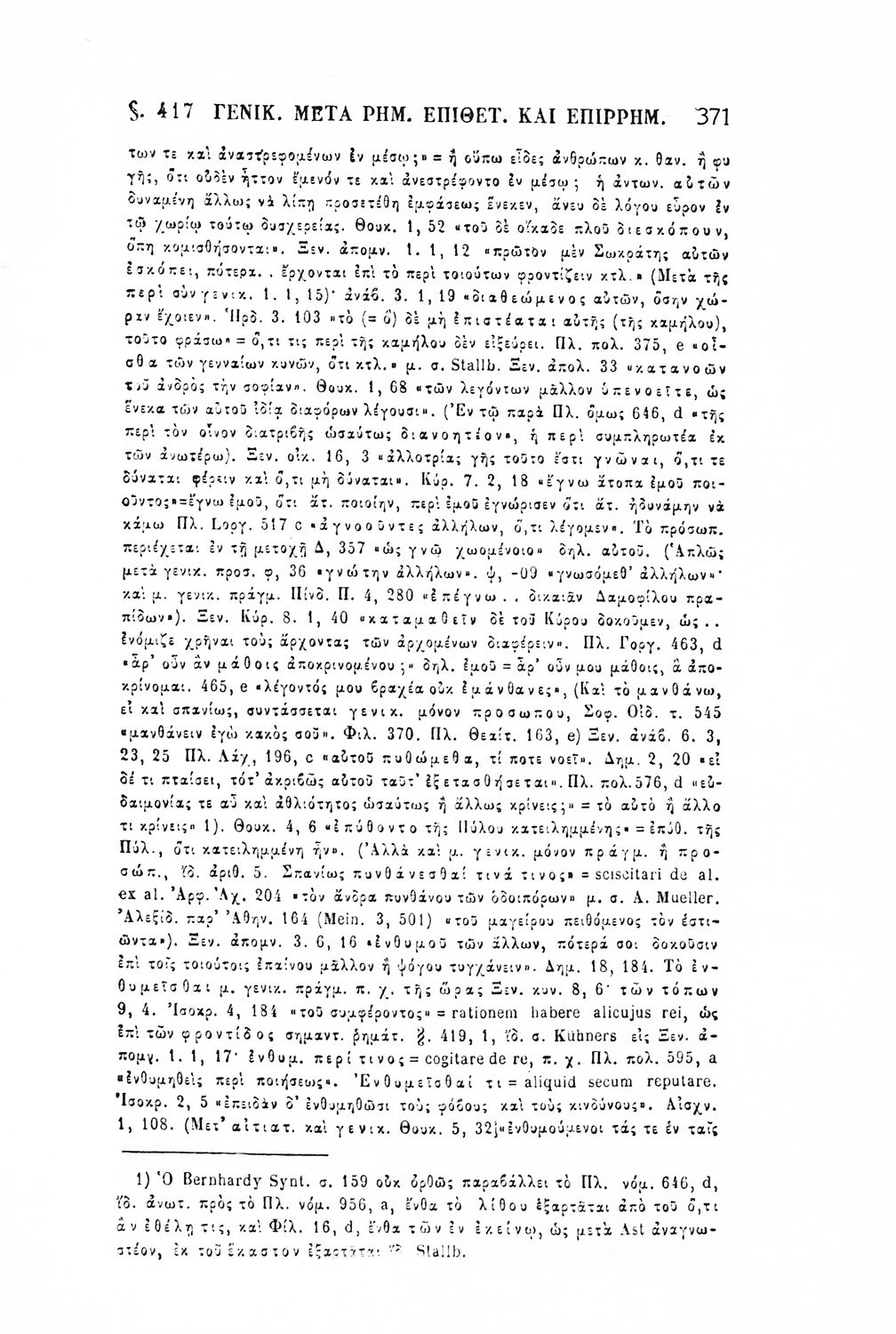 Κωδικός αναγνώρισης: 01-18255 Τίτλος: Μεγάλη Γραμματική της ελληνικής γλώσσης, Μέρος δεύτερον, Τμήμα πρώτον Συγγραφέας: Ραφαήλ Κύννερος (Raphael Kuhner), Ευστάθιος Σταθάκης (μετάφραση) Μέγεθος και υπόστρωμα: Άλλο, 23εκ., σκληρό εξώφυλλο, 692 σελίδες. |
