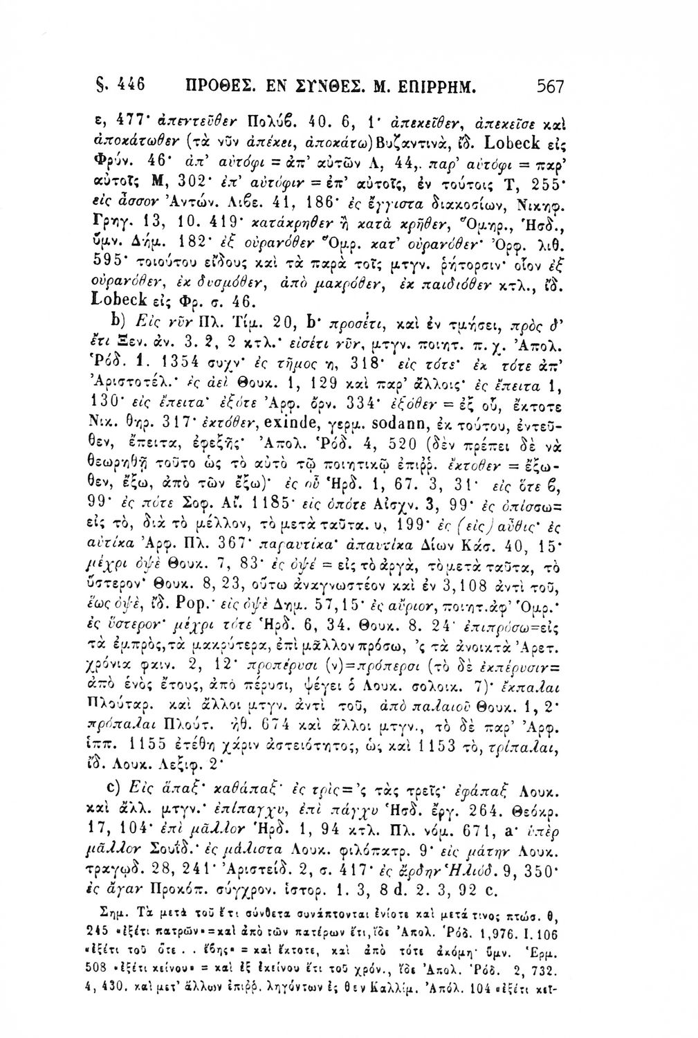 Κωδικός αναγνώρισης: 01-18255 Τίτλος: Μεγάλη Γραμματική της ελληνικής γλώσσης, Μέρος δεύτερον, Τμήμα πρώτον Συγγραφέας: Ραφαήλ Κύννερος (Raphael Kuhner), Ευστάθιος Σταθάκης (μετάφραση) Μέγεθος και υπόστρωμα: Άλλο, 23εκ., σκληρό εξώφυλλο, 692 σελίδες. |