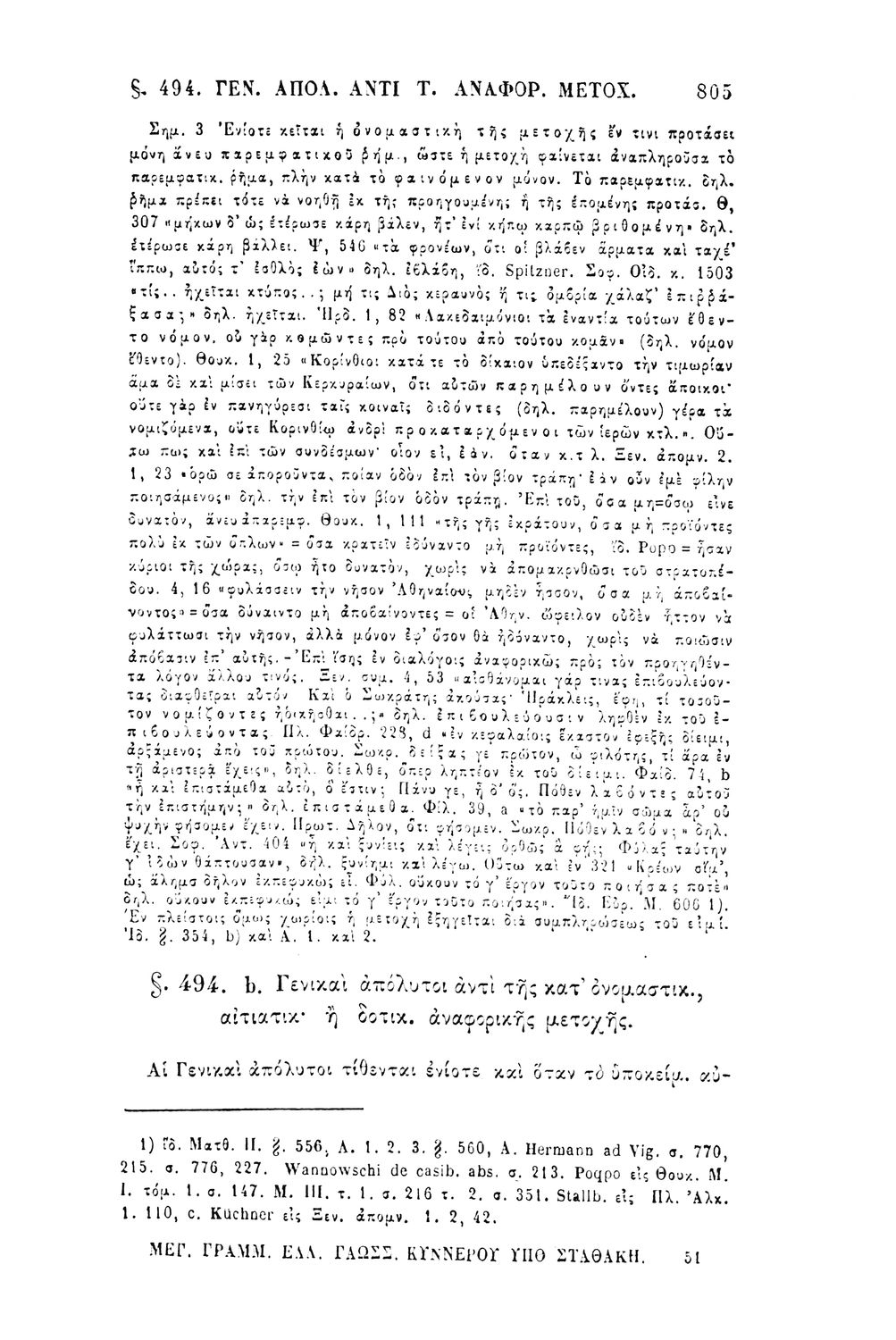 Κωδικός αναγνώρισης: 01-18256 Τίτλος: Μεγάλη Γραμματική της ελληνικής γλώσσης, Μέρος δεύτερον, Τμήμα δεύτερον Συγγραφέας: Ραφαήλ Κύννερος (Raphael Kuhner), Ευστάθιος Σταθάκης (μετάφραση) Μέγεθος και υπόστρωμα: Άλλο, 23εκ., σκληρό εξώφυλλο, 806 σελίδες. |