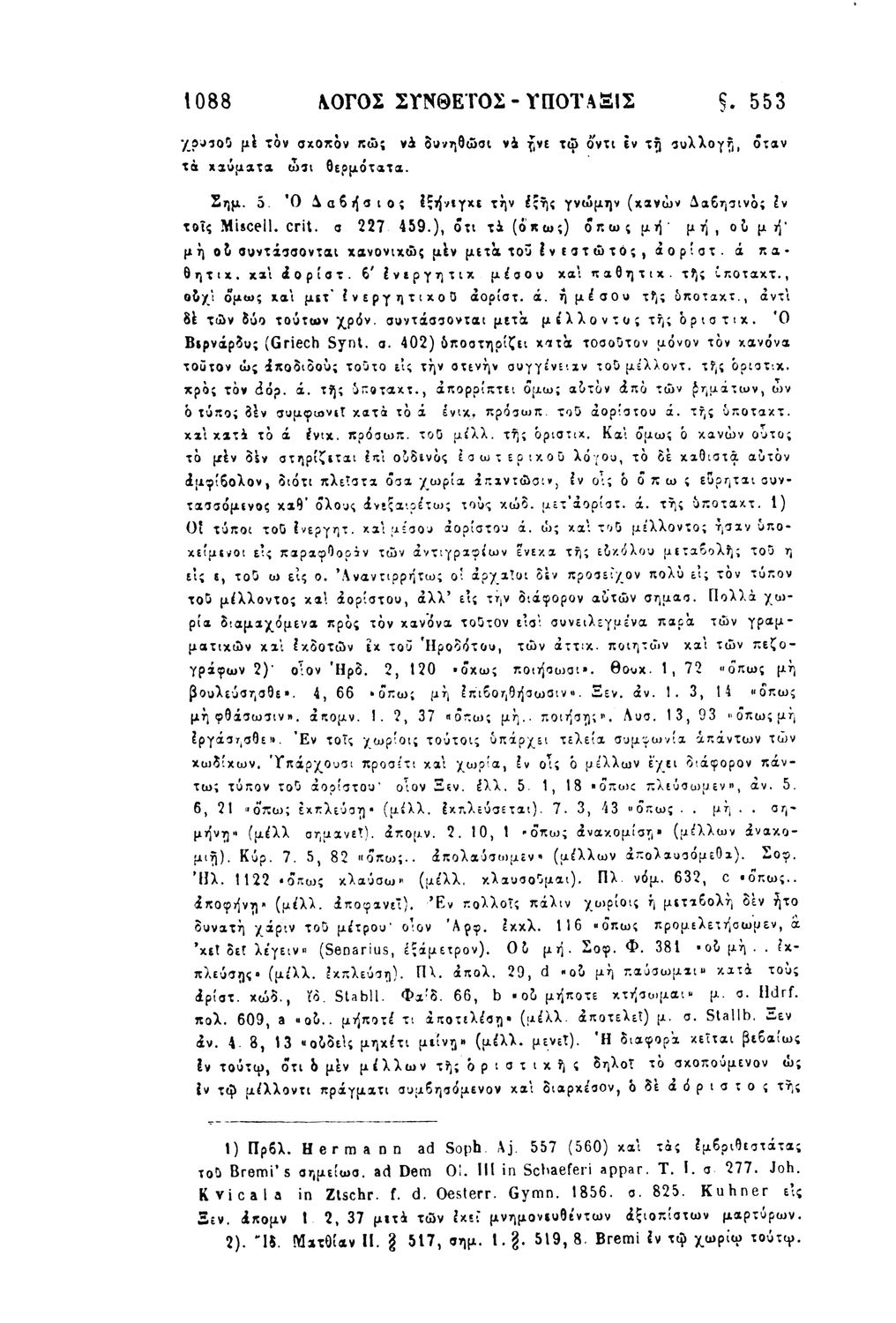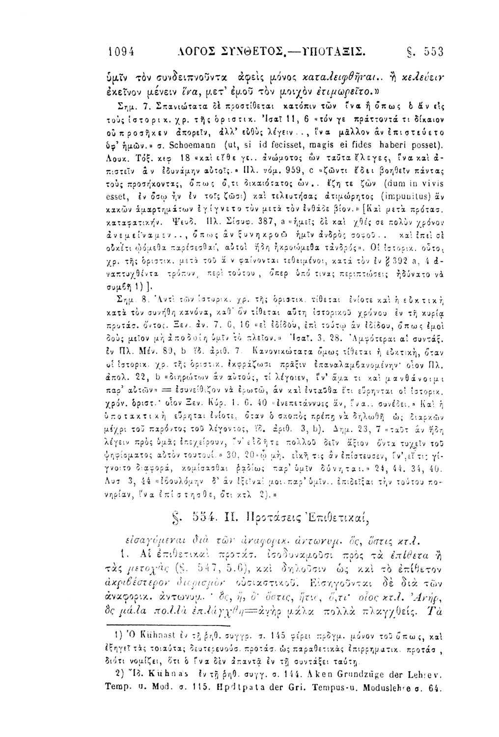 LDR 01039 2200193 4500 035 ## _a01-18256 040 ## _aΙνστιτούτο Εκπαιδευτικής Πολιτικής 041 ## _ael 100 ## _aΡαφαήλ Κύννερος (Raphael Kuhner) _aΕυστάθιος Σταθάκης (μετάφραση) 110 ## _a18256 245 0# _aΜεγάλη Γραμματική της ελληνικής γλώσσης, Μέρος δεύτερον, Τμήμα δεύτερον 250 ## _a2η Έκδοση 260 ## _aΑθήνα _bΒιβλιοπωλείον "Δωδώνη" 300 ## _a806 _c23 520 ## _aΜεγάλη Γραμματική της ελληνικής γλώσσας που μεταγλωττίστηκε από τα Γερμανικά από τον καθηγητή του Β΄ Γυμνασίου, Ευστάθιο Γ. Σταθάκη. 522 ## _aΕλλάδα 546 ## _aΚαθαρεύουσα 563 ## _aΣκληρό Εξώφυλλο 650 #4 _aΑπαρέμφατα _aΜετοχές _aΥποθετικός λόγος
