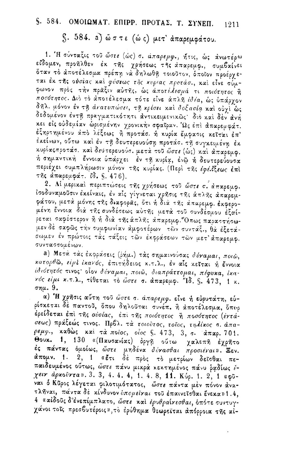 Κωδικός αναγνώρισης: 01-18256 Τίτλος: Μεγάλη Γραμματική της ελληνικής γλώσσης, Μέρος δεύτερον, Τμήμα δεύτερον Συγγραφέας: Ραφαήλ Κύννερος (Raphael Kuhner), Ευστάθιος Σταθάκης (μετάφραση) Μέγεθος και υπόστρωμα: Άλλο, 23εκ., σκληρό εξώφυλλο, 806 σελίδες. |