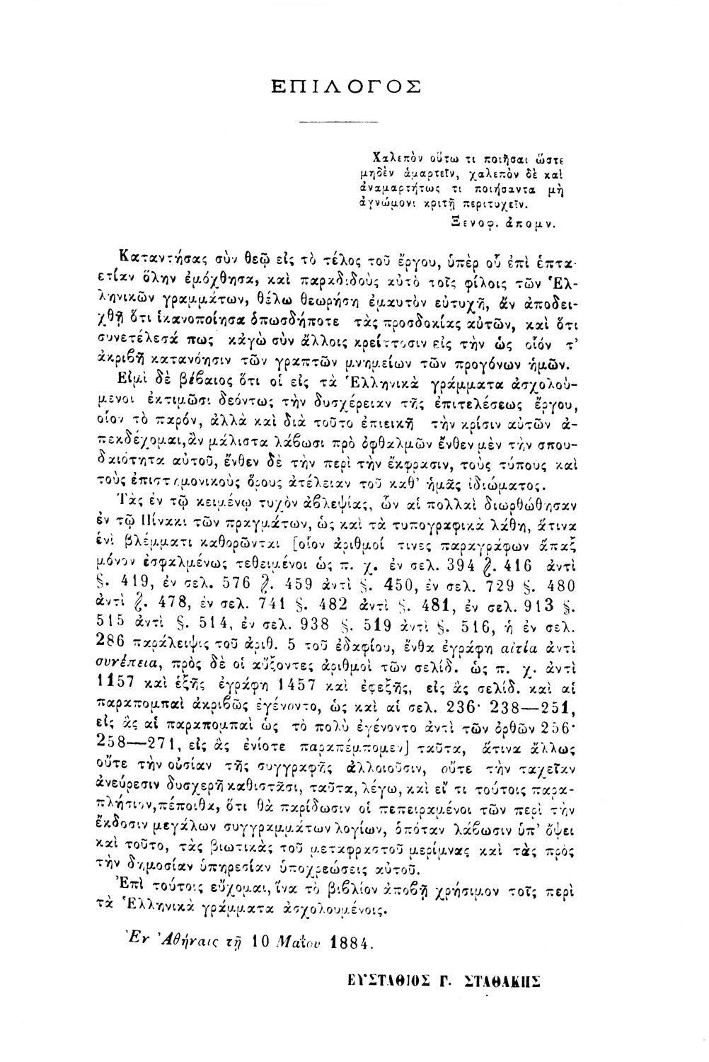 Σχολικό εγχειρίδιο Αρχαίων Ελληνικών για τα Ελληνικά Σχολεία και Γυμνάσια που περιλαμβάνει γραμματική της αρχαίας ελληνικής και είναι χωρισμένο σε φθογγολογικό, τυπολογικό και ετυμολογικό μέρος.