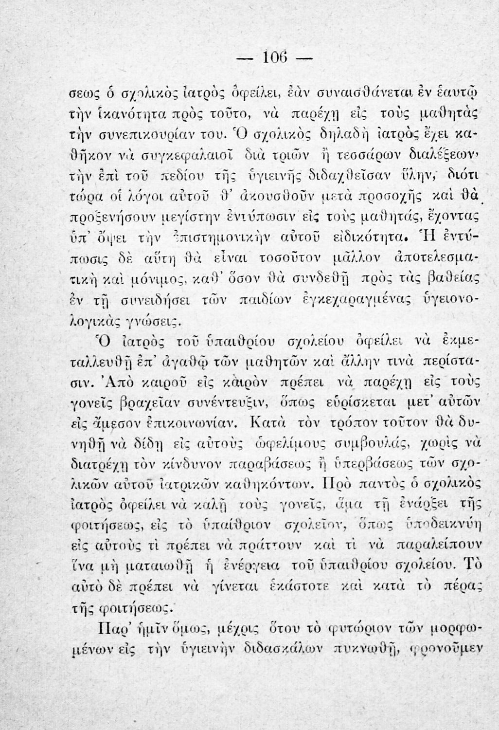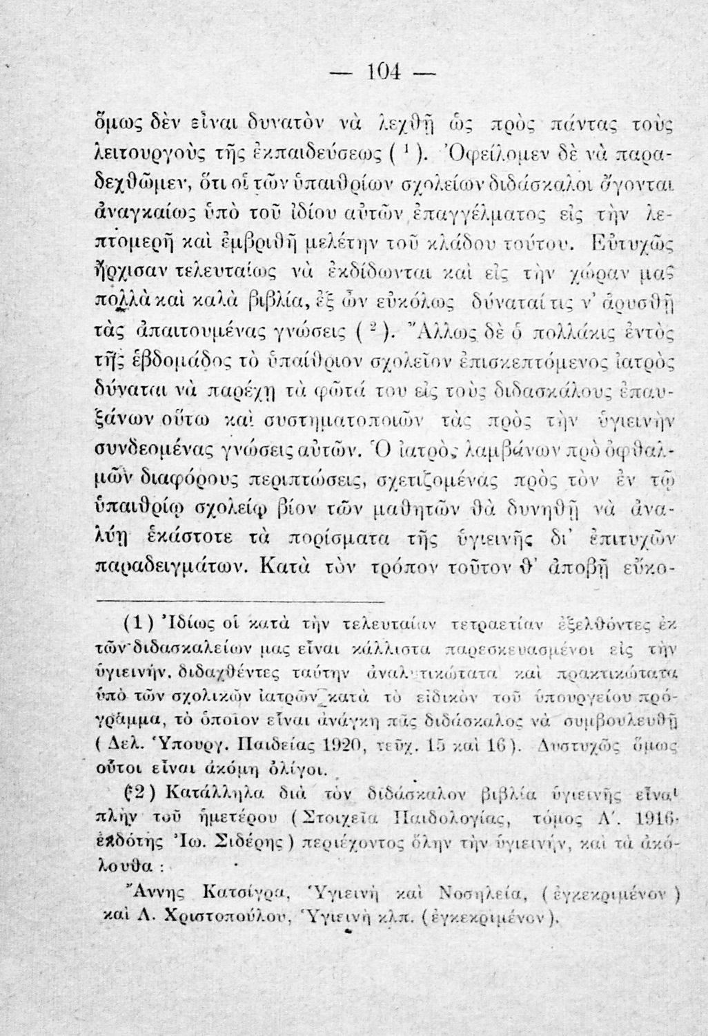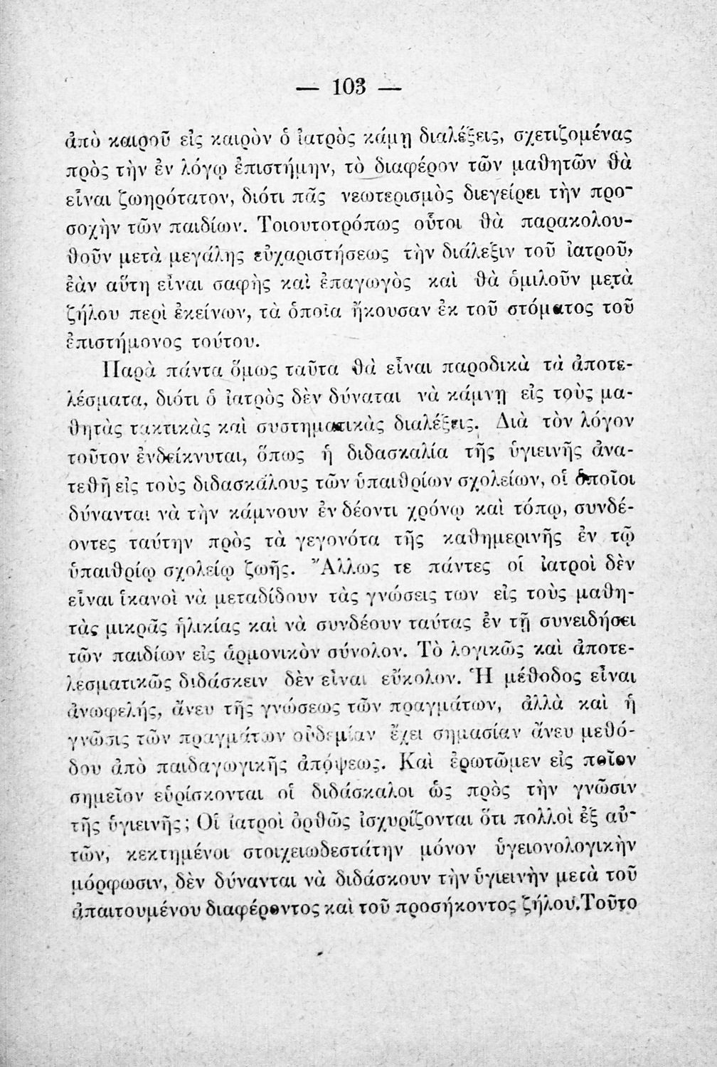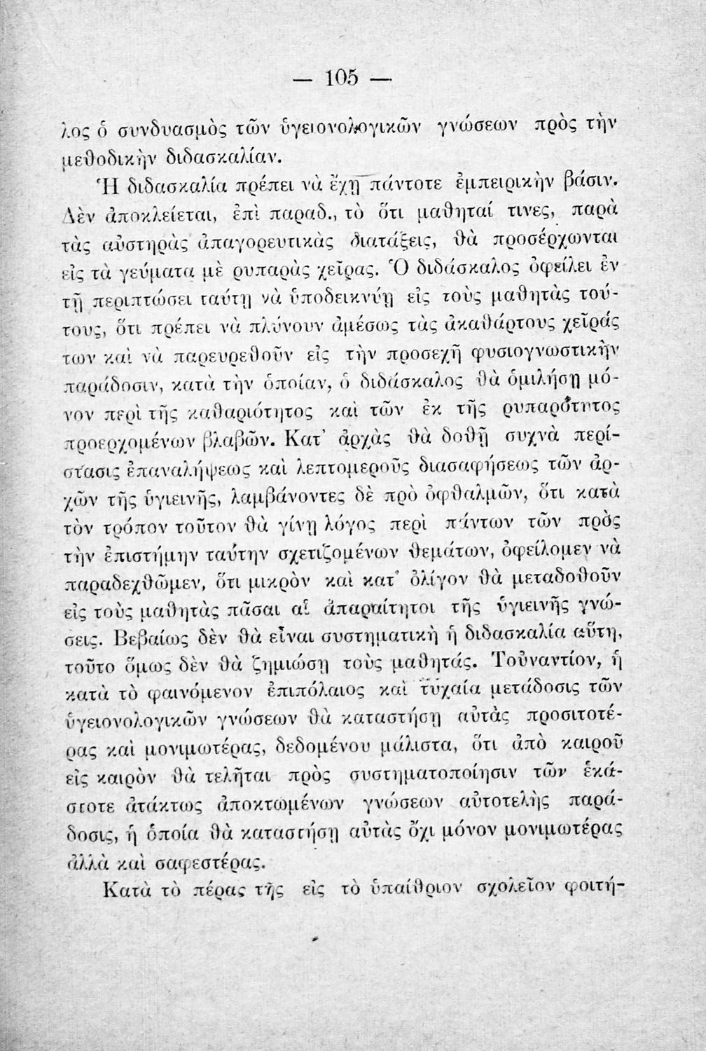 Παιδαγωγικό βοήθημα που βασίζεται στο «υγειονολογικό και παιδαγωγικό σύστημα της υπαίθριας διδασκαλίας σύμφωνα με τα τελευταία για την εποχή πορίσματα της παιδολογίας και σχολικής υγιεινής». Απευθύνεται σε Έλληνες Λειτουργούς της Εκπαίδευσης. Ο συγγραφέας ήταν γιατρός, τμηματάρχης της Σχολικής Υγιεινής.