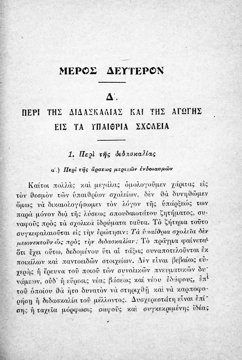 Παρουσίαση περιεχομένου: Παιδαγωγικό βοήθημα που βασίζεται στο «υγειονολογικό και παιδαγωγικό σύστημα της υπαίθριας διδασκαλίας σύμφωνα με τα τελευταία για την εποχή πορίσματα της παιδολογίας και σχολικής υγιεινής». Απευθύνεται σε Έλληνες Λειτουργούς της Εκπαίδευσης. Ο συγγραφέας ήταν γιατρός, τμηματάρχης της Σχολικής Υγιεινής.