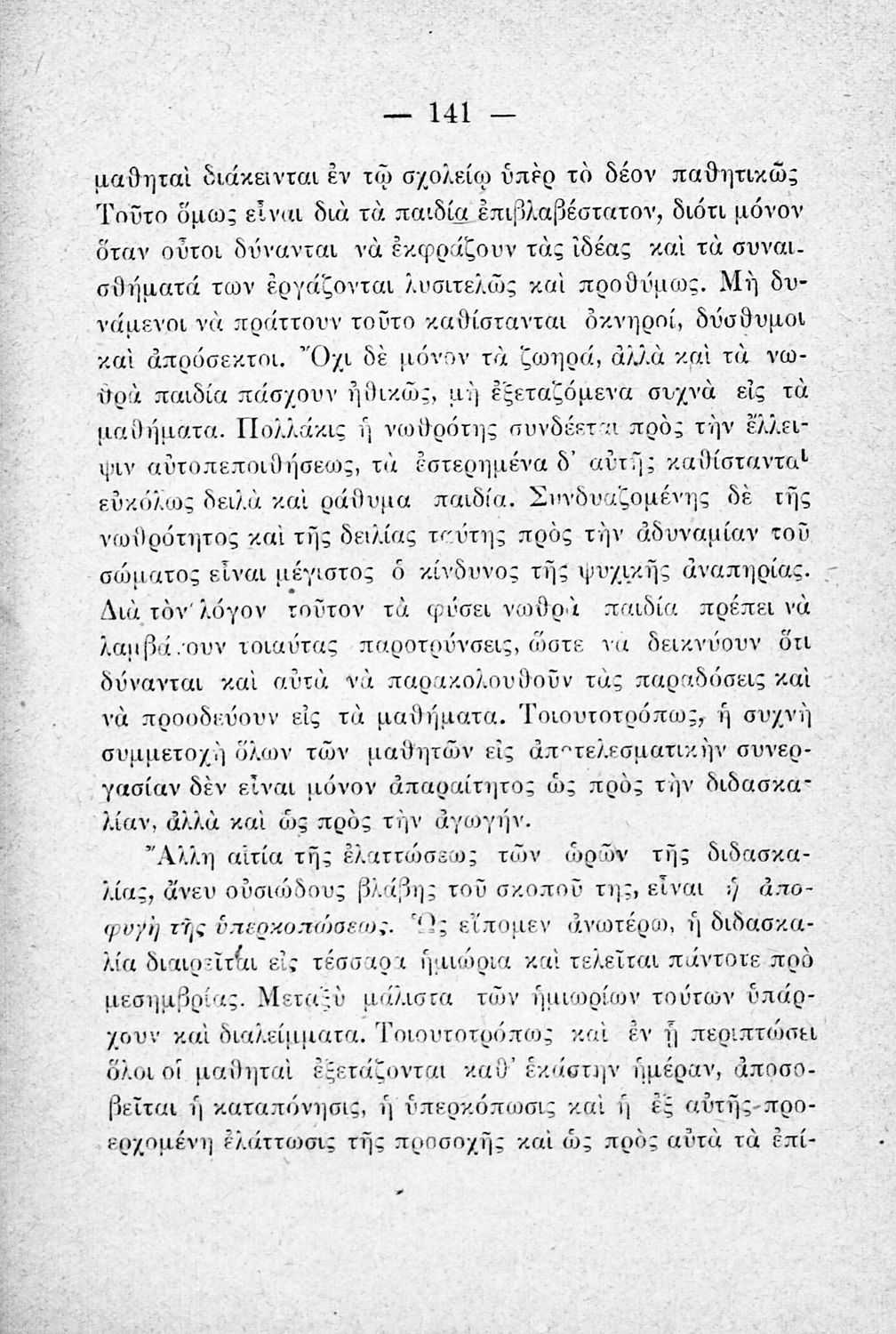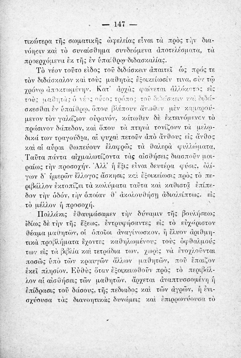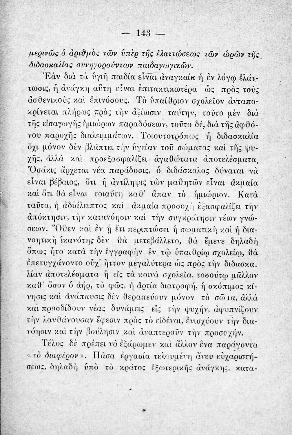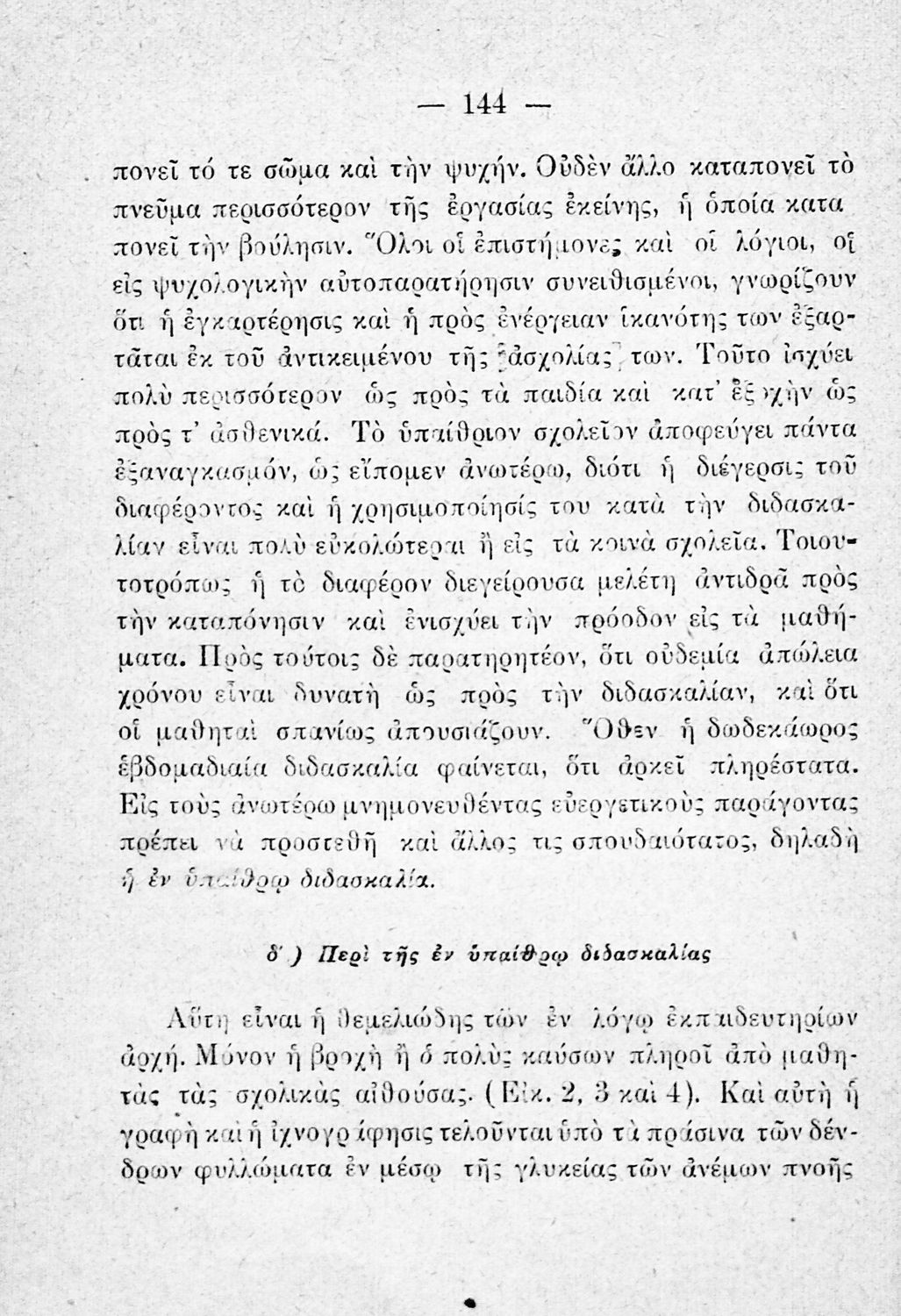 Παιδαγωγικό βοήθημα που βασίζεται στο «υγειονολογικό και παιδαγωγικό σύστημα της υπαίθριας διδασκαλίας σύμφωνα με τα τελευταία για την εποχή πορίσματα της παιδολογίας και σχολικής υγιεινής». Απευθύνεται σε Έλληνες Λειτουργούς της Εκπαίδευσης. Ο συγγραφέας ήταν γιατρός, τμηματάρχης της Σχολικής Υγιεινής.