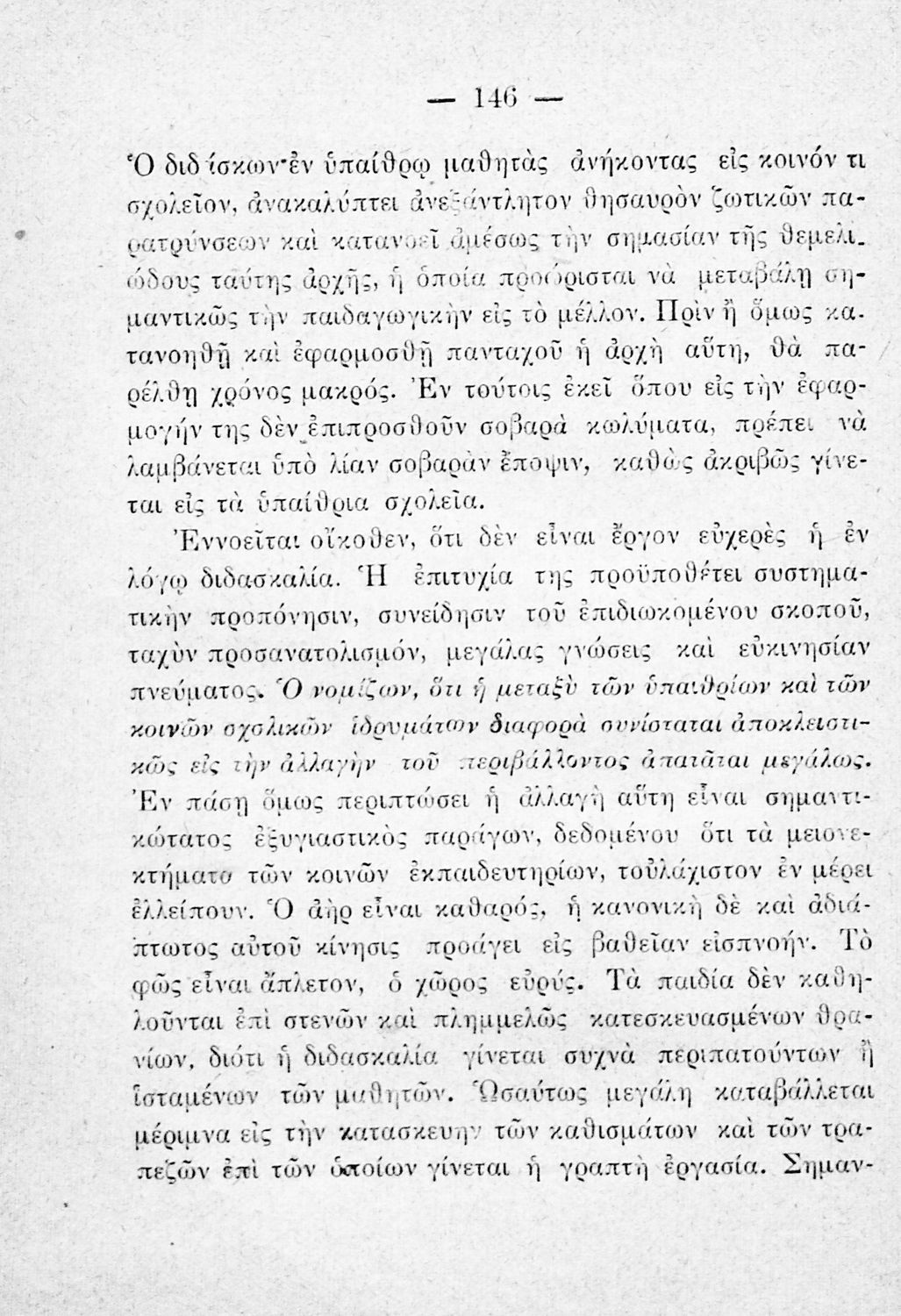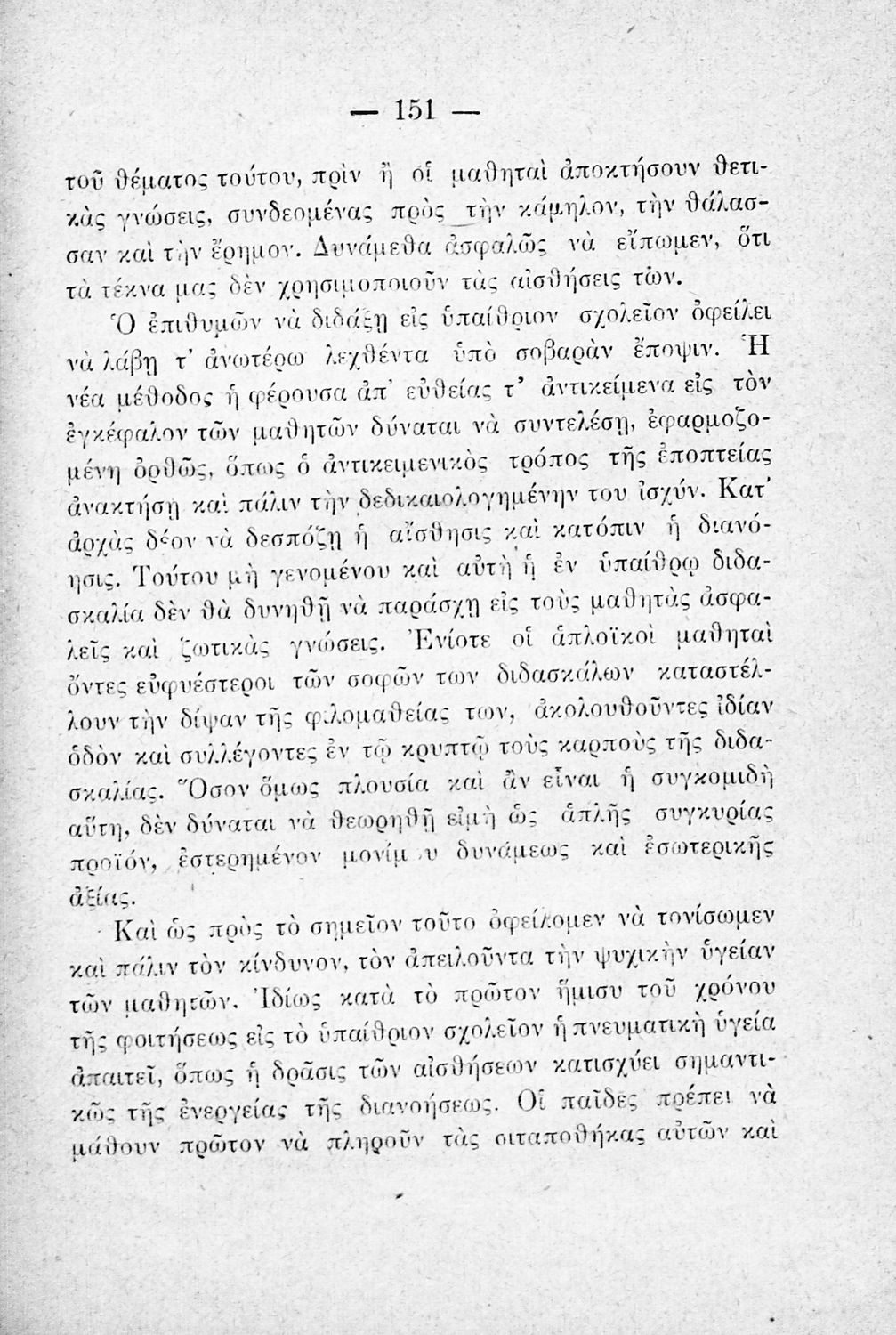 Παρουσίαση περιεχομένου: Παιδαγωγικό βοήθημα που βασίζεται στο «υγειονολογικό και παιδαγωγικό σύστημα της υπαίθριας διδασκαλίας σύμφωνα με τα τελευταία για την εποχή πορίσματα της παιδολογίας και σχολικής υγιεινής». Απευθύνεται σε Έλληνες Λειτουργούς της Εκπαίδευσης. Ο συγγραφέας ήταν γιατρός, τμηματάρχης της Σχολικής Υγιεινής.
