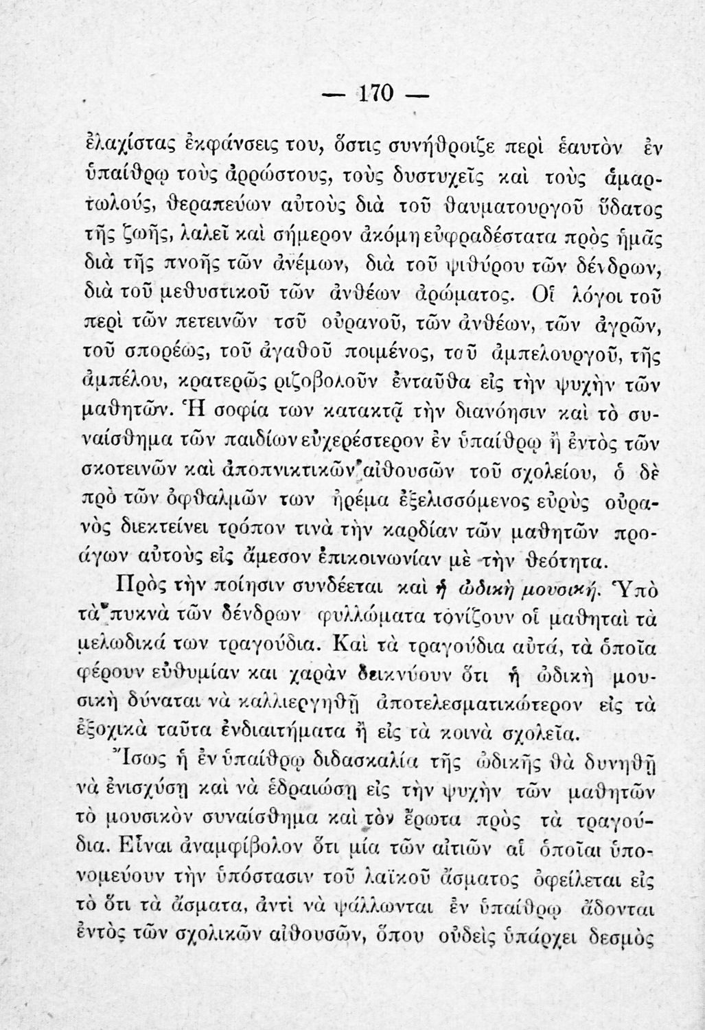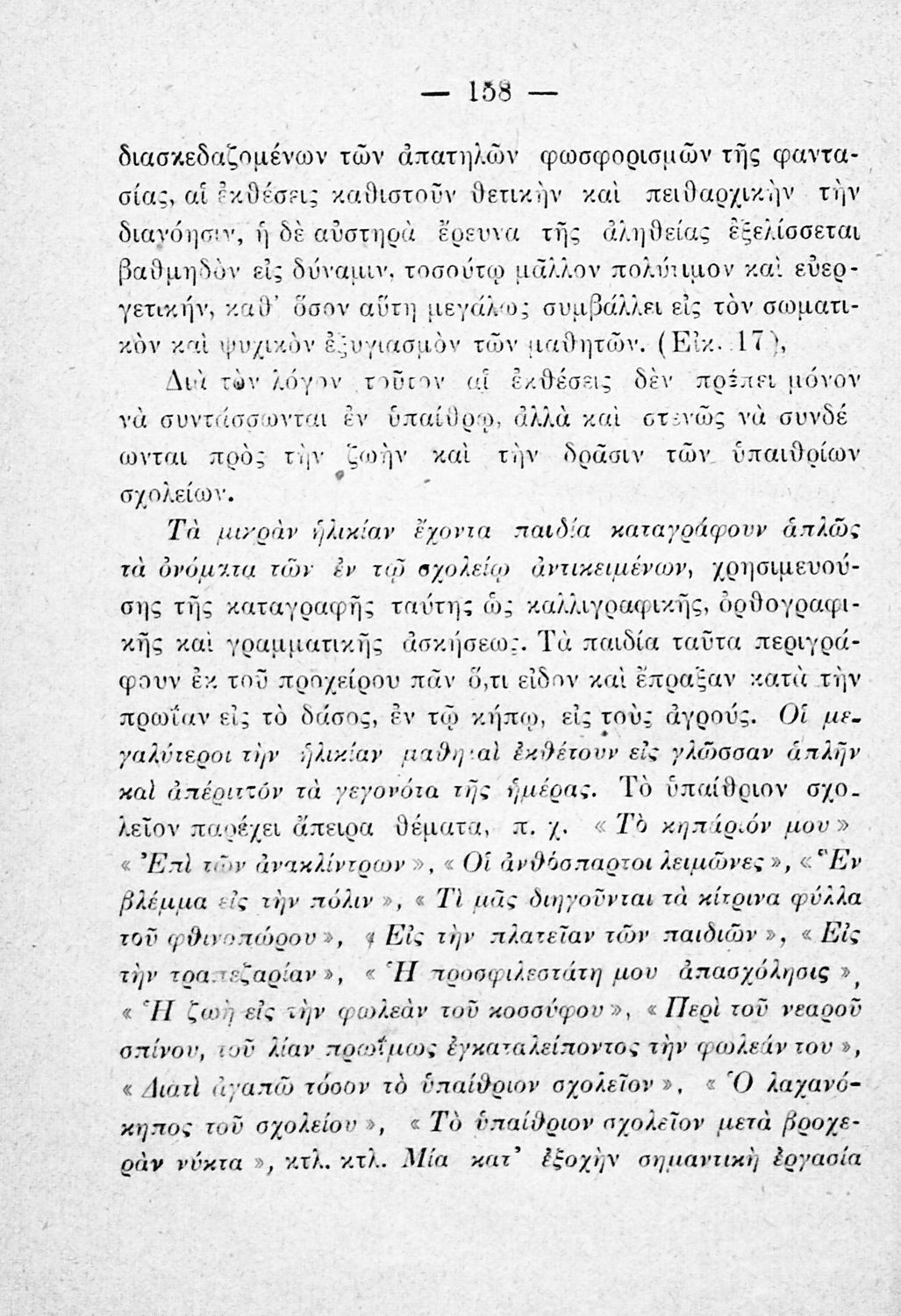 Παιδαγωγικό βοήθημα που βασίζεται στο «υγειονολογικό και παιδαγωγικό σύστημα της υπαίθριας διδασκαλίας σύμφωνα με τα τελευταία για την εποχή πορίσματα της παιδολογίας και σχολικής υγιεινής». Απευθύνεται σε Έλληνες Λειτουργούς της Εκπαίδευσης. Ο συγγραφέας ήταν γιατρός, τμηματάρχης της Σχολικής Υγιεινής.