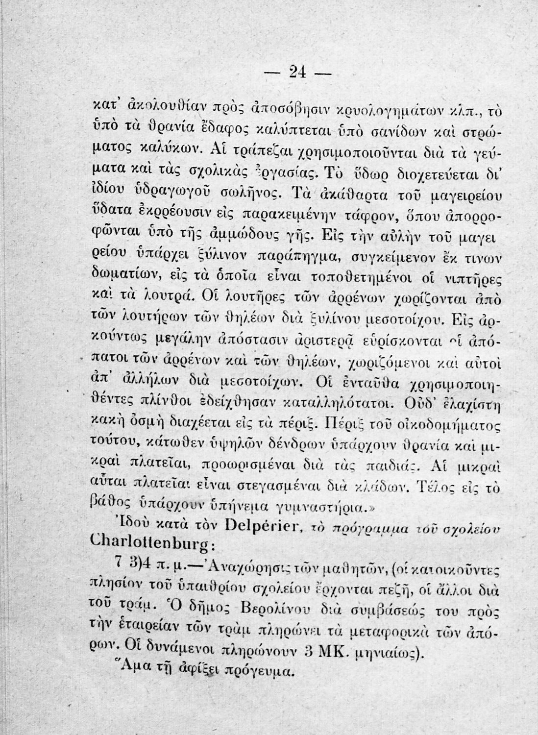 Παιδαγωγικό βοήθημα που βασίζεται στο «υγειονολογικό και παιδαγωγικό σύστημα της υπαίθριας διδασκαλίας σύμφωνα με τα τελευταία για την εποχή πορίσματα της παιδολογίας και σχολικής υγιεινής». Απευθύνεται σε Έλληνες Λειτουργούς της Εκπαίδευσης. Ο συγγραφέας ήταν γιατρός, τμηματάρχης της Σχολικής Υγιεινής.