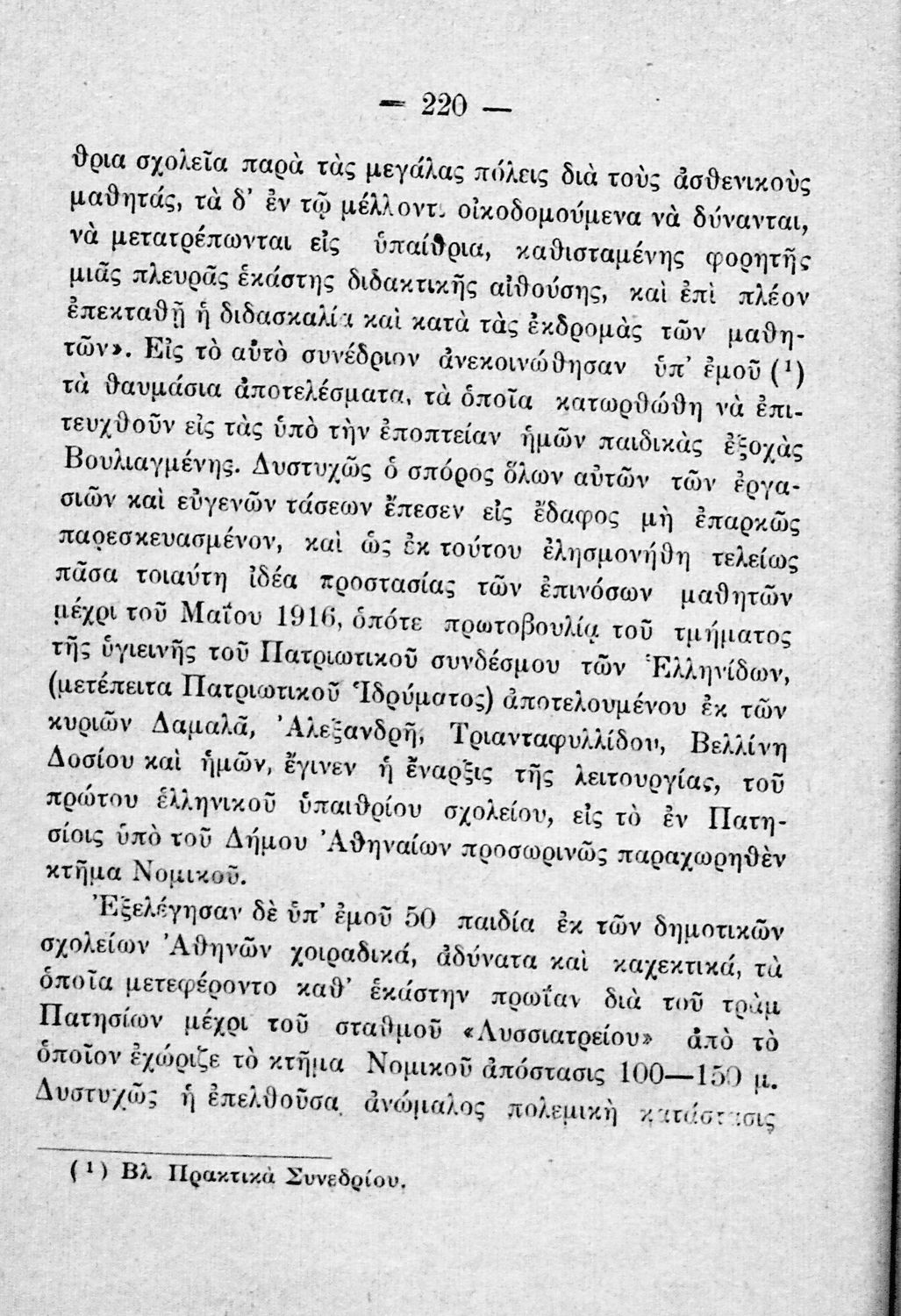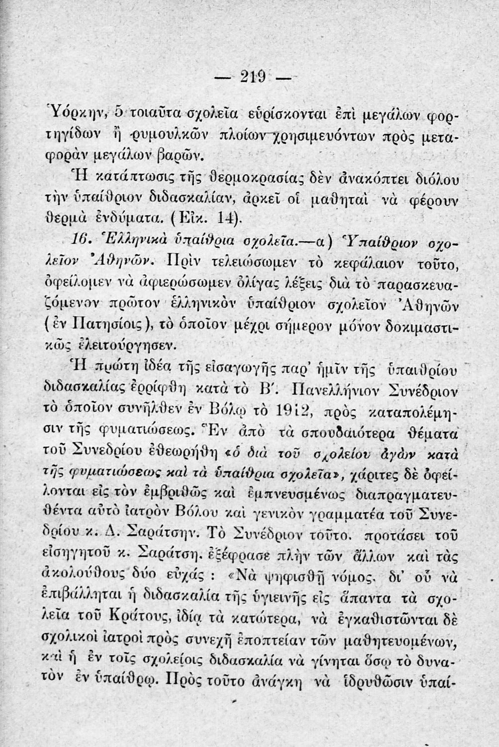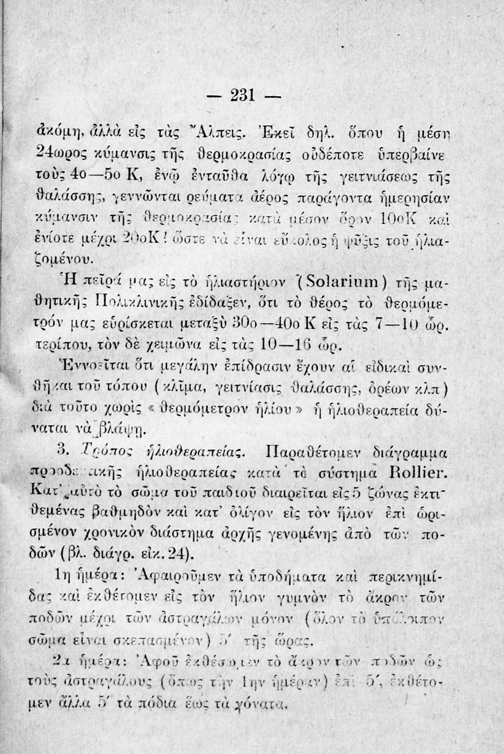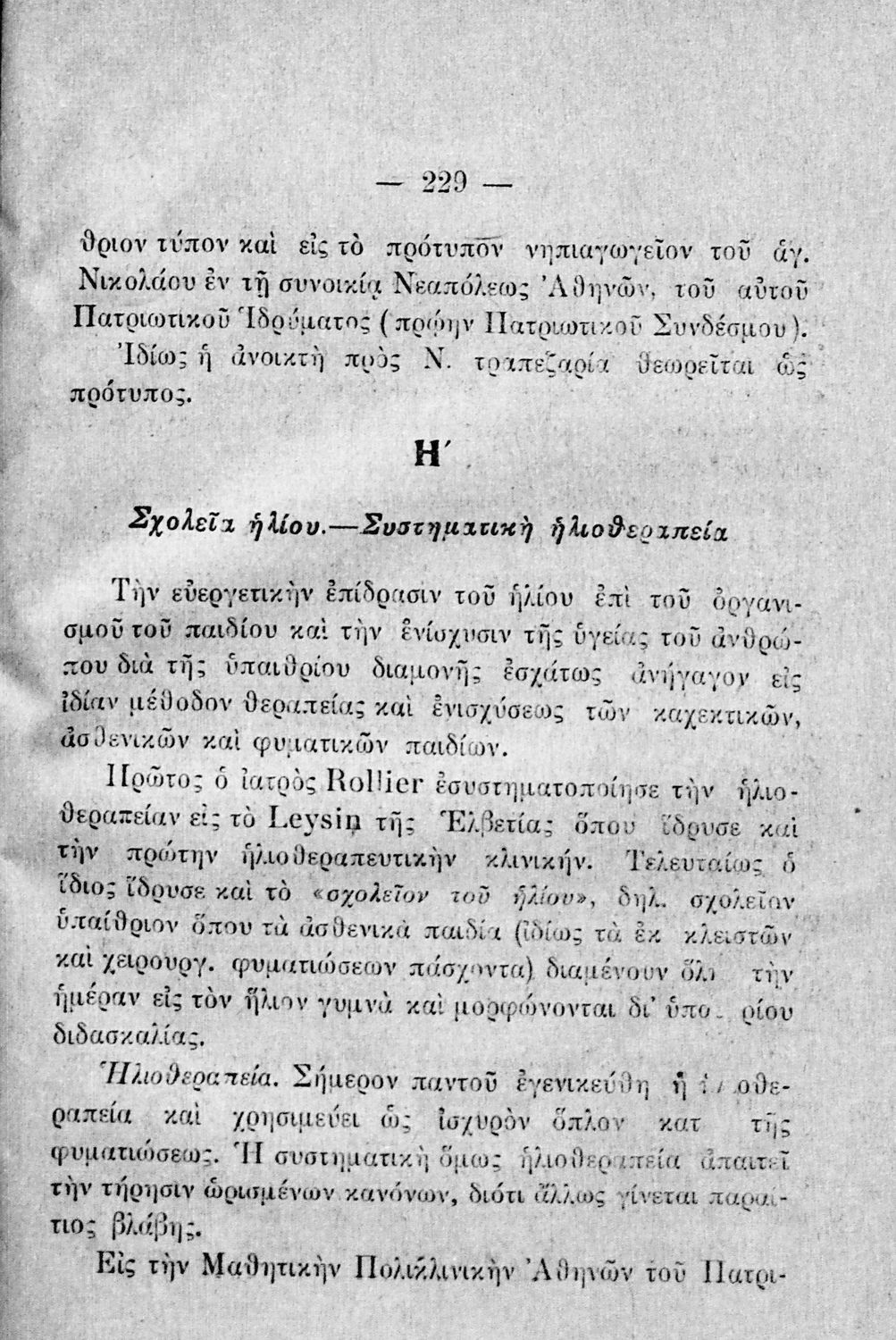 Παιδαγωγικό βοήθημα που βασίζεται στο «υγειονολογικό και παιδαγωγικό σύστημα της υπαίθριας διδασκαλίας σύμφωνα με τα τελευταία για την εποχή πορίσματα της παιδολογίας και σχολικής υγιεινής». Απευθύνεται σε Έλληνες Λειτουργούς της Εκπαίδευσης. Ο συγγραφέας ήταν γιατρός, τμηματάρχης της Σχολικής Υγιεινής.