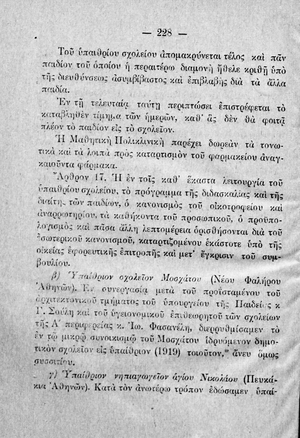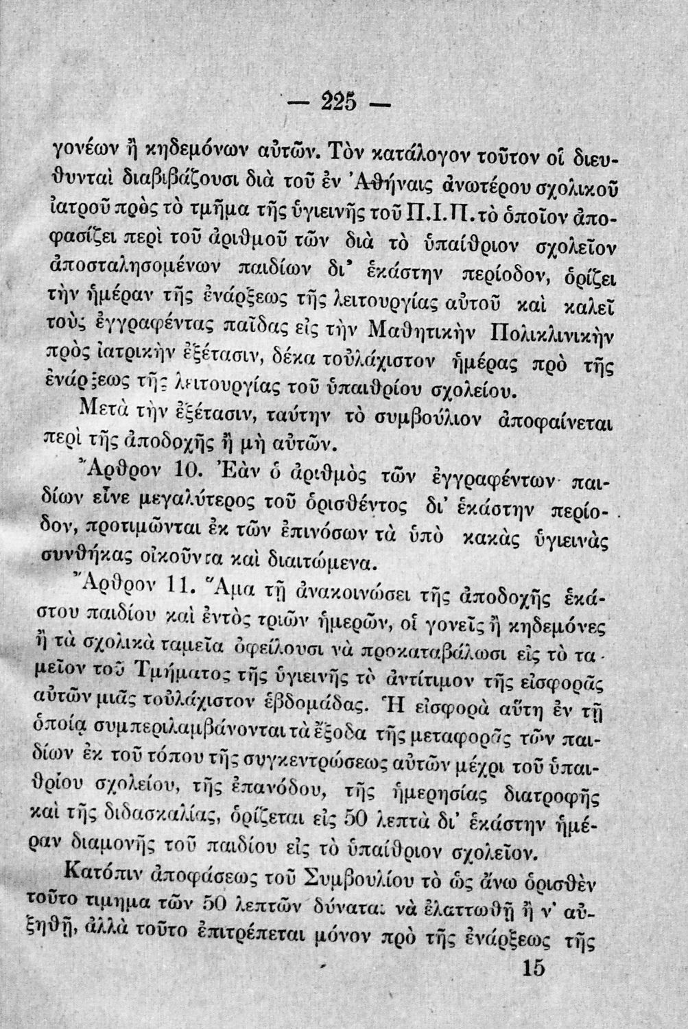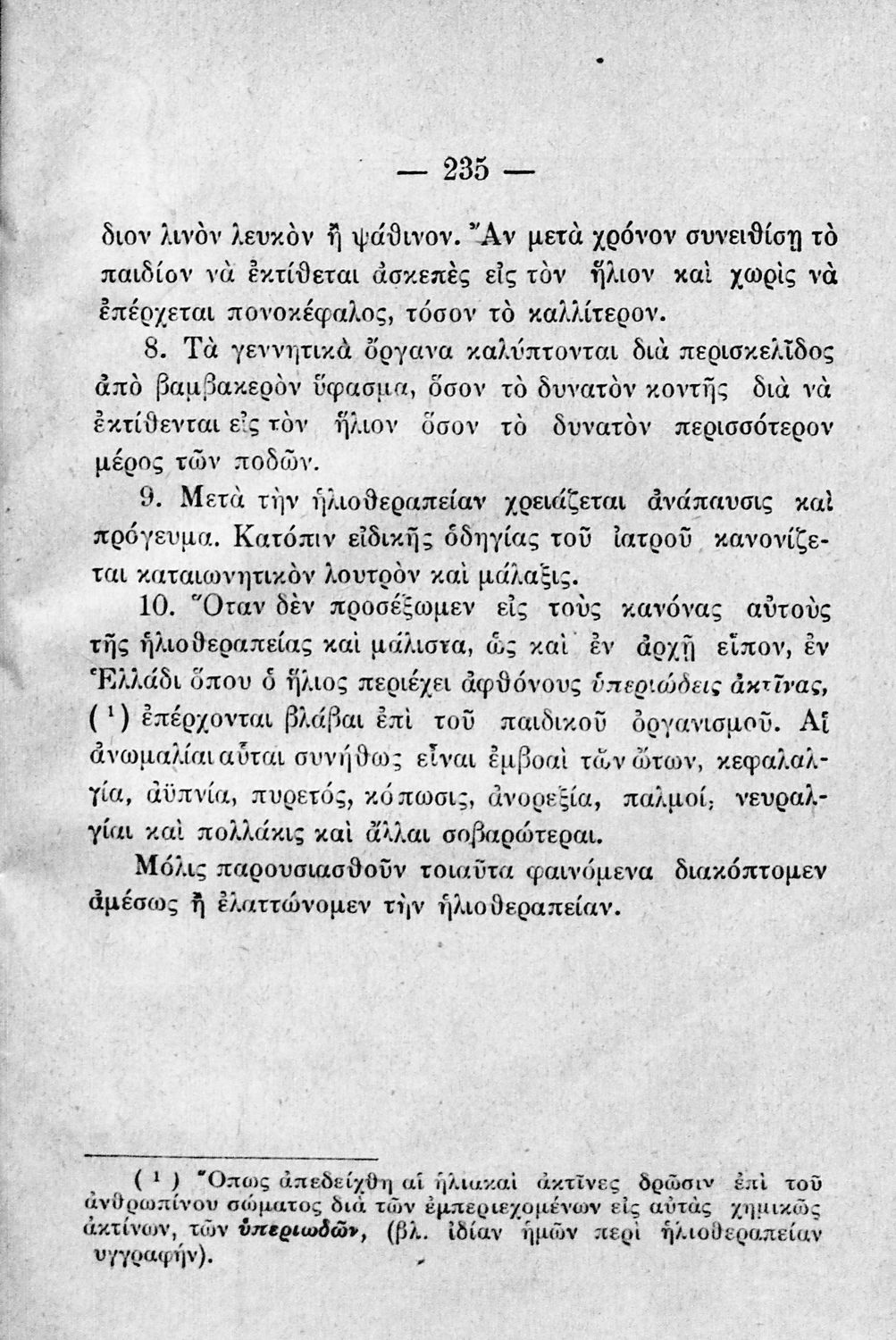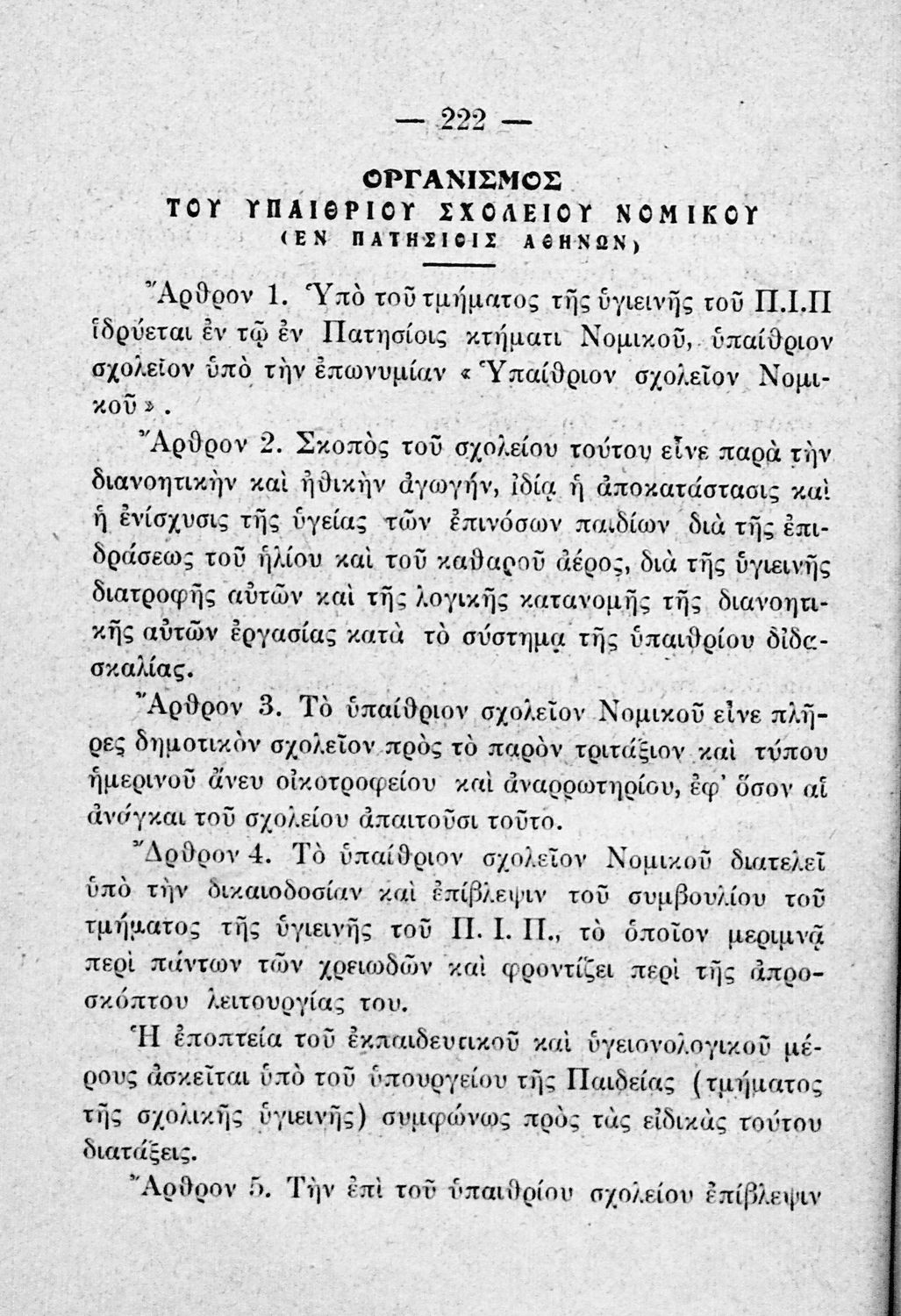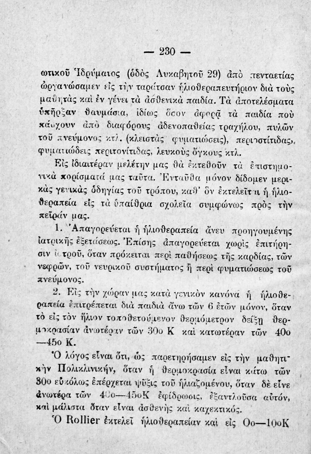 Παιδαγωγικό βοήθημα που βασίζεται στο «υγειονολογικό και παιδαγωγικό σύστημα της υπαίθριας διδασκαλίας σύμφωνα με τα τελευταία για την εποχή πορίσματα της παιδολογίας και σχολικής υγιεινής». Απευθύνεται σε Έλληνες Λειτουργούς της Εκπαίδευσης. Ο συγγραφέας ήταν γιατρός, τμηματάρχης της Σχολικής Υγιεινής.