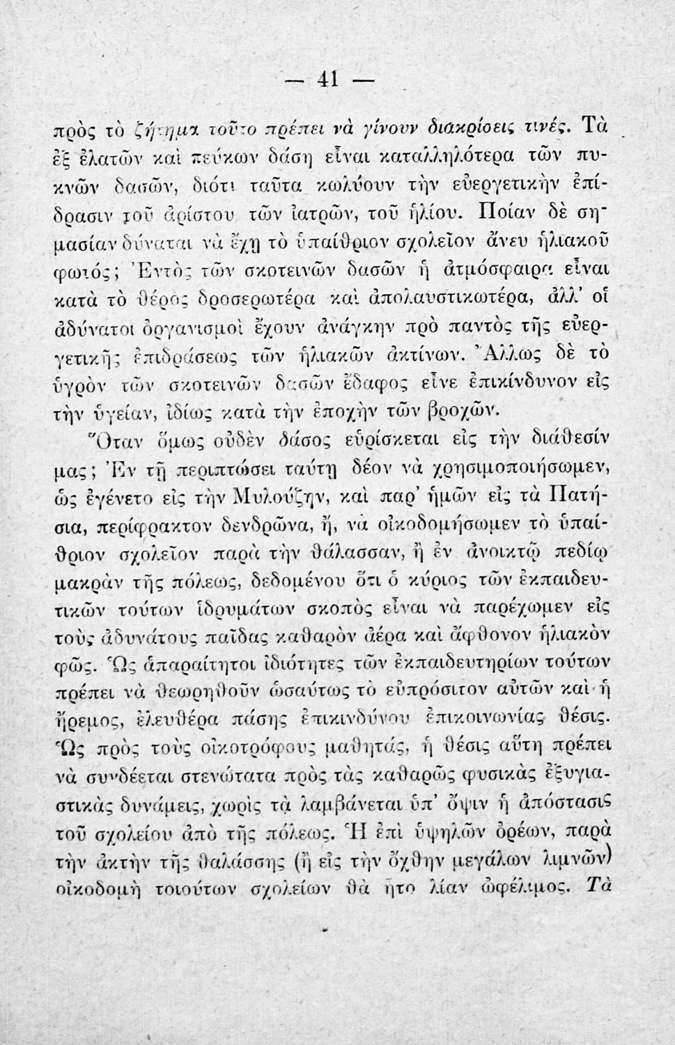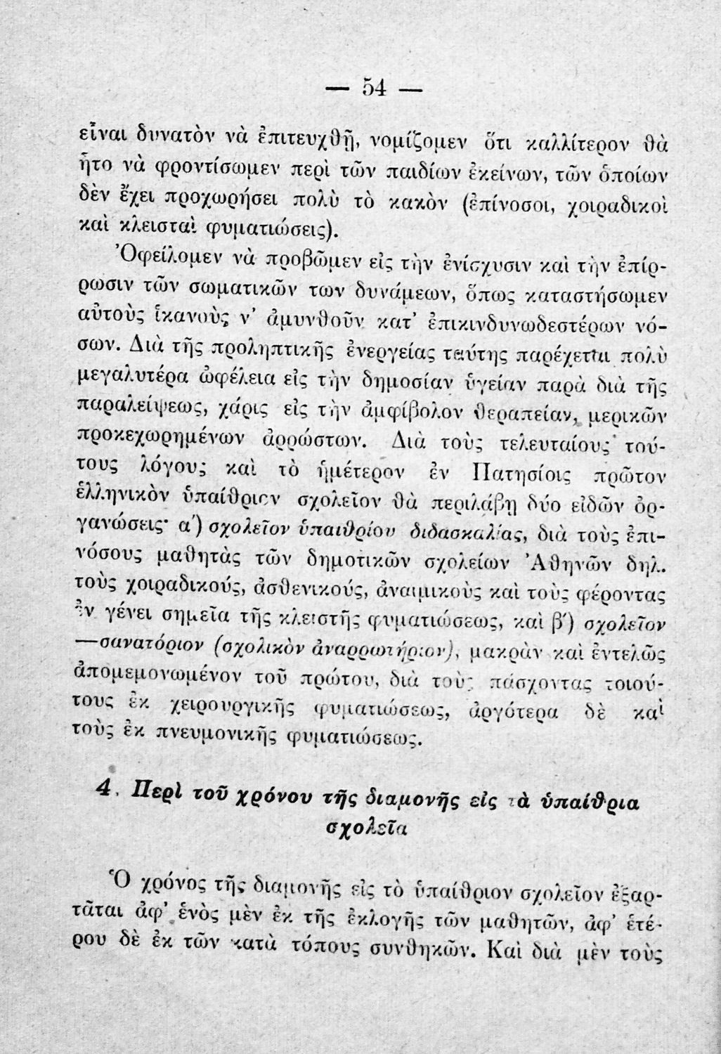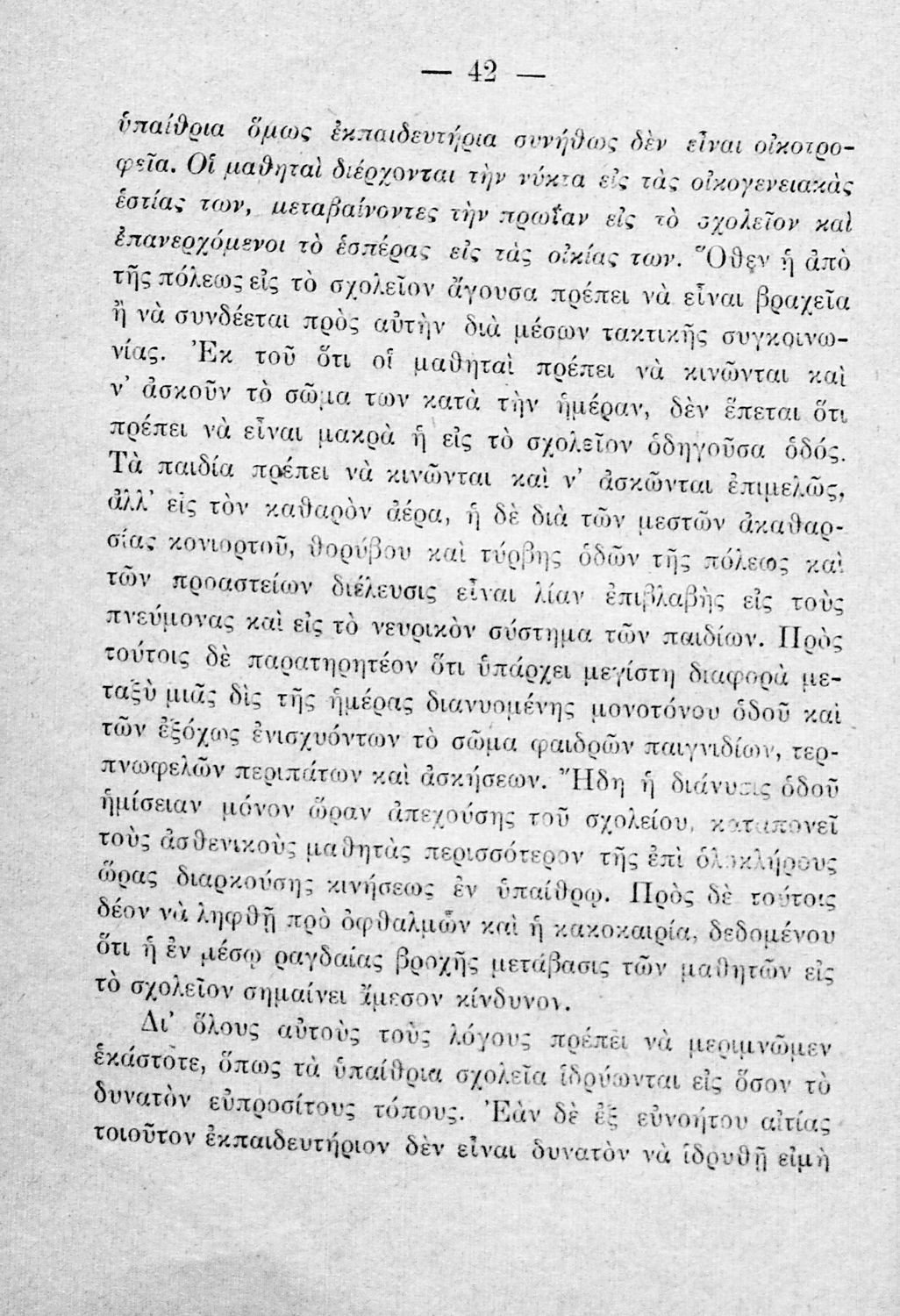 Παιδαγωγικό βοήθημα που βασίζεται στο «υγειονολογικό και παιδαγωγικό σύστημα της υπαίθριας διδασκαλίας σύμφωνα με τα τελευταία για την εποχή πορίσματα της παιδολογίας και σχολικής υγιεινής». Απευθύνεται σε Έλληνες Λειτουργούς της Εκπαίδευσης. Ο συγγραφέας ήταν γιατρός, τμηματάρχης της Σχολικής Υγιεινής.