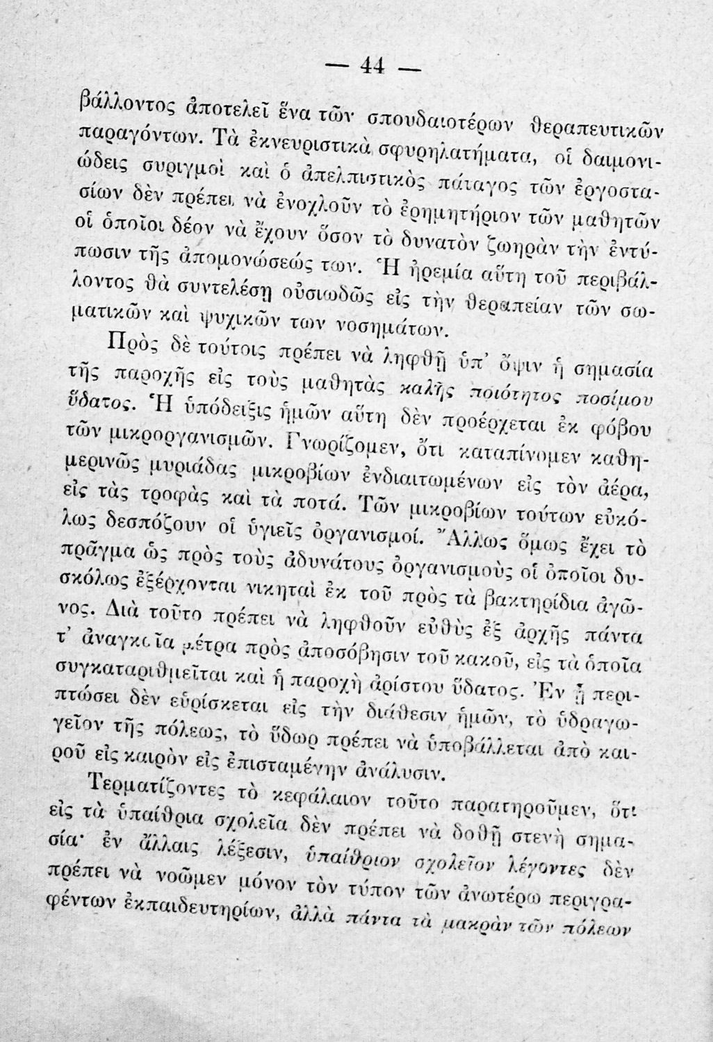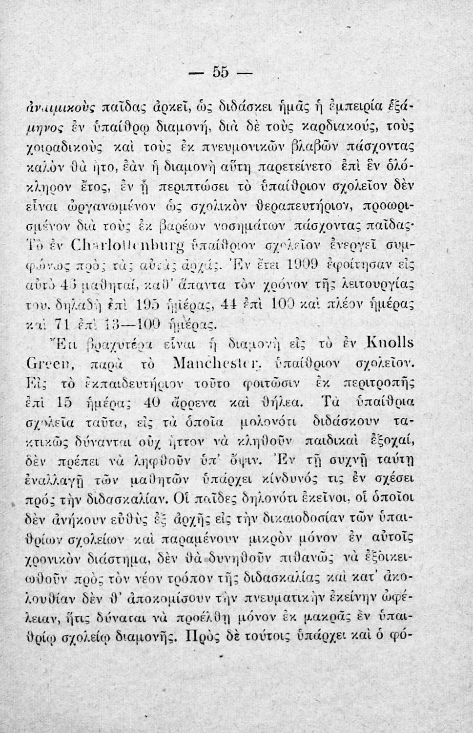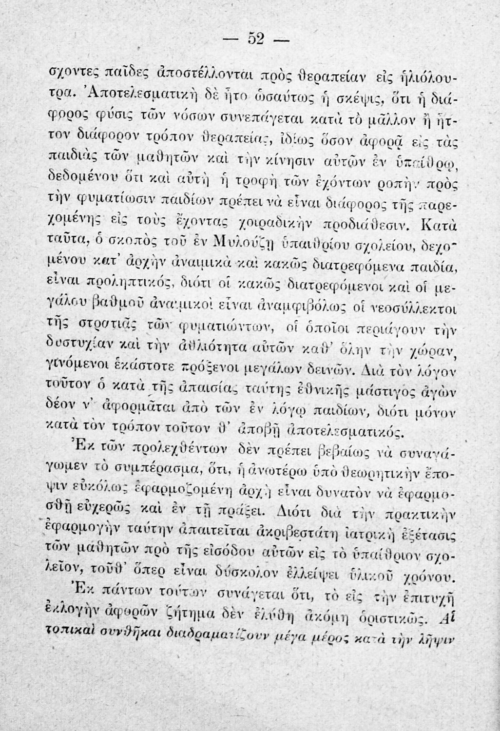 Παρουσίαση περιεχομένου: Παιδαγωγικό βοήθημα που βασίζεται στο «υγειονολογικό και παιδαγωγικό σύστημα της υπαίθριας διδασκαλίας σύμφωνα με τα τελευταία για την εποχή πορίσματα της παιδολογίας και σχολικής υγιεινής». Απευθύνεται σε Έλληνες Λειτουργούς της Εκπαίδευσης. Ο συγγραφέας ήταν γιατρός, τμηματάρχης της Σχολικής Υγιεινής.