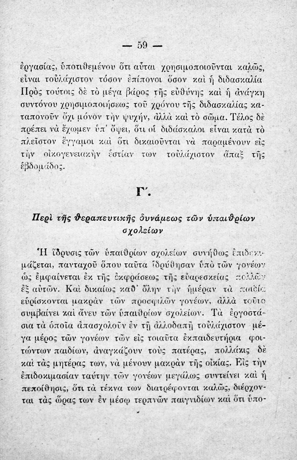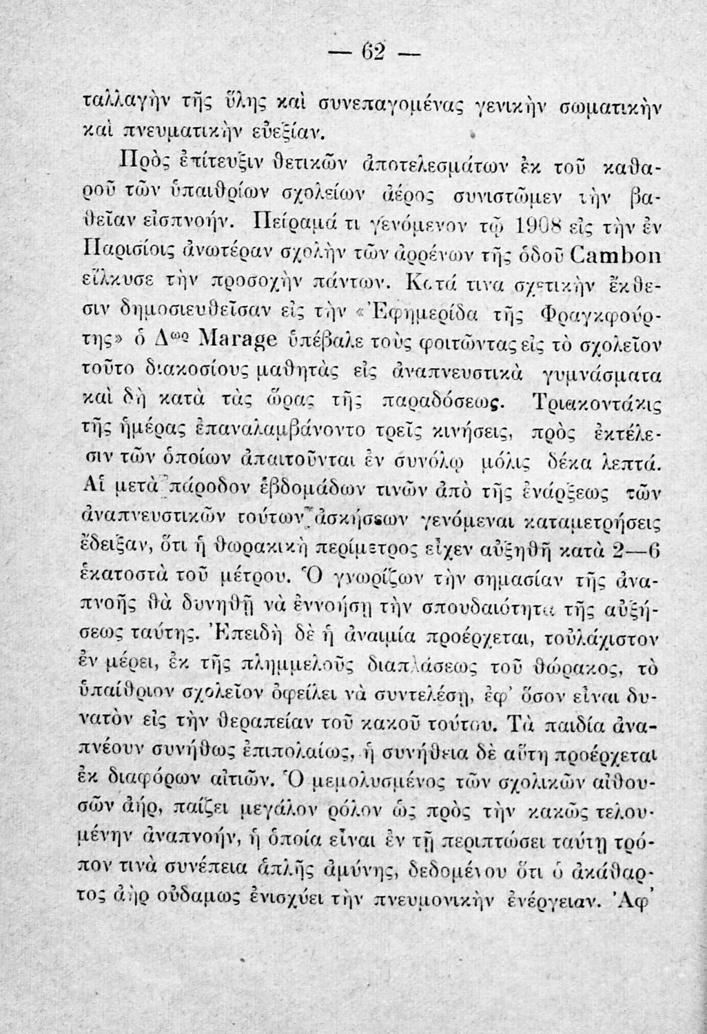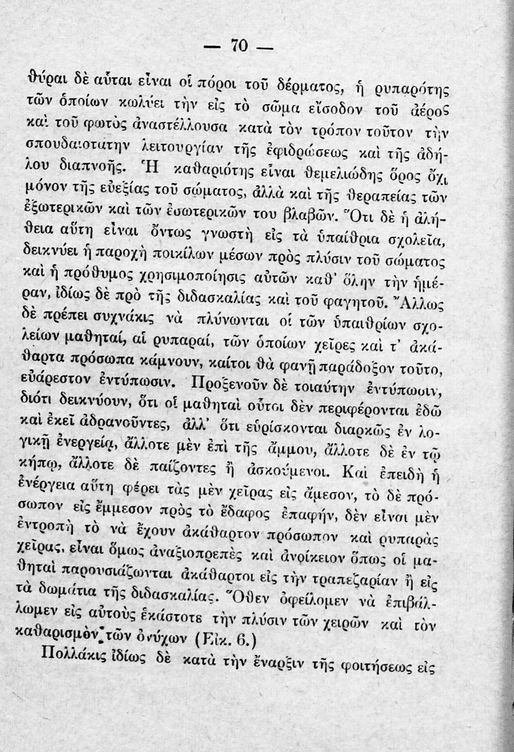 Παιδαγωγικό βοήθημα που βασίζεται στο «υγειονολογικό και παιδαγωγικό σύστημα της υπαίθριας διδασκαλίας σύμφωνα με τα τελευταία για την εποχή πορίσματα της παιδολογίας και σχολικής υγιεινής». Απευθύνεται σε Έλληνες Λειτουργούς της Εκπαίδευσης. Ο συγγραφέας ήταν γιατρός, τμηματάρχης της Σχολικής Υγιεινής.