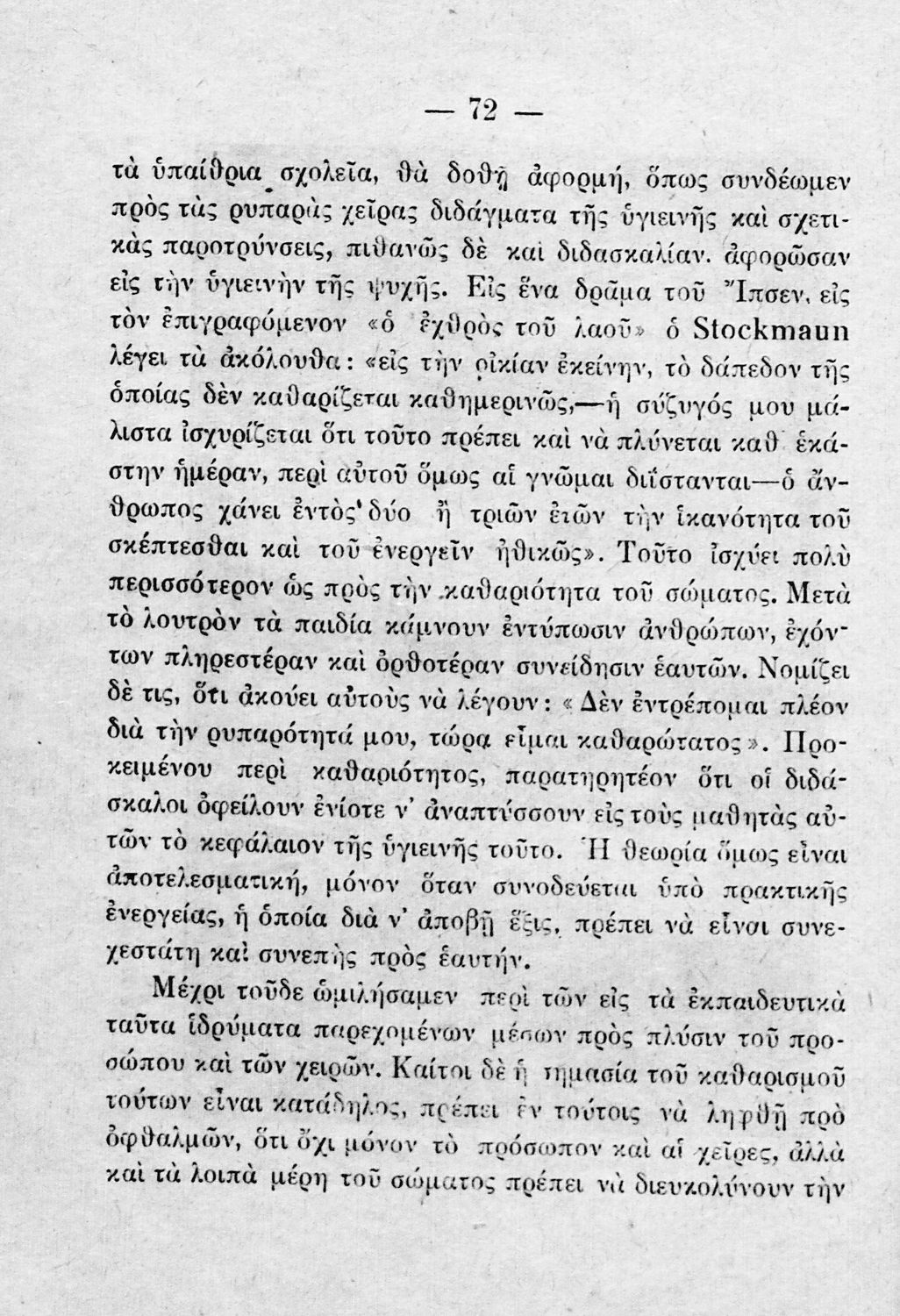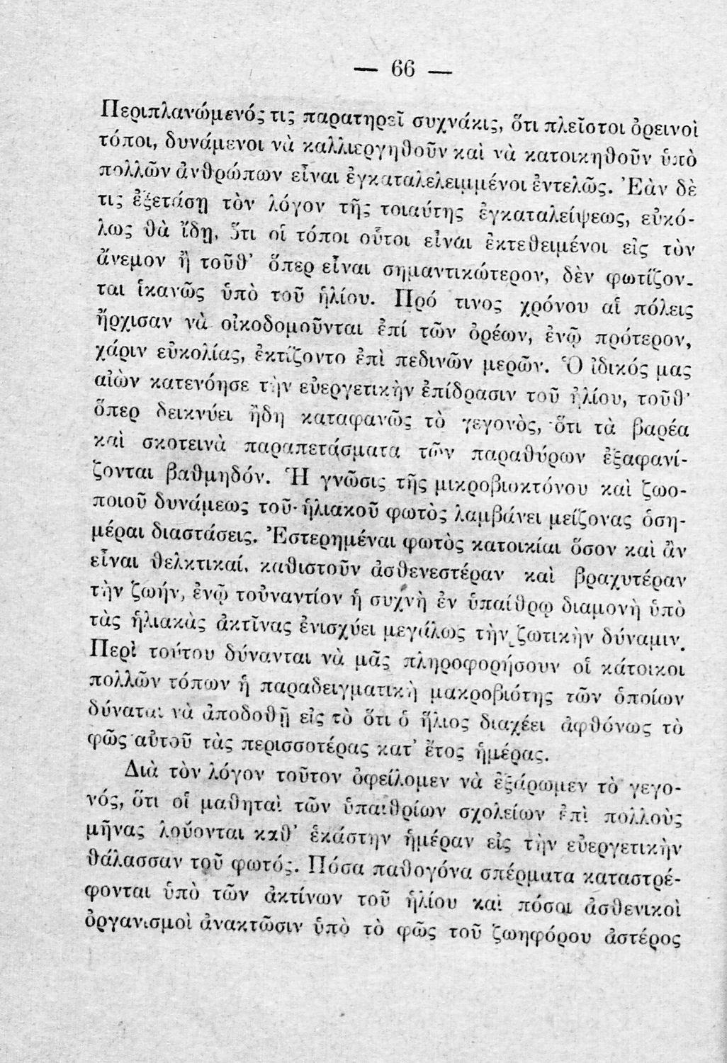 Βαθμίδα εκπαίδευσης: Δευτεροβάθμια Γλώσσα: Καθαρεύουσα Παρουσίαση περιεχομένου: Παιδαγωγικό βοήθημα που βασίζεται στο «υγειονολογικό και παιδαγωγικό σύστημα της υπαίθριας διδασκαλίας σύμφωνα με τα τελευταία για την εποχή πορίσματα της παιδολογίας και σχολικής υγιεινής». Απευθύνεται σε Έλληνες Λειτουργούς της Εκπαίδευσης. Ο συγγραφέας ήταν γιατρός, τμηματάρχης της Σχολικής Υγιεινής. |