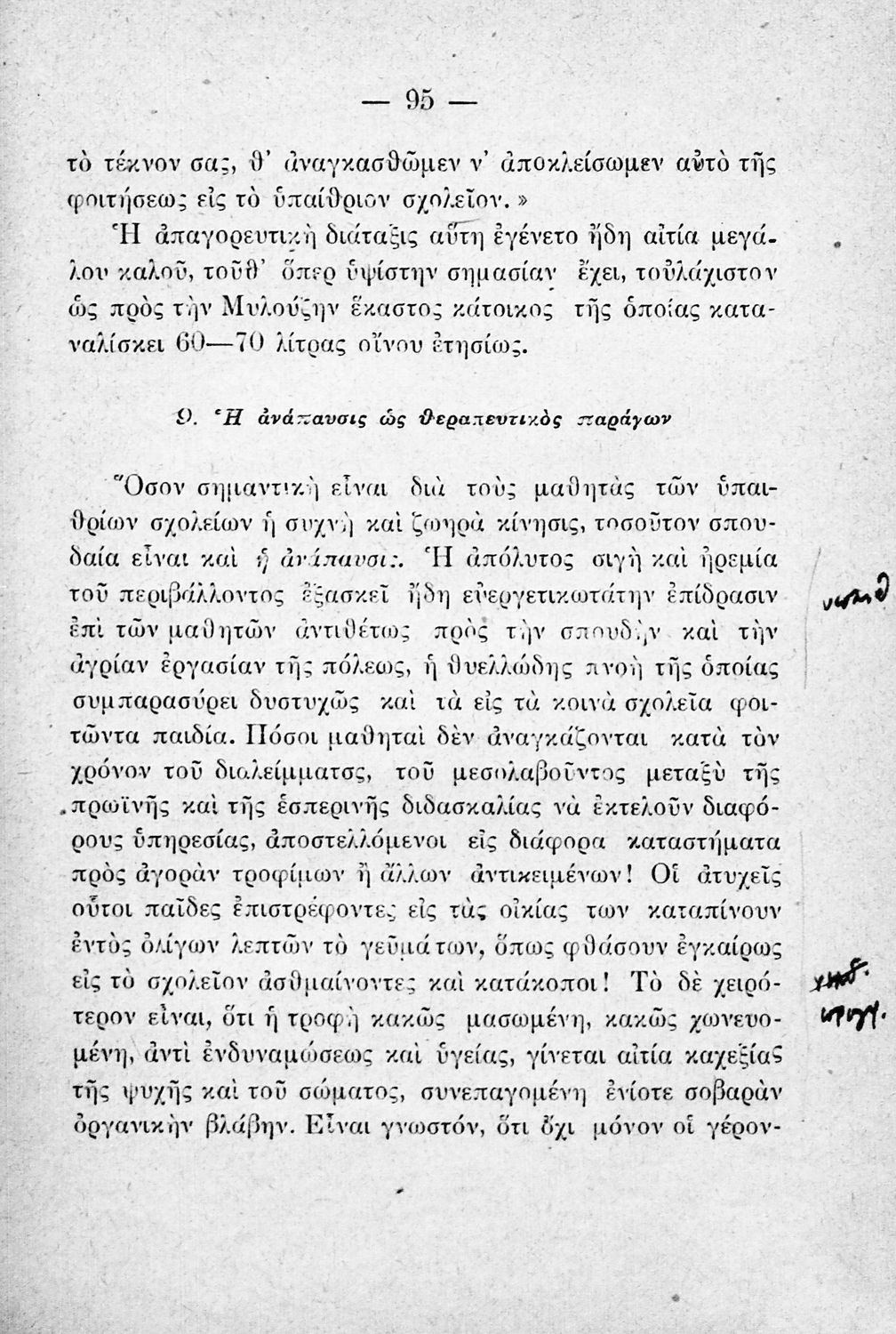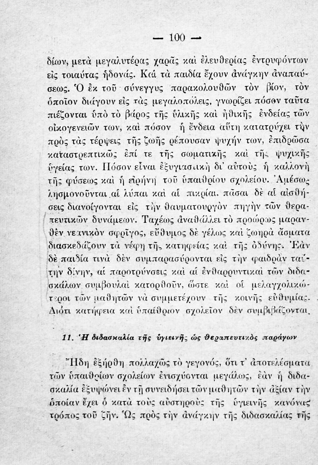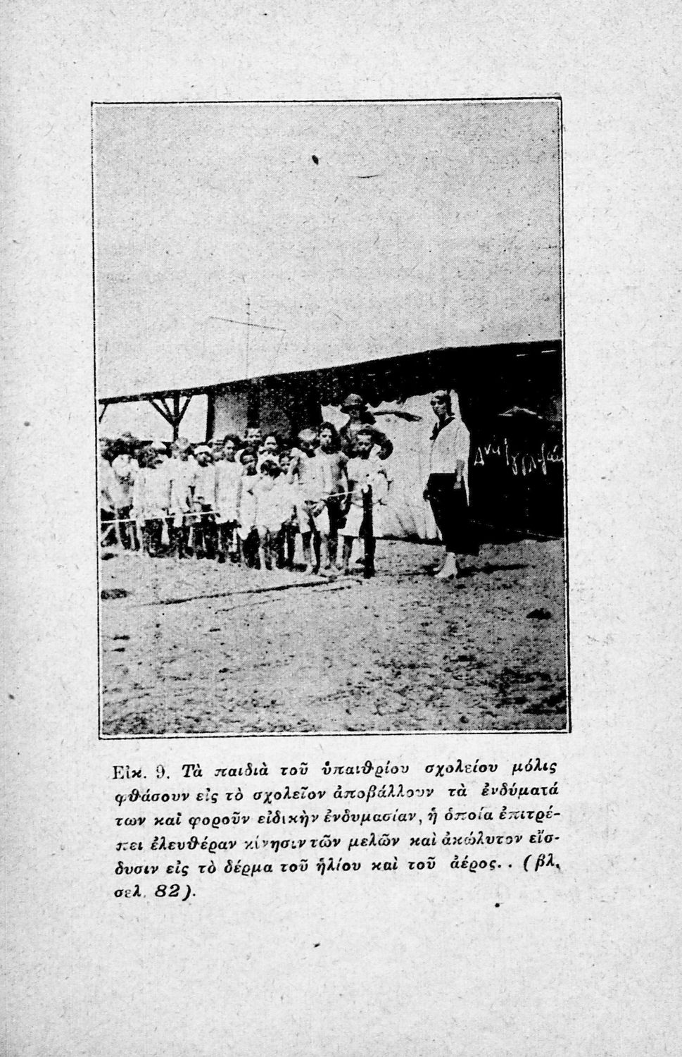 Παιδαγωγικό βοήθημα που βασίζεται στο «υγειονολογικό και παιδαγωγικό σύστημα της υπαίθριας διδασκαλίας σύμφωνα με τα τελευταία για την εποχή πορίσματα της παιδολογίας και σχολικής υγιεινής». Απευθύνεται σε Έλληνες Λειτουργούς της Εκπαίδευσης. Ο συγγραφέας ήταν γιατρός, τμηματάρχης της Σχολικής Υγιεινής.
