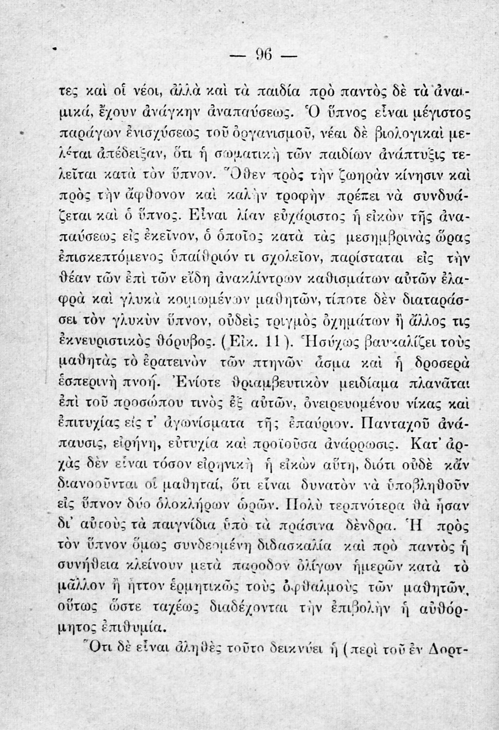 Παρουσίαση περιεχομένου: Παιδαγωγικό βοήθημα που βασίζεται στο «υγειονολογικό και παιδαγωγικό σύστημα της υπαίθριας διδασκαλίας σύμφωνα με τα τελευταία για την εποχή πορίσματα της παιδολογίας και σχολικής υγιεινής». Απευθύνεται σε Έλληνες Λειτουργούς της Εκπαίδευσης. Ο συγγραφέας ήταν γιατρός, τμηματάρχης της Σχολικής Υγιεινής.