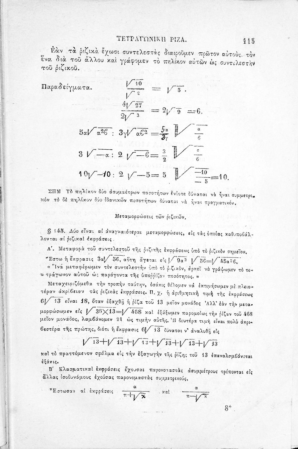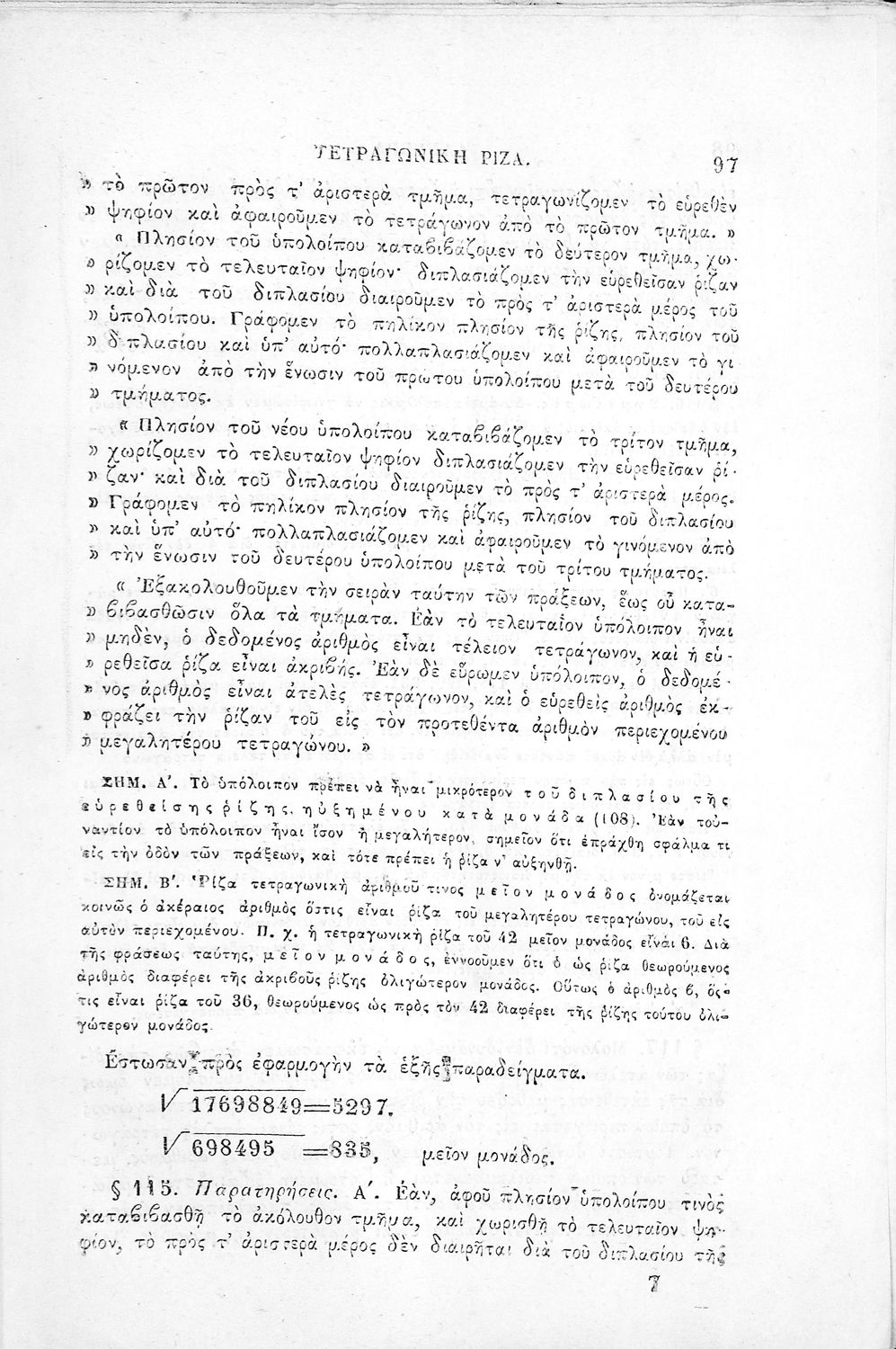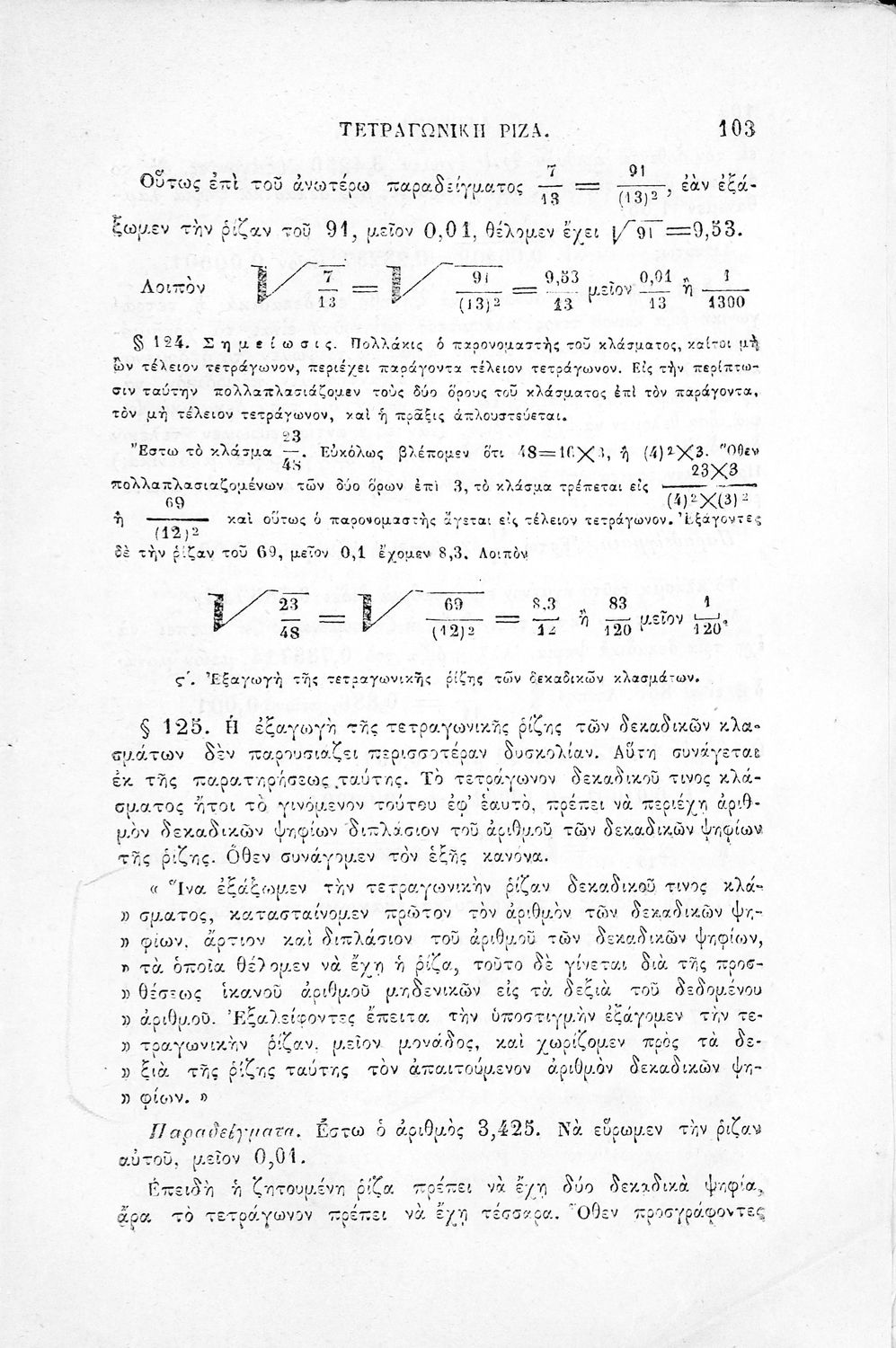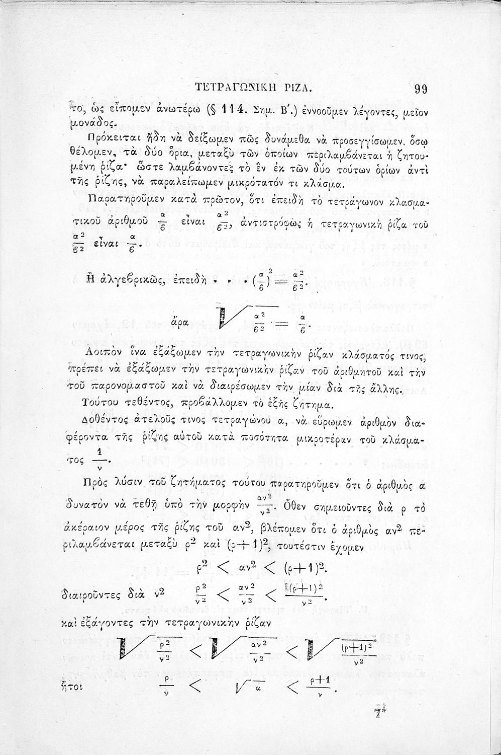 Σχολικό εγχειρίδιο Άλγεβρας Γυμνασίου που περιέχει θεωρία και ασκήσεις. Ο συγγραφέας ήταν υφηγητής στο Εθνικό Πανεπιστήμιο.