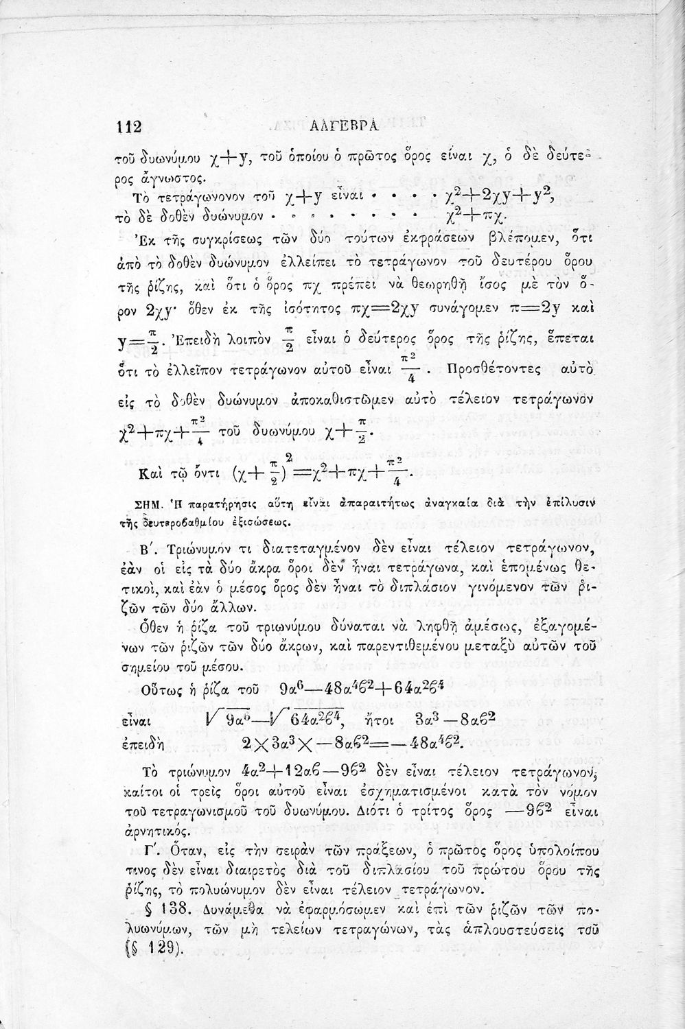 Τίτλος: Στοιχειώδης άλγεβρα προς χρήσιν των Γυμνασίων