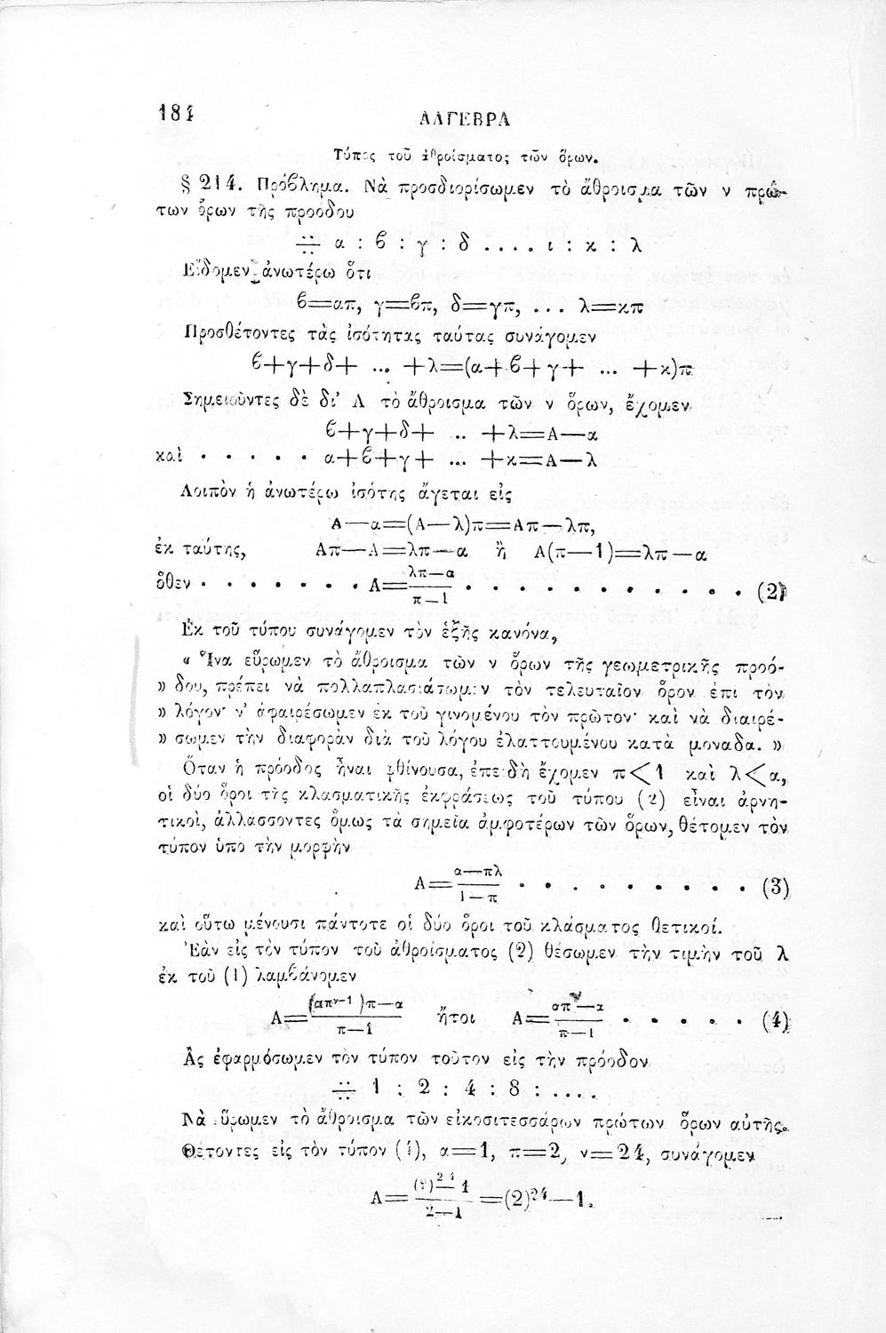 Τίτλος: Στοιχειώδης άλγεβρα προς χρήσιν των Γυμνασίων