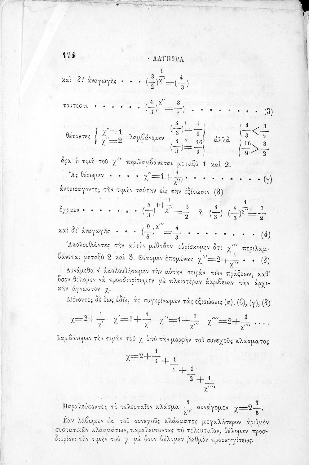 Σχολικό εγχειρίδιο Άλγεβρας Γυμνασίου που περιέχει θεωρία και ασκήσεις. Ο συγγραφέας ήταν υφηγητής στο Εθνικό Πανεπιστήμιο.