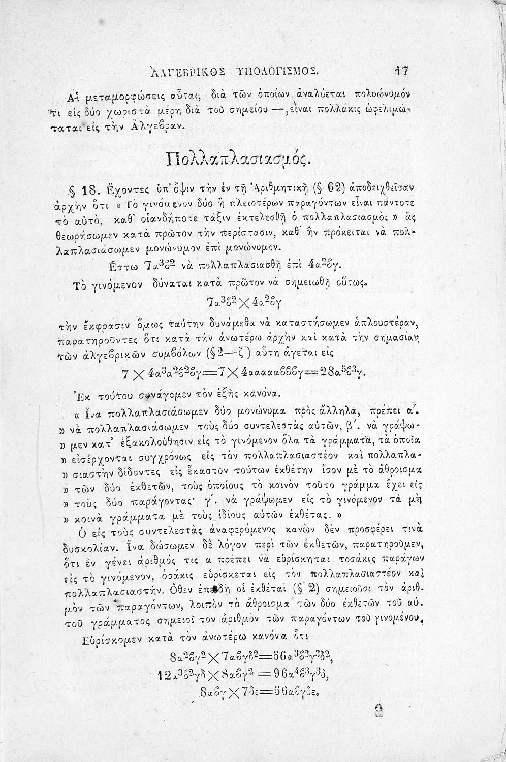 Τίτλος: Στοιχειώδης άλγεβρα προς χρήσιν των Γυμνασίων