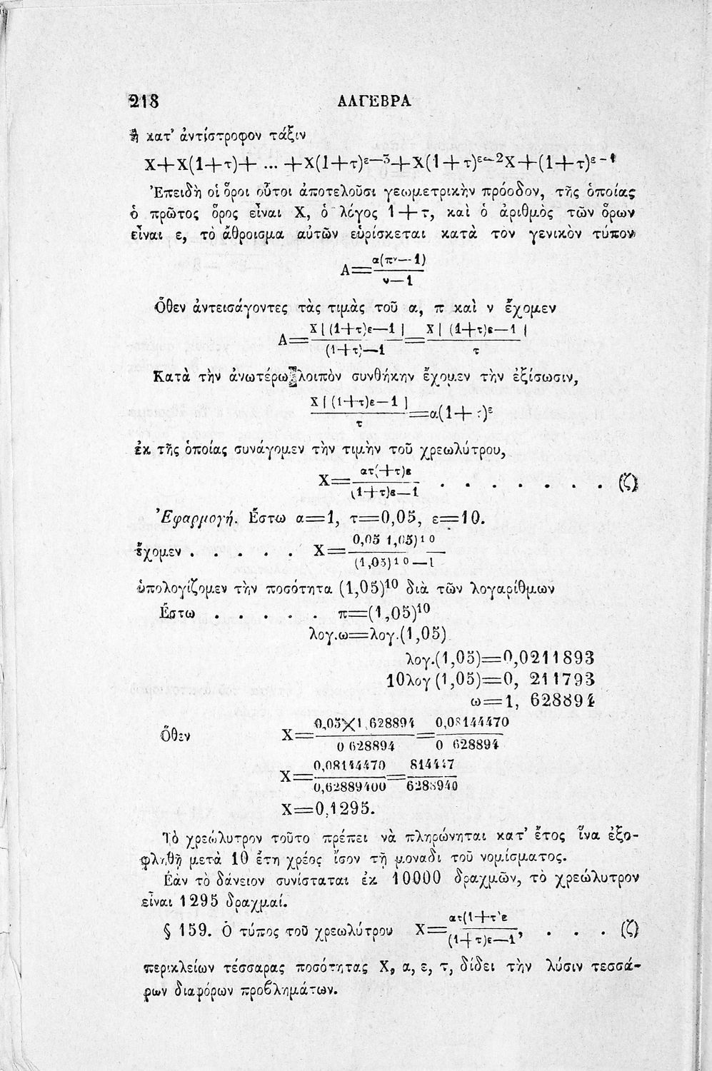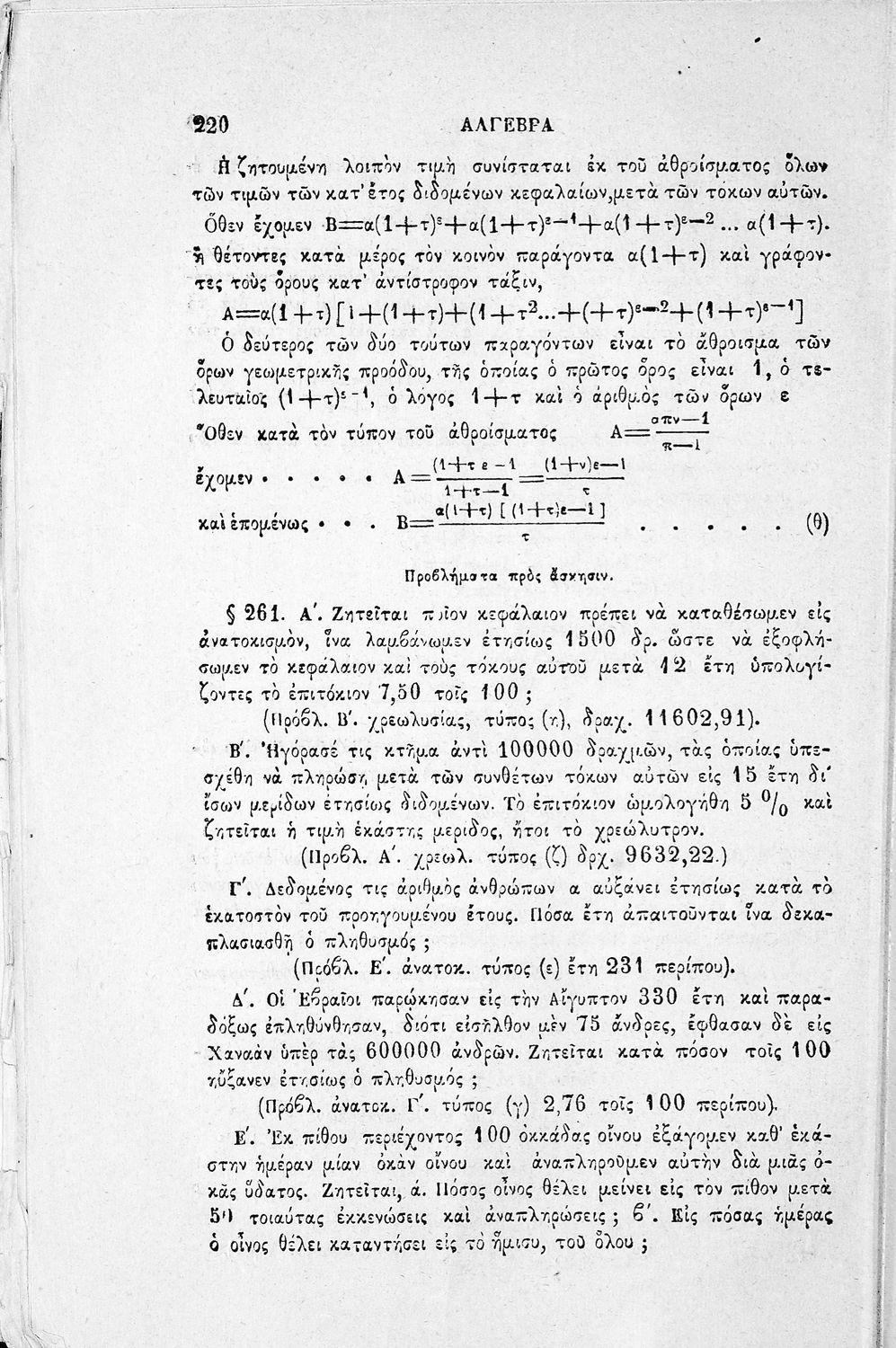 Σχολικό εγχειρίδιο Άλγεβρας Γυμνασίου που περιέχει θεωρία και ασκήσεις. Ο συγγραφέας ήταν υφηγητής στο Εθνικό Πανεπιστήμιο.