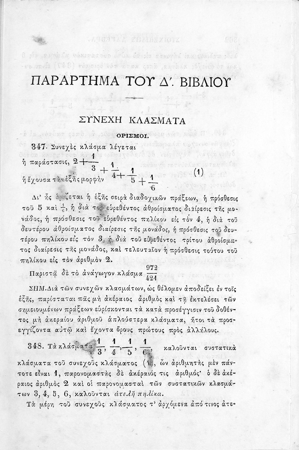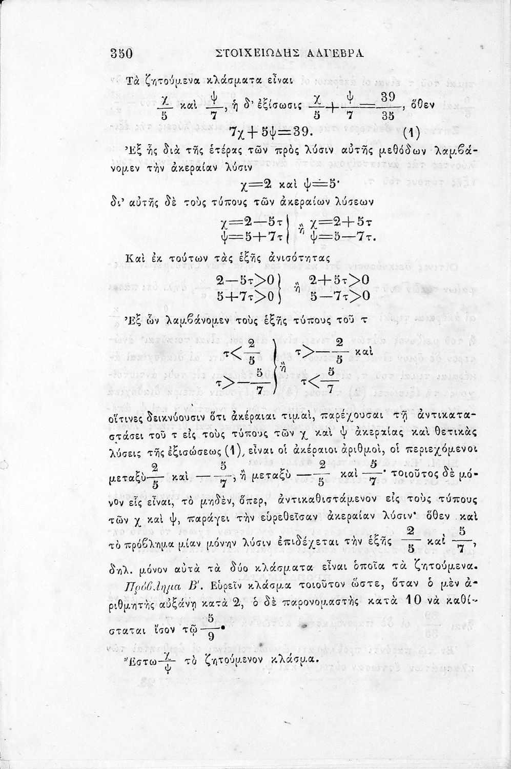 Τίτλος: Στοιχειώδης άλγεβρα προς χρήσιν των Γυμνασίων