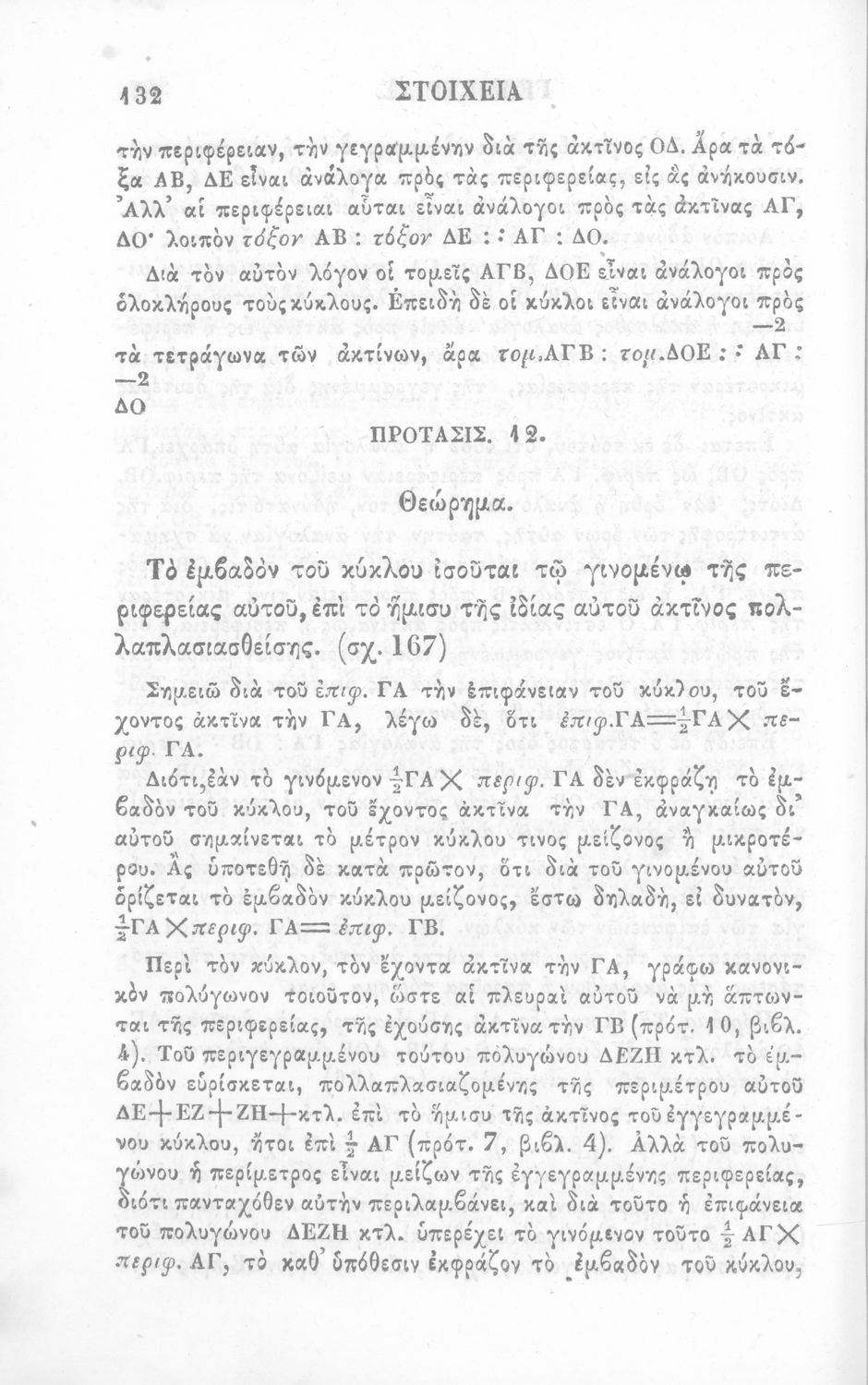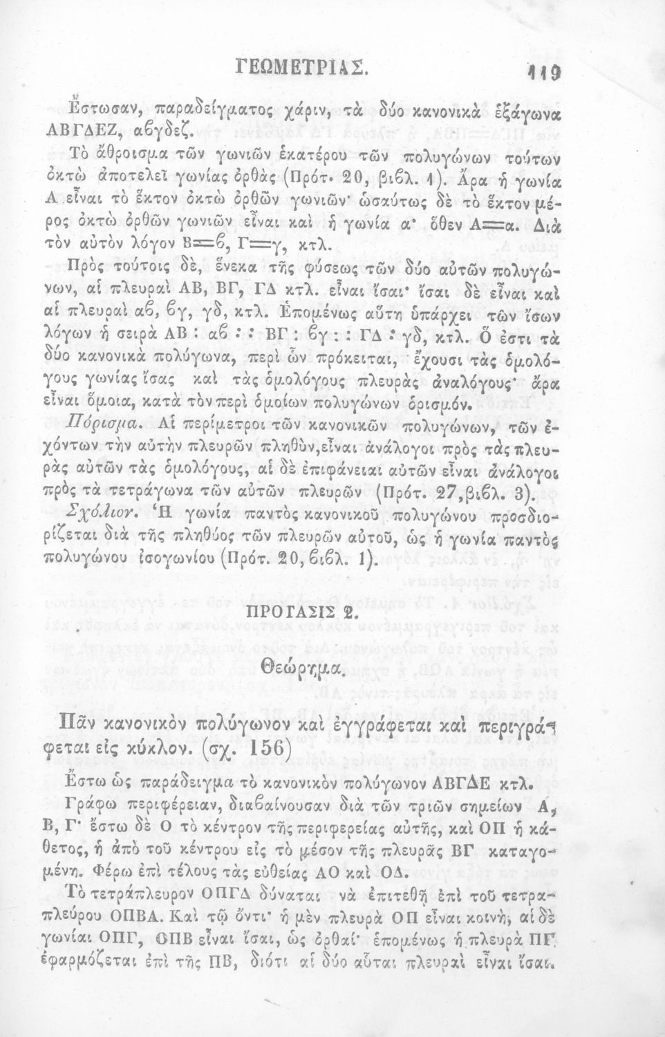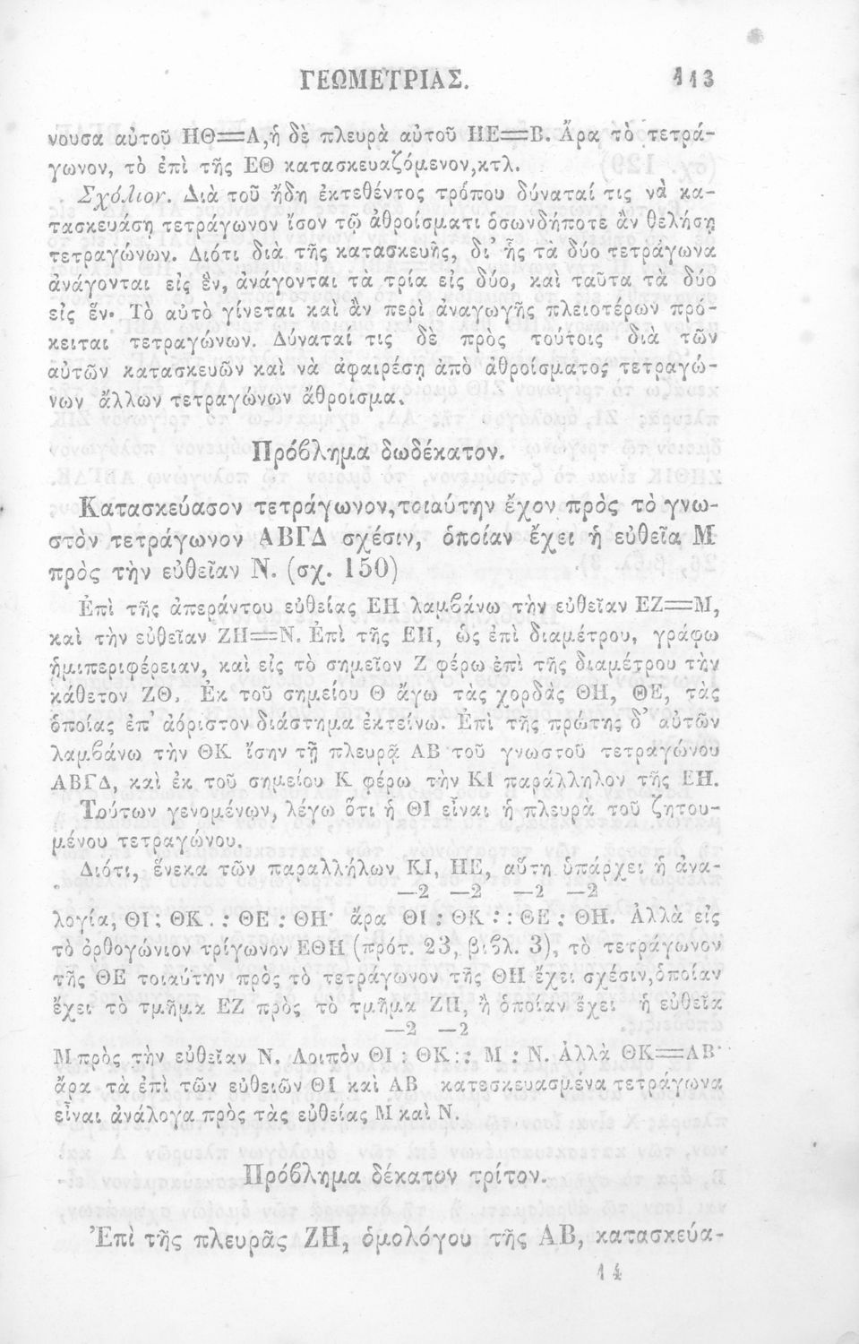 Σχολικό εγχειρίδιο Γεωμετρίας που είναι χωρισμένο σε θεωρήματα και τις λύσεις τους.