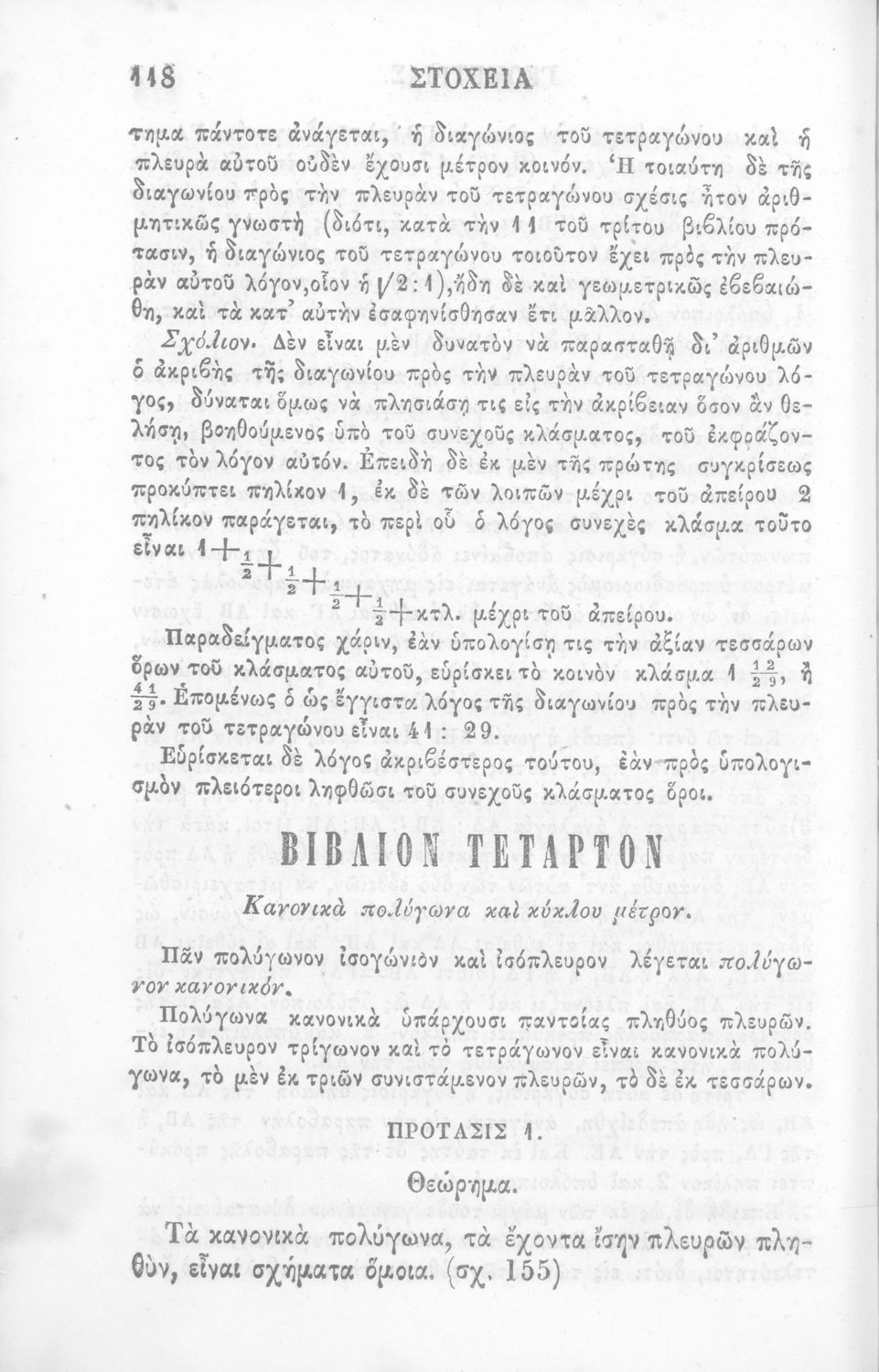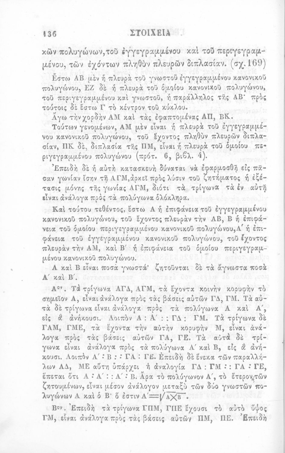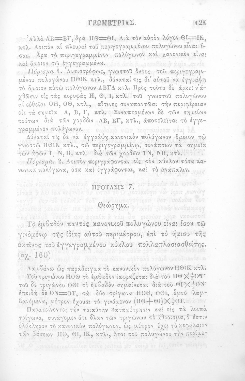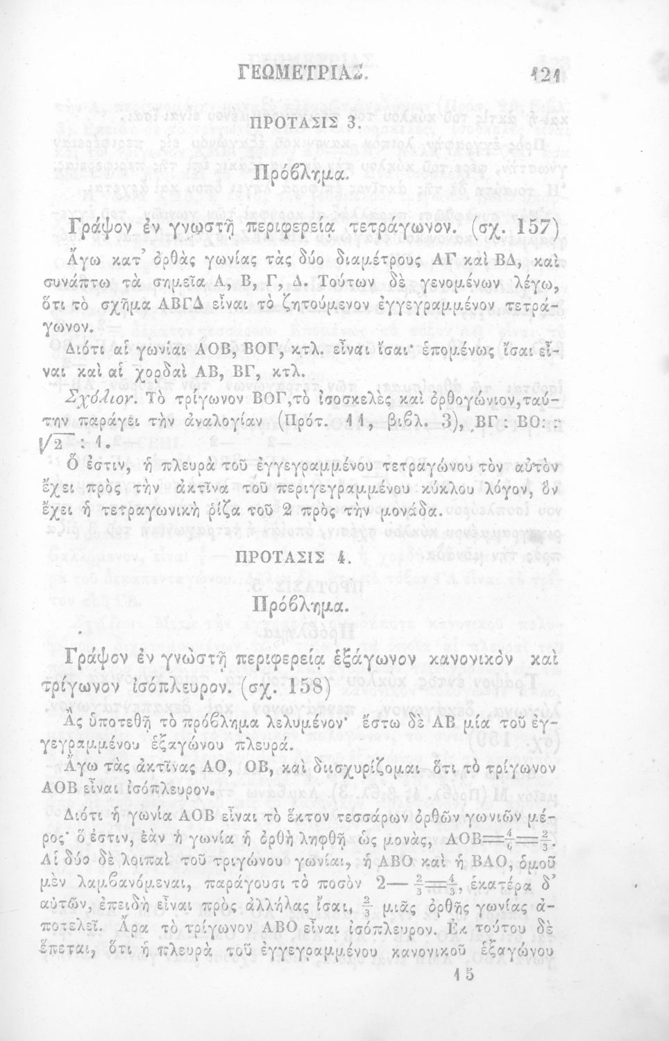 Σχολικό εγχειρίδιο Γεωμετρίας που είναι χωρισμένο σε θεωρήματα και τις λύσεις τους.