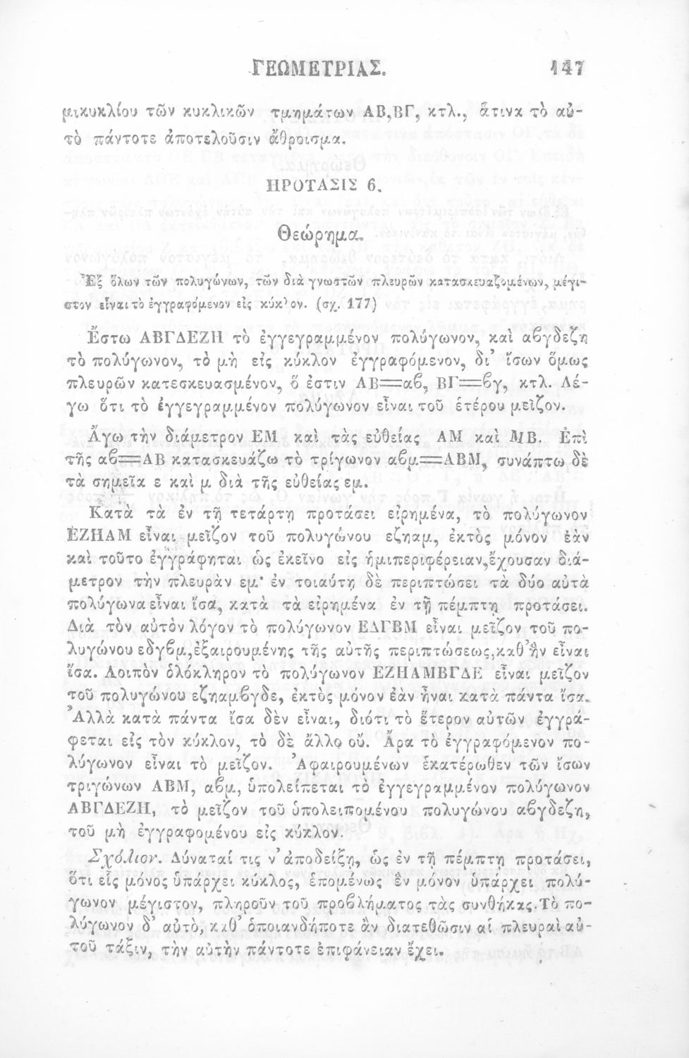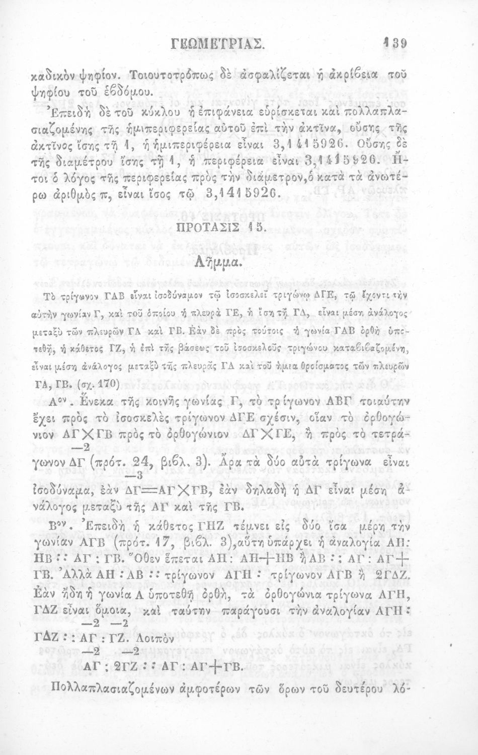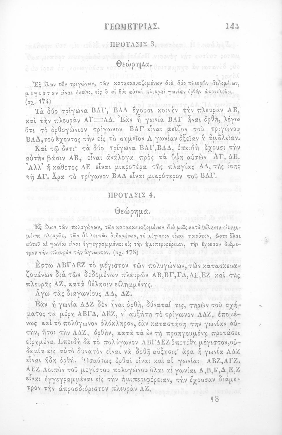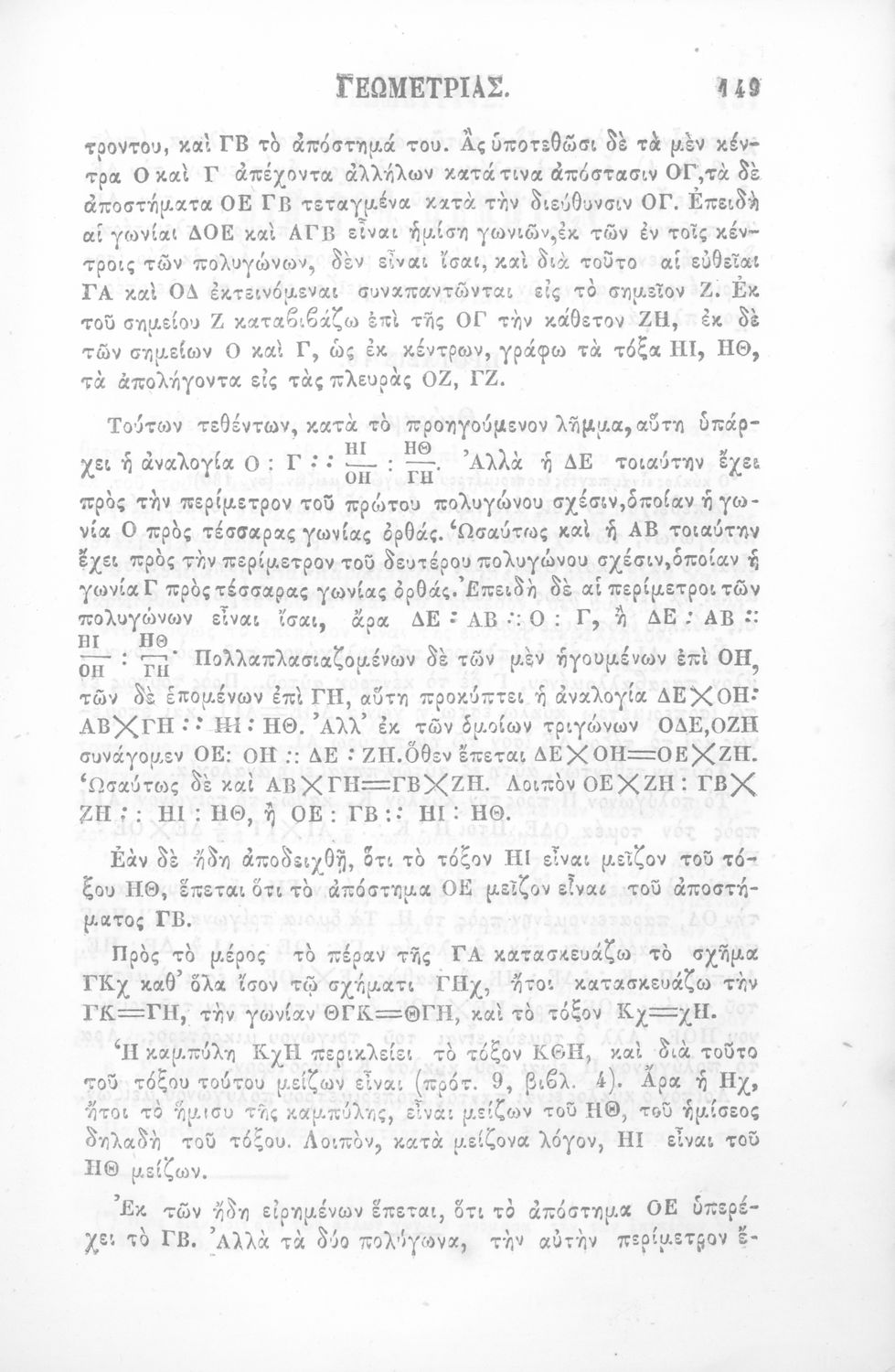 Σχολικό εγχειρίδιο Γεωμετρίας που είναι χωρισμένο σε θεωρήματα και τις λύσεις τους.