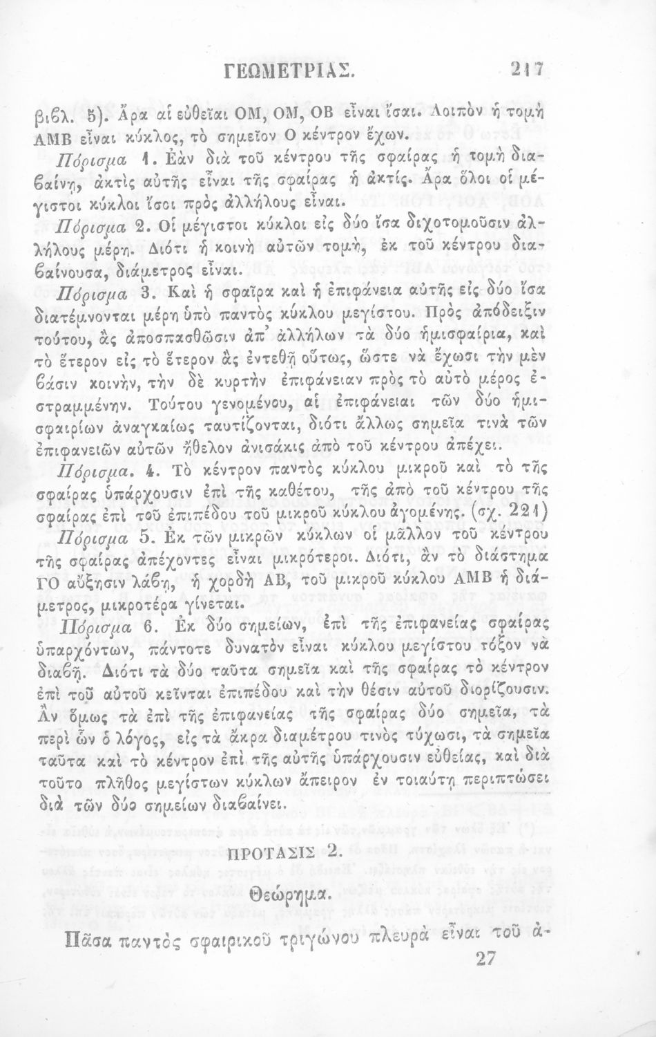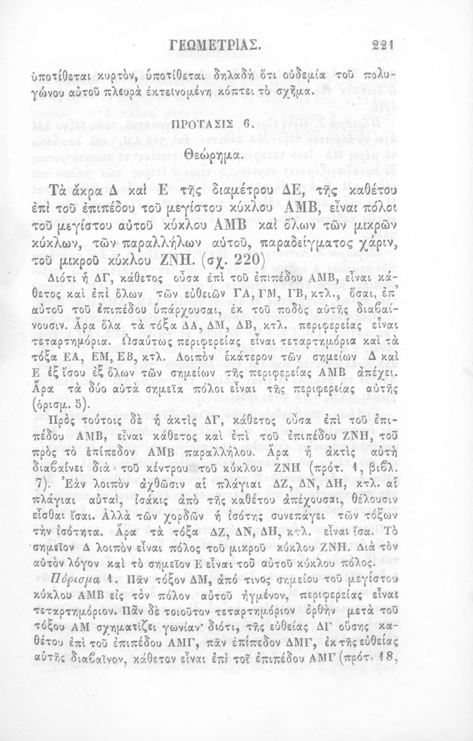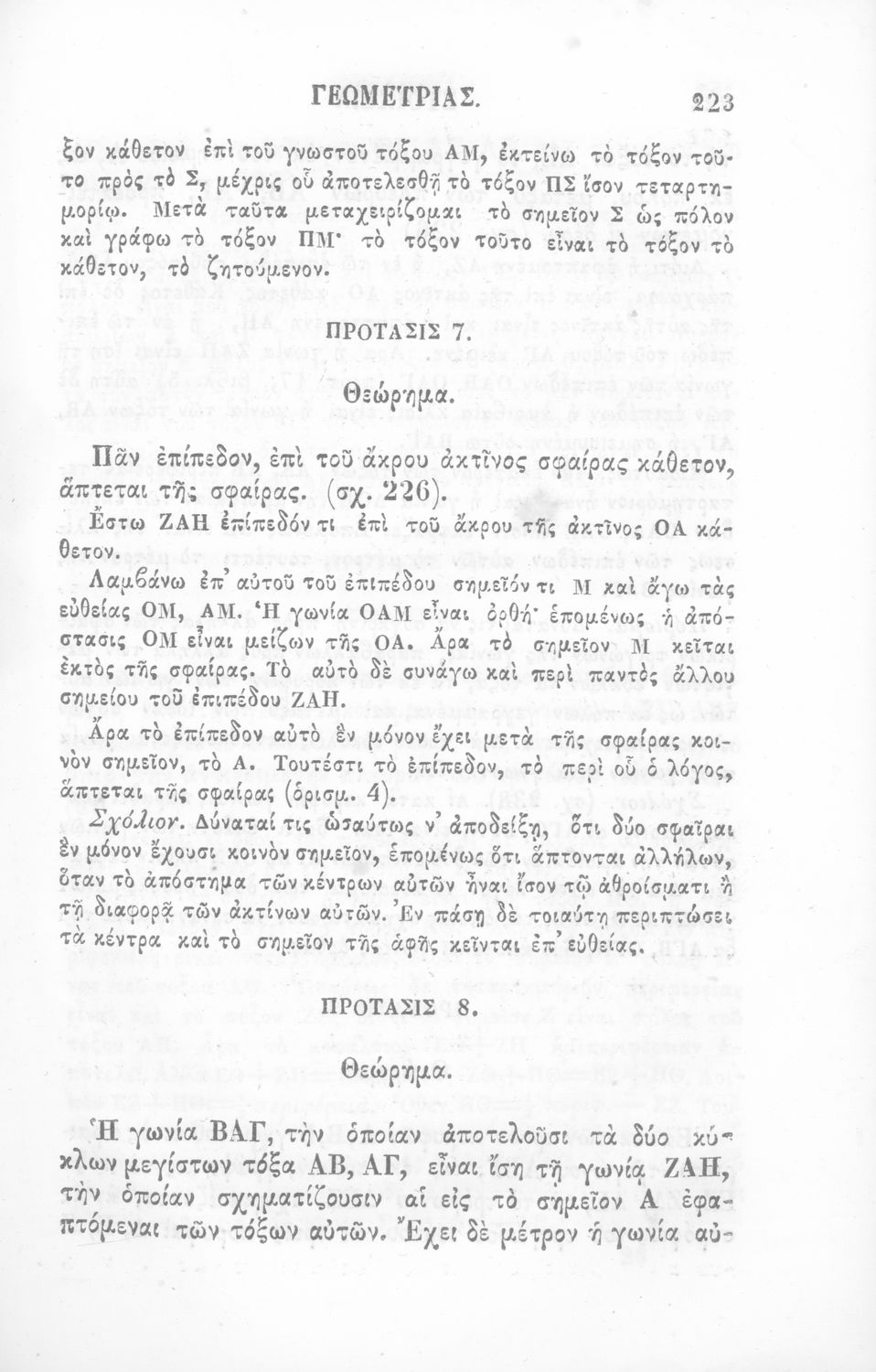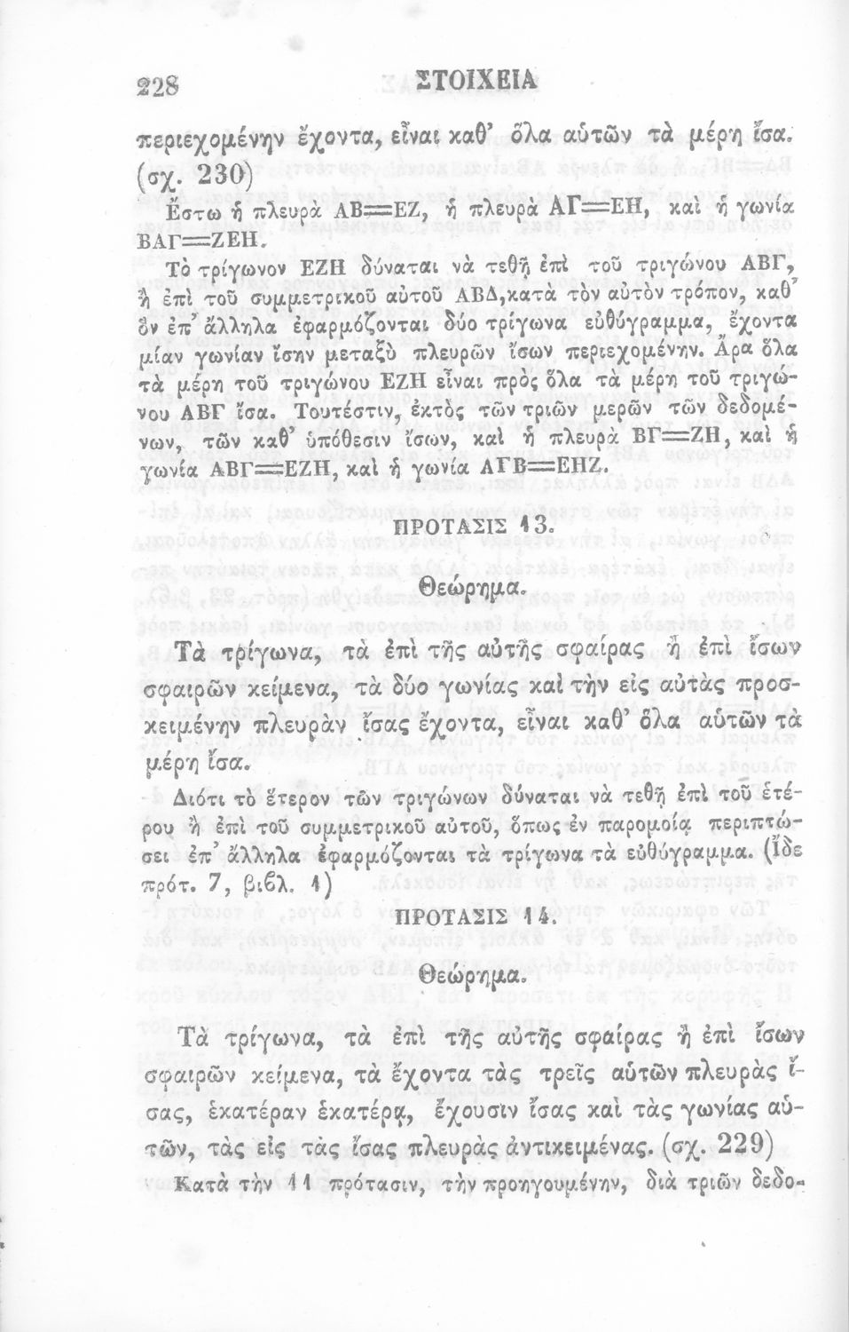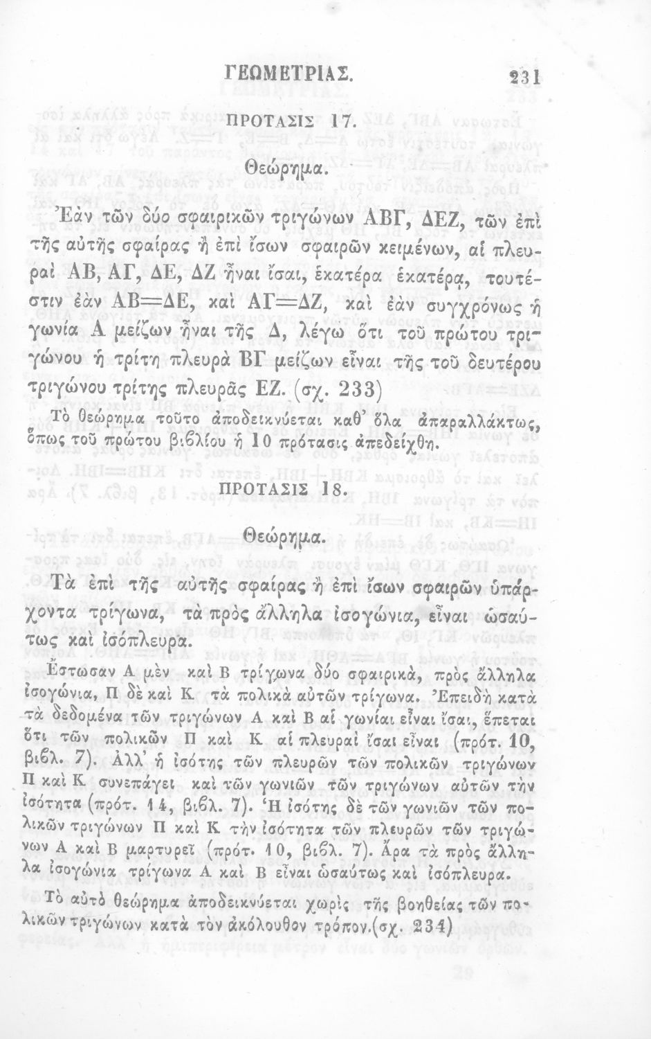 Σχολικό εγχειρίδιο Γεωμετρίας που είναι χωρισμένο σε θεωρήματα και τις λύσεις τους.