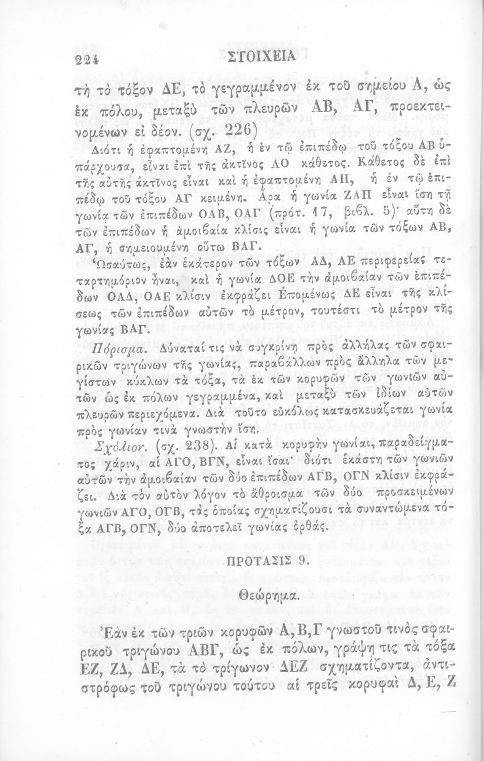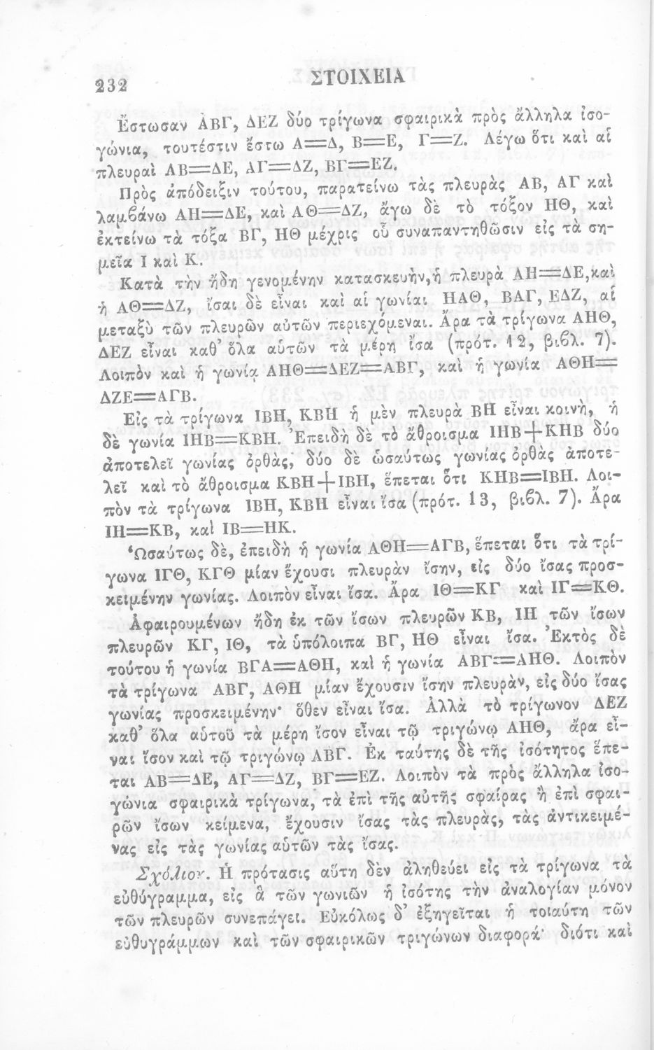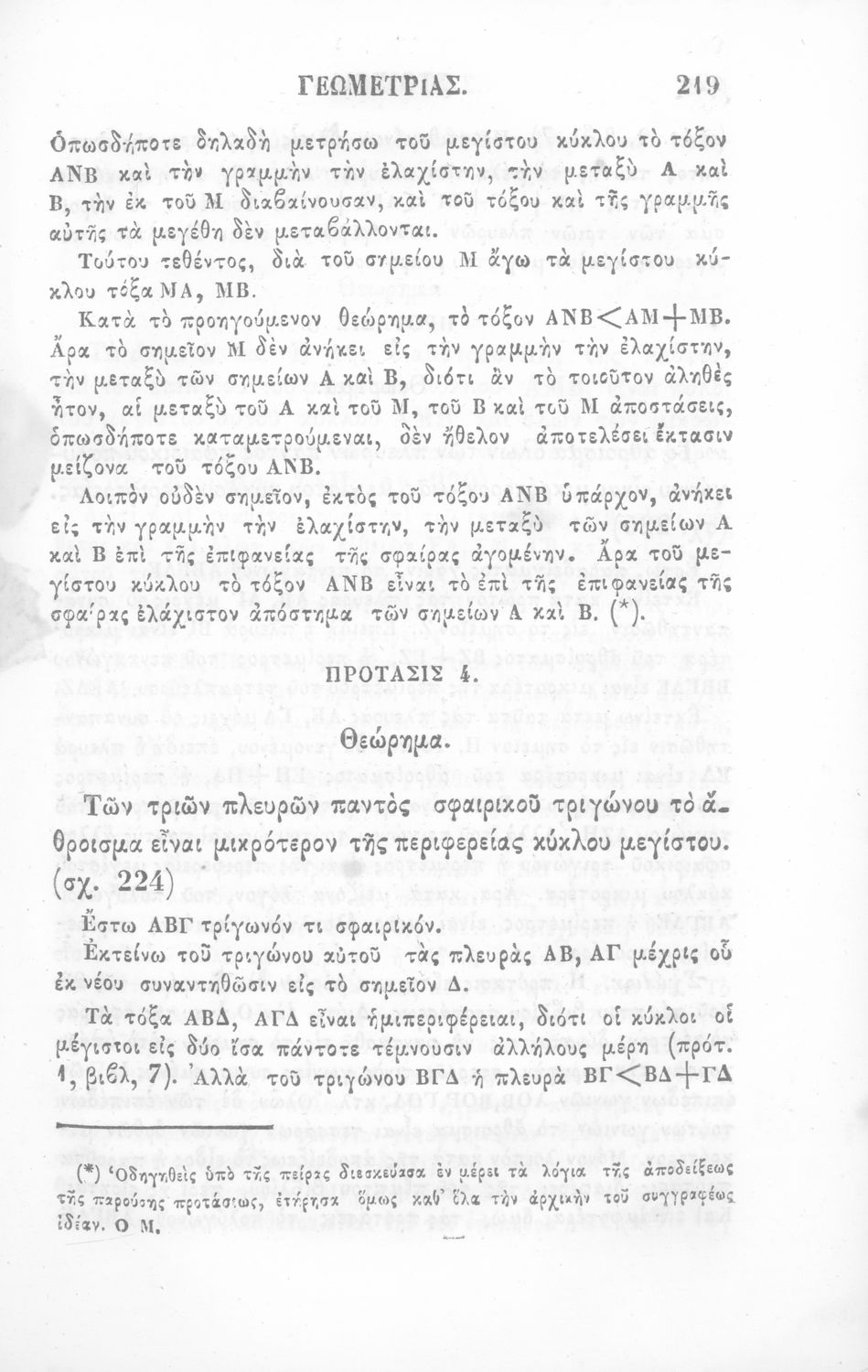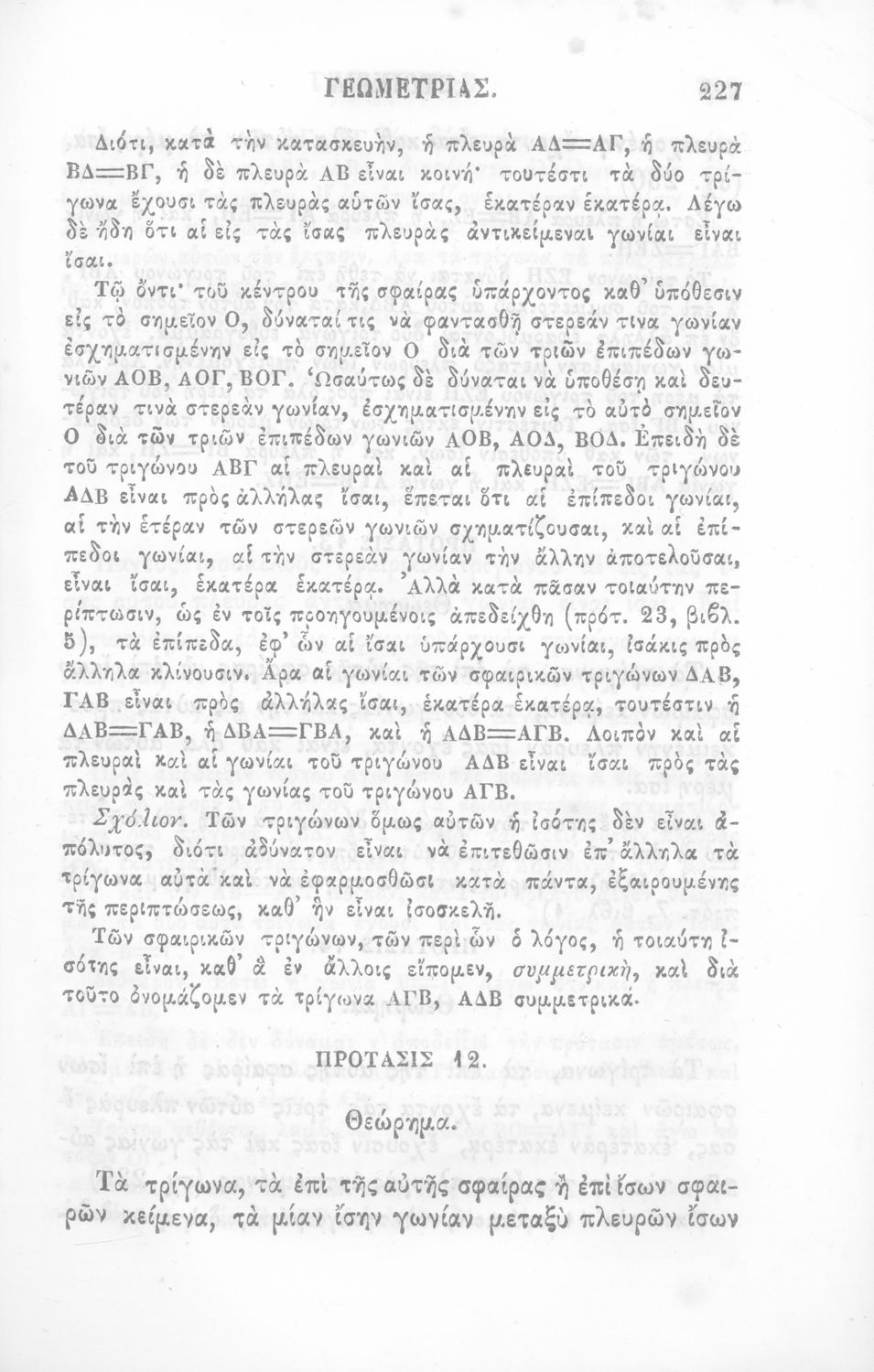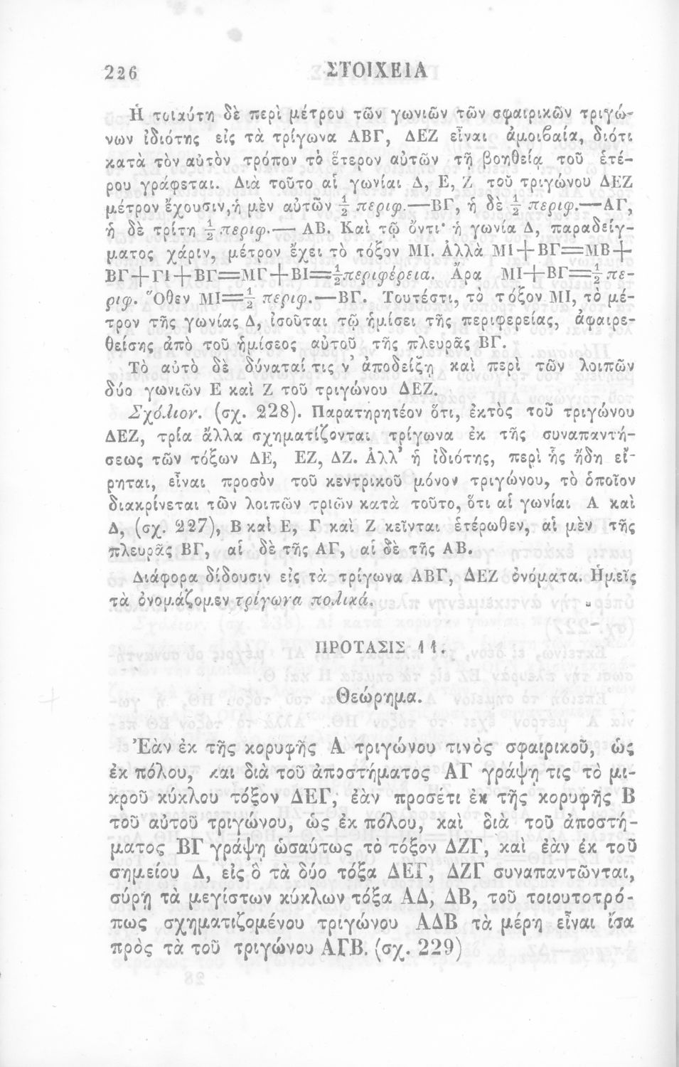Σχολικό εγχειρίδιο Γεωμετρίας που είναι χωρισμένο σε θεωρήματα και τις λύσεις τους.