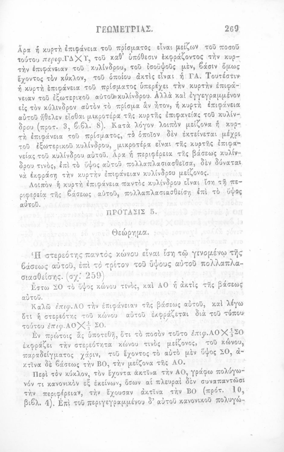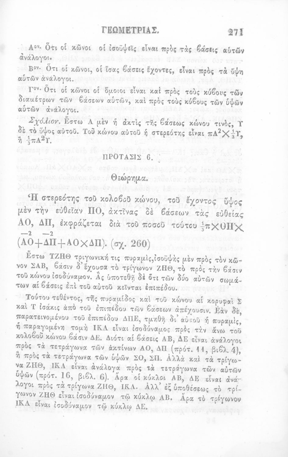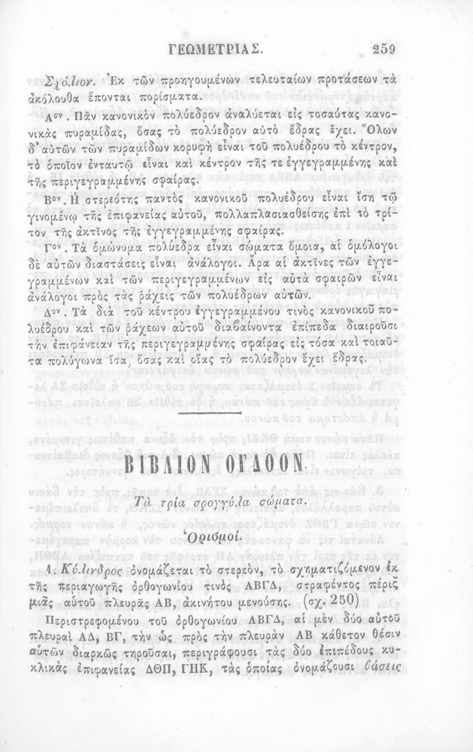 Σχολικό εγχειρίδιο Γεωμετρίας που είναι χωρισμένο σε θεωρήματα και τις λύσεις τους.